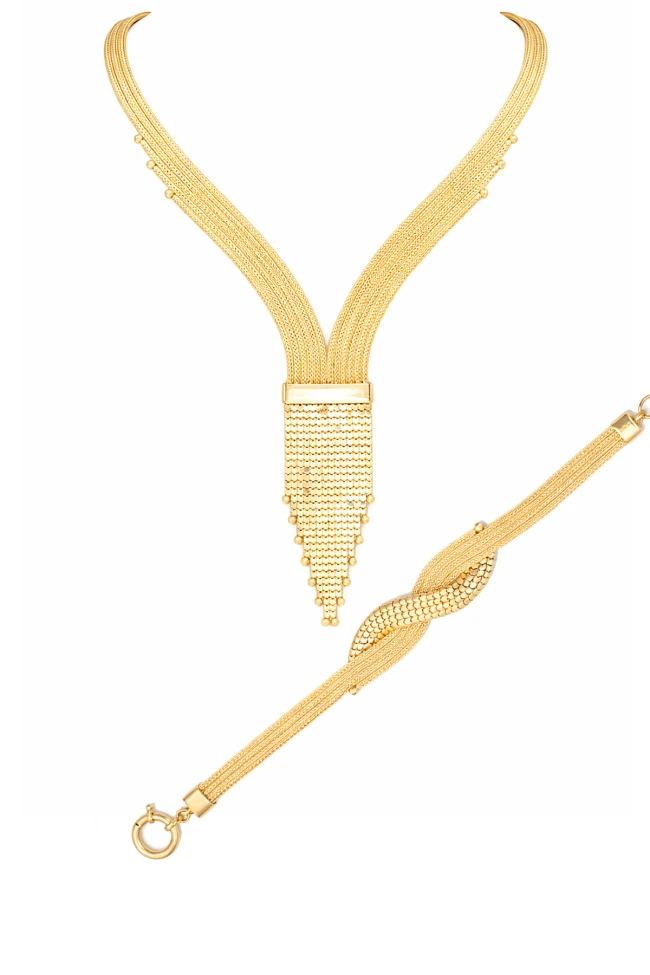 14 Ayar Trabzon İşi Kalze Zincirden Oluşan Işıl Işıl Model  Taşsız Altın Gerdanlık Bileklik Takı Seti.