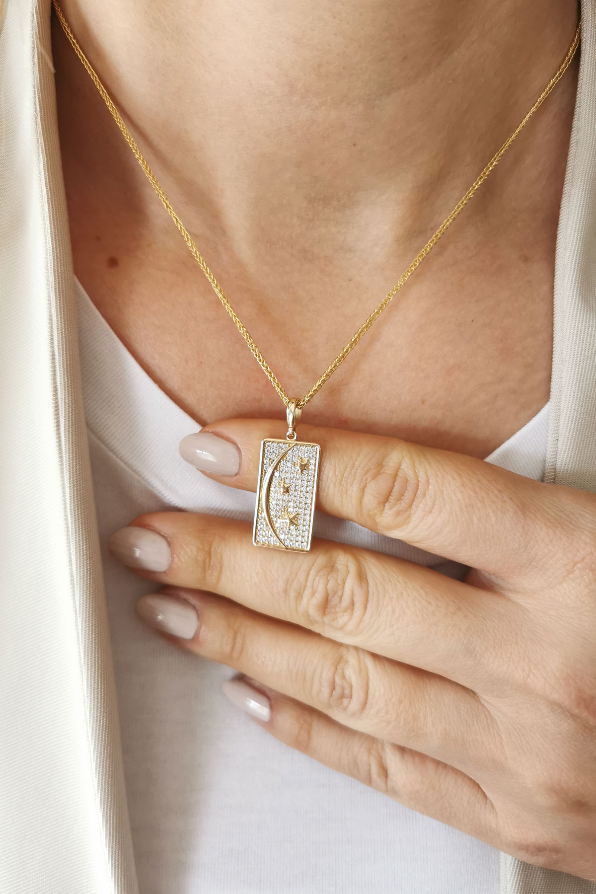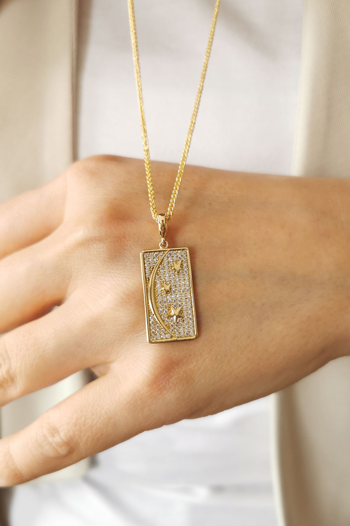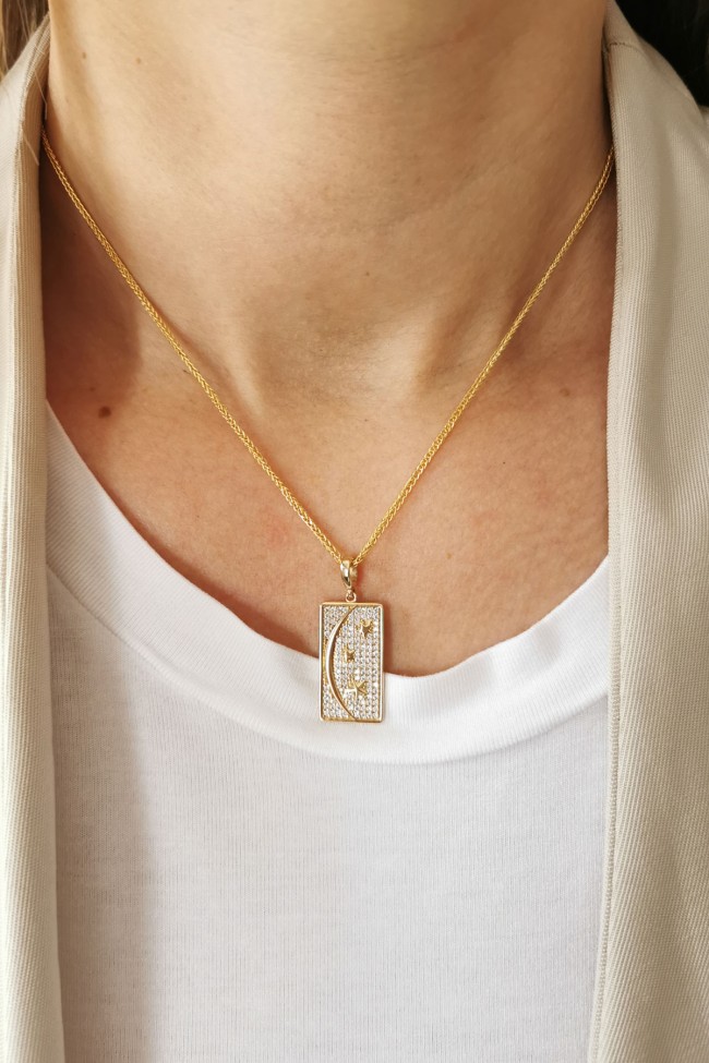 4,90 gr. 3 cm boyutunda gökyüzü model 14 ayar dikdörtgen formlu altın kolye.