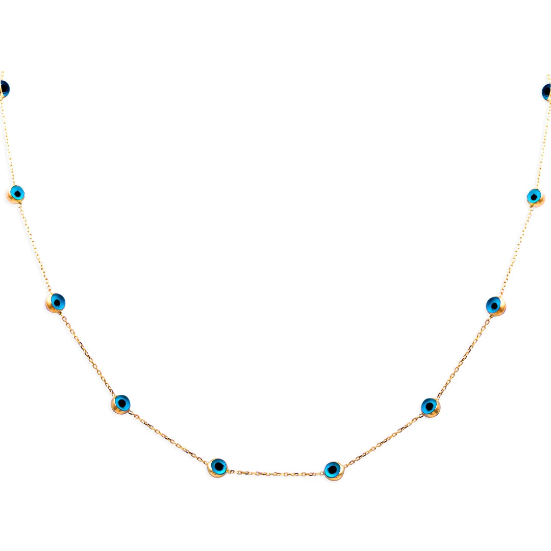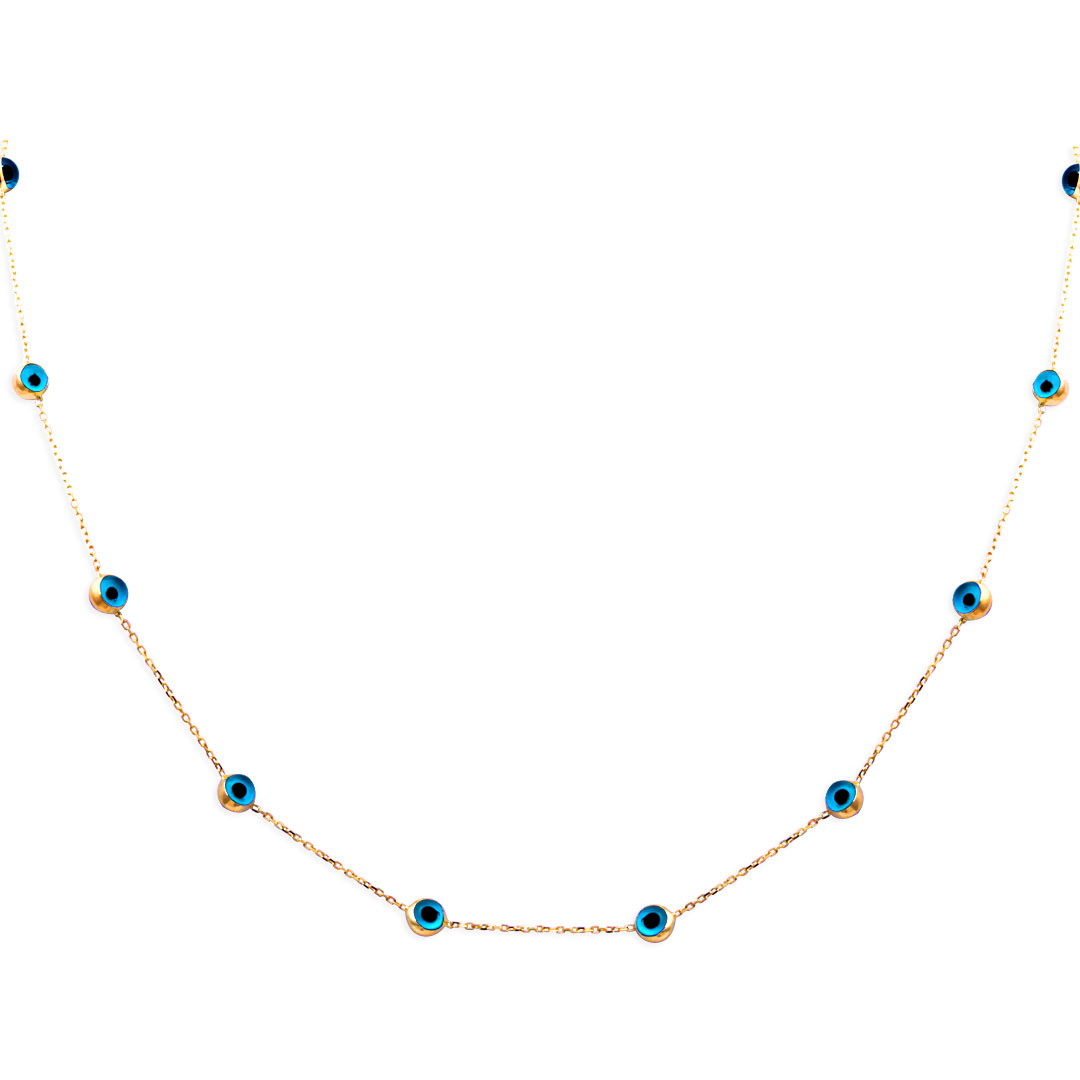 14 Ayar altın zarif tasarımıyla günlük kullanıma uygun ışıl ışıl nazar boncuklu kolye. Model 45 cm zincirli 3.60 gram ağırlığındadır.