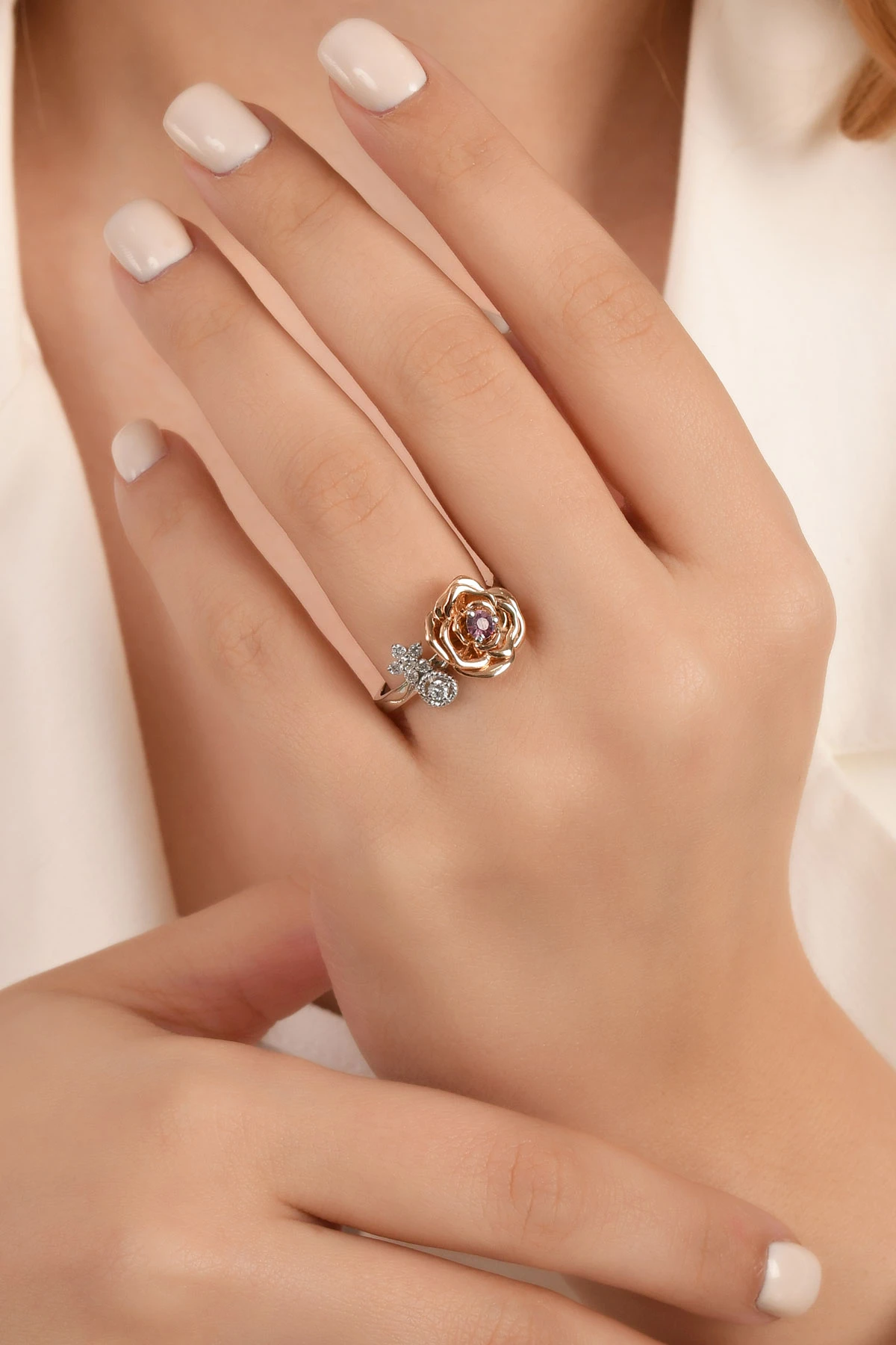 0.18 Ct. F/SI kalite yuvarlak pırlanta, 0.19 Ct. safir taşının zarif duruşu ile tüm dikkatleri üzerine toplayacak modern gül tasarım pırlanta yüzük. Sevdiklerinize özel günlerinde armağan edebileceğiniz harika bir seçim. Model Firma Sertifikalıdır.