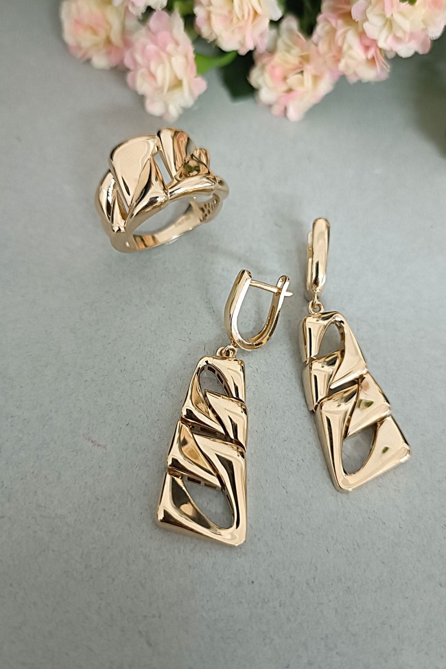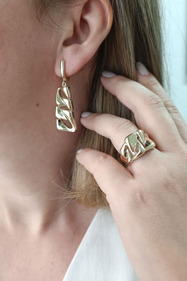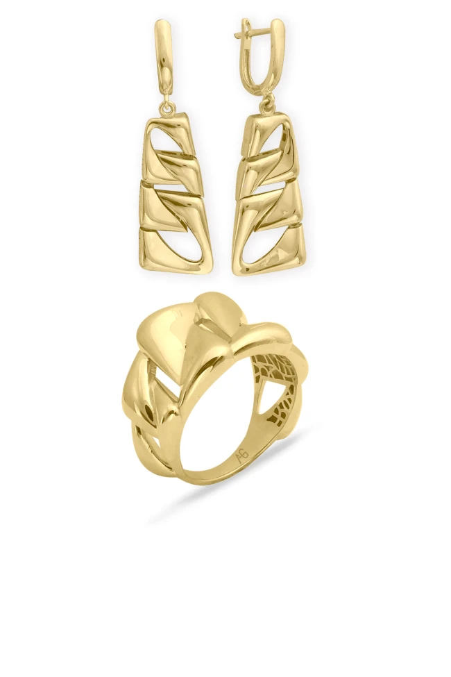 Taşsız gurmet model ışıl ışıl 14 ayar 11.60 gr ağırlığında geniş gösterişli duruşa sahip modern tasarım altın yüzük küpe takım.