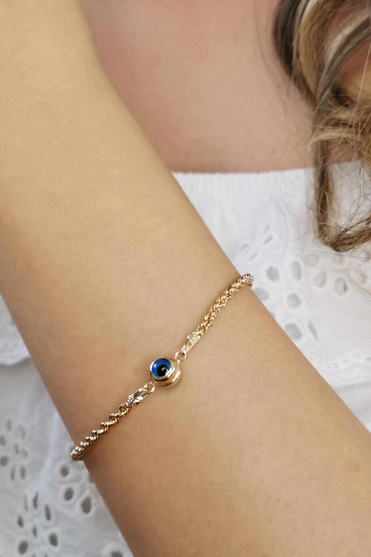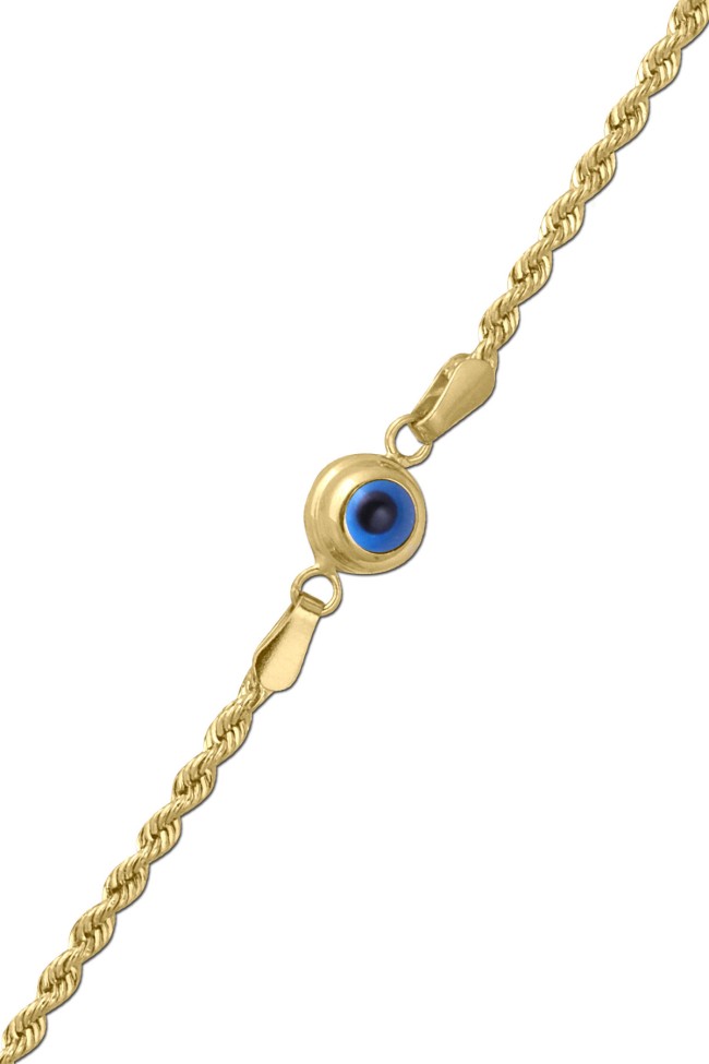 2.40 Gram Ağırlığında 19 Cm Spor Ve Modern Trend Tasarımlı Halat Zincir Detaylı Tüm Gün Severek Kullanacağınız 14 Ayar Altın Nazar Göz Bileklik.