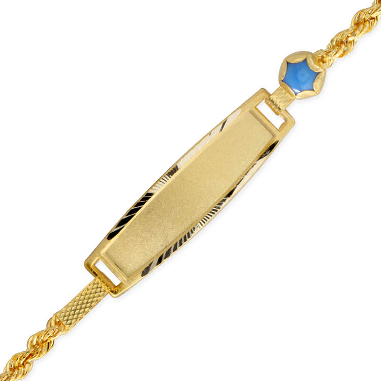 14 Cm boyunda günlük olarak da kullanıma uygun sağlam halat zincir detaylı 14 ayar 1.50 gr ağırlığında altın firuze taş detaylı çocuk künyesi.