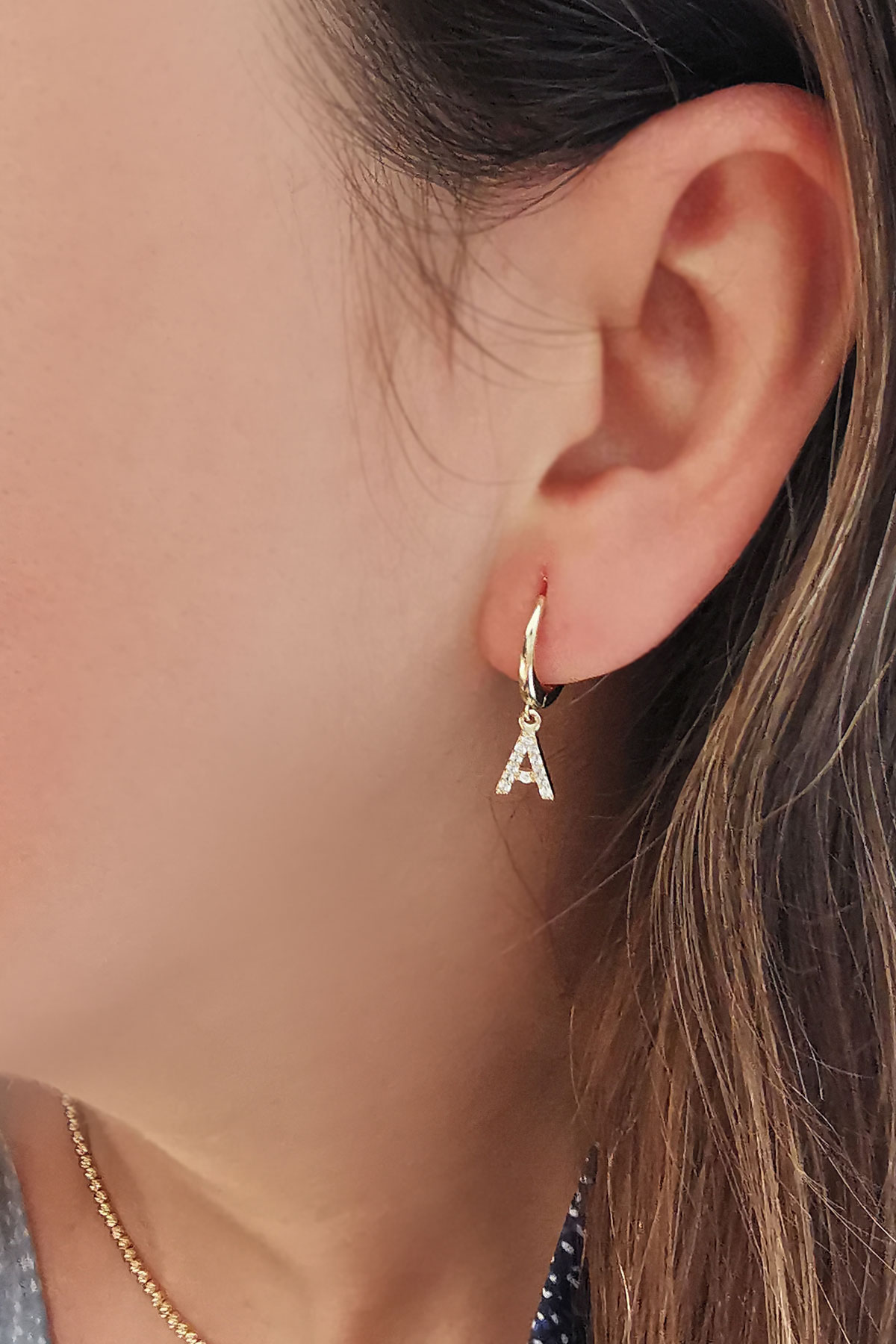 14 Ayar taşlı ışıl ışıl ve modern, spor tasarımı ile zarif duruşa sahip spor bir modeli olan günlük kullanıma uygun 2.35  gram ağırlığında 2.2 Cm boyunda altın mini halka harf küpe küpe.
