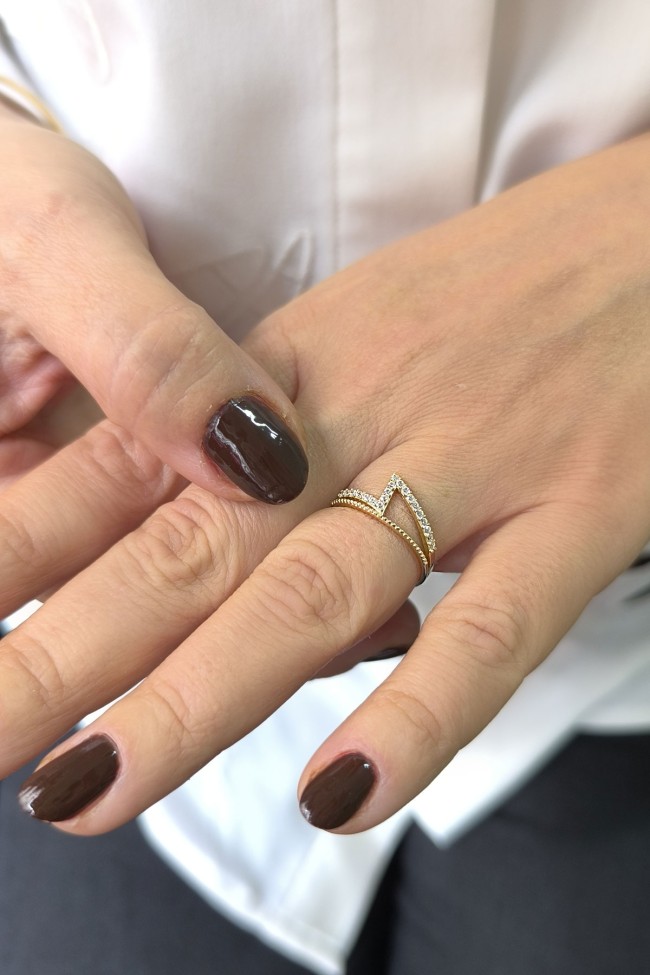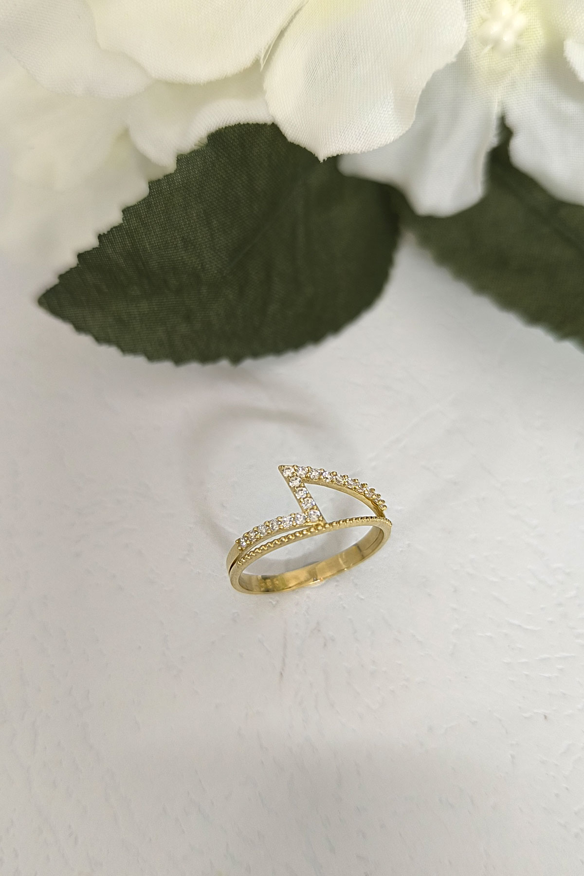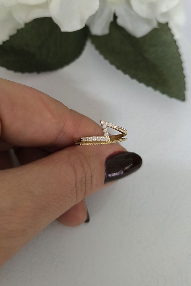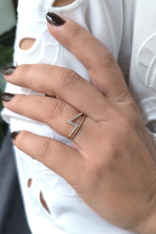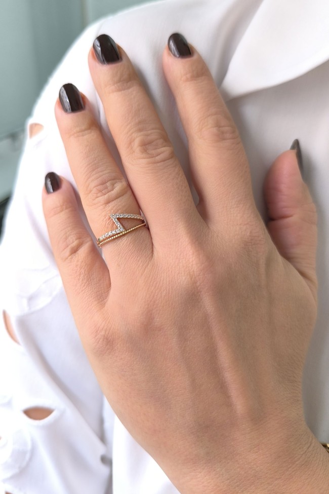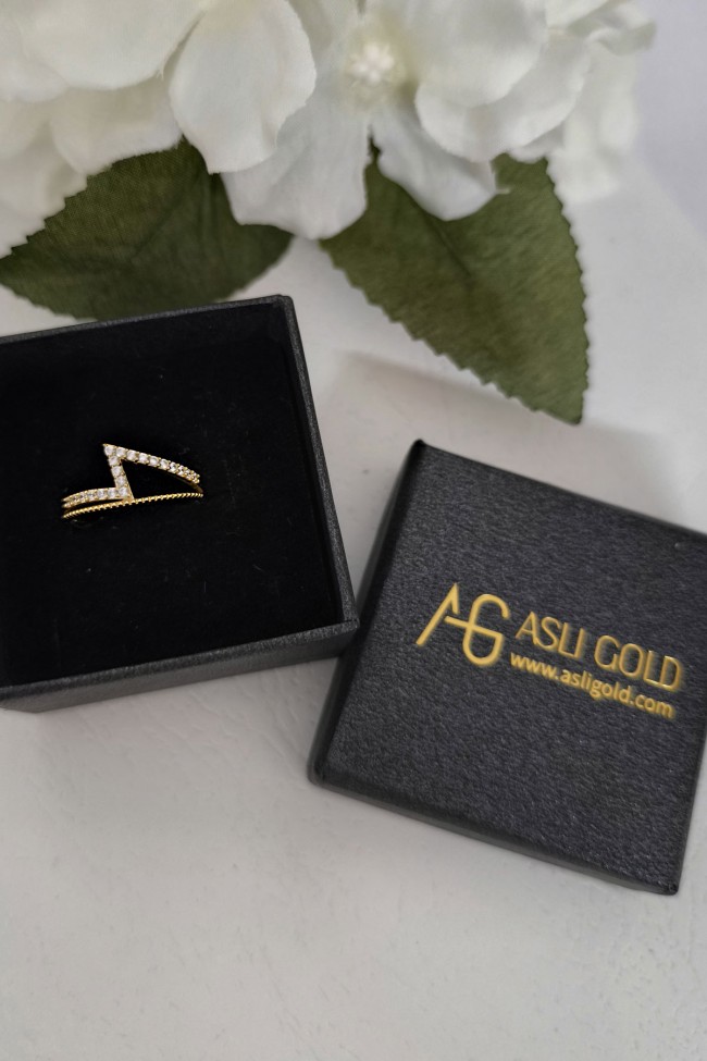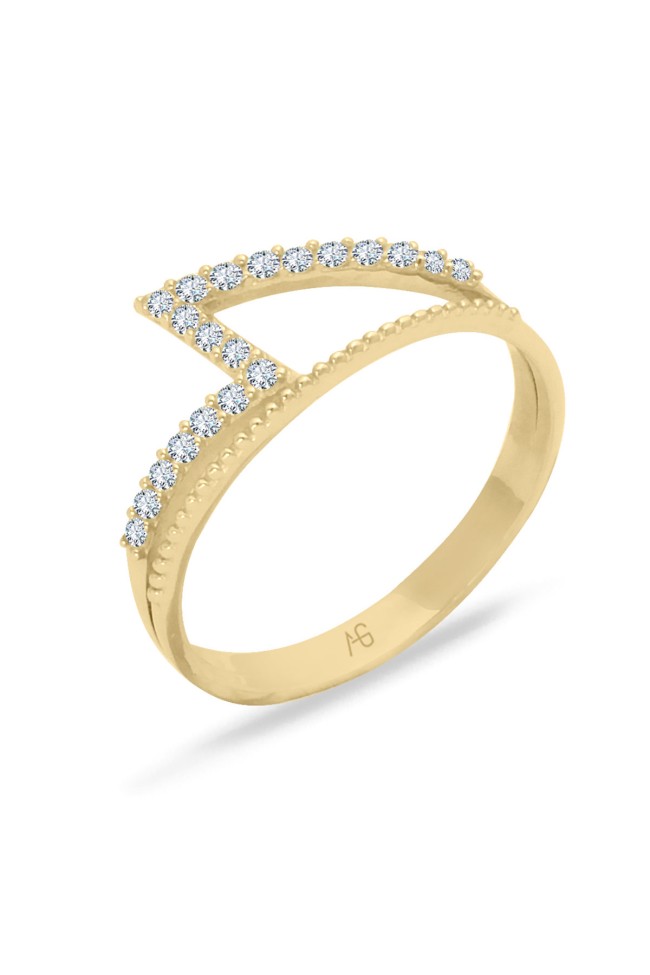 14 ayar sarı altın taşlı ikonik tasarımıyla günlük kullanıma uygun 1.80 gram ağırlığında zirkon taşlı minimal tasarım altın kadın yüzük.