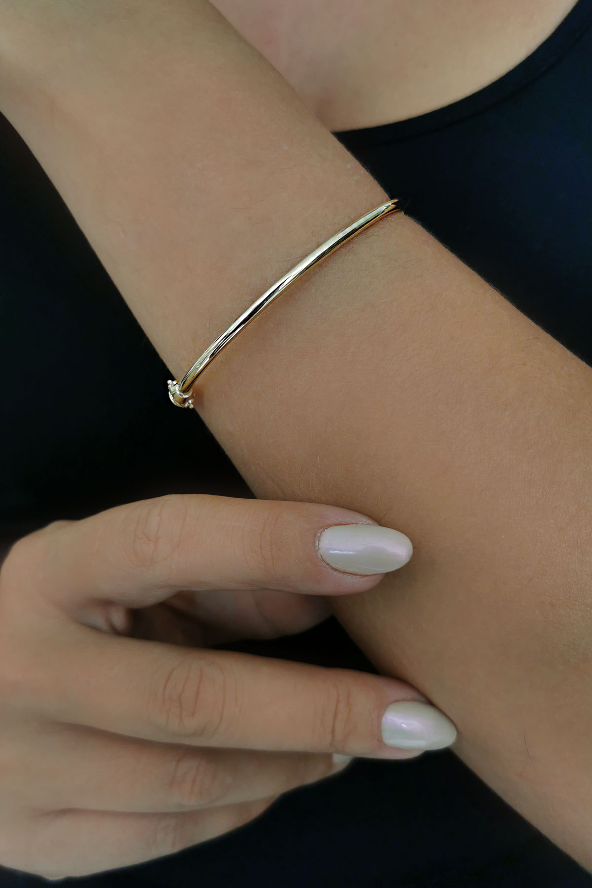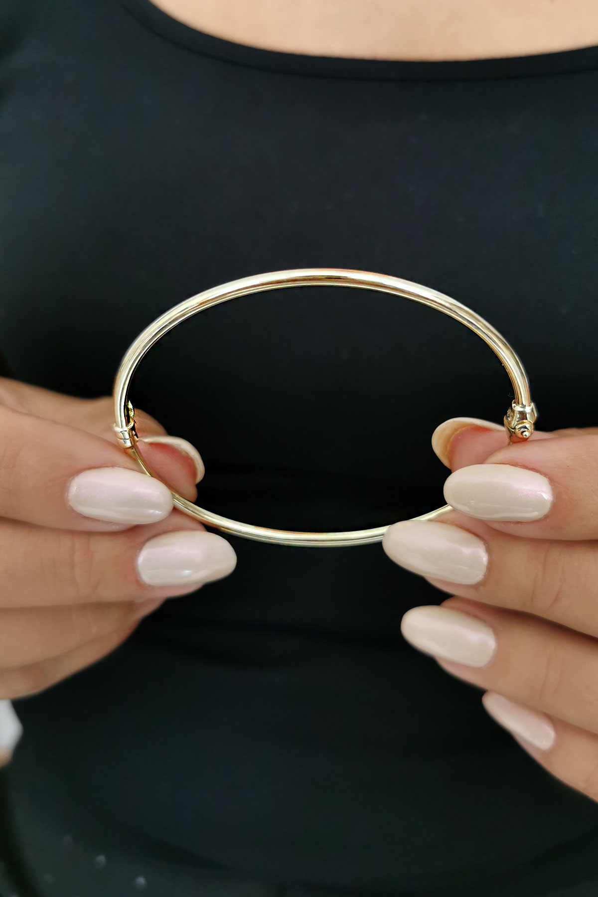 14 Ayar taşsız şık ve zarif tasarımı ile spor duruşa sahip günlük kullanıma uygun 4.00 gram ağırlığında taşsız altın hediyelik modern ince bombe bilezik.