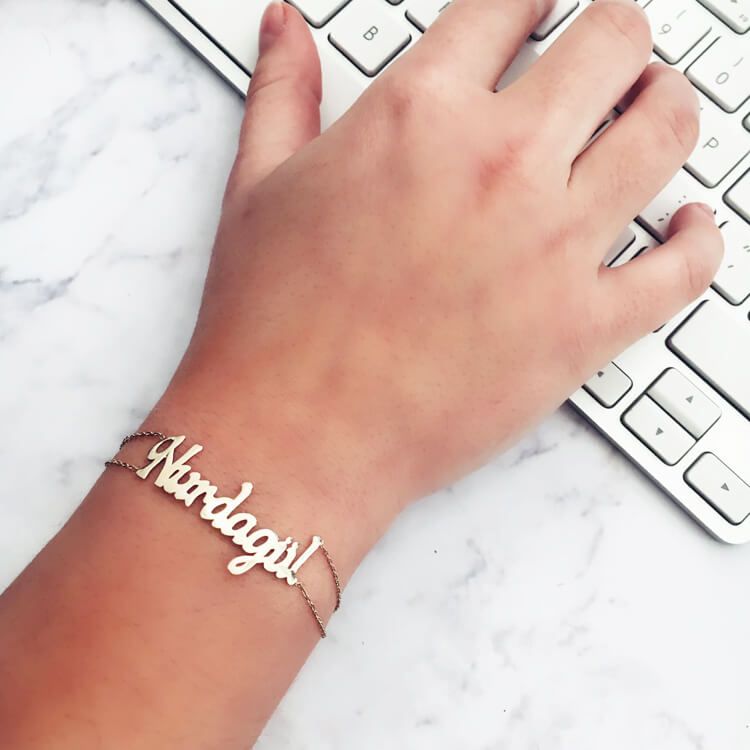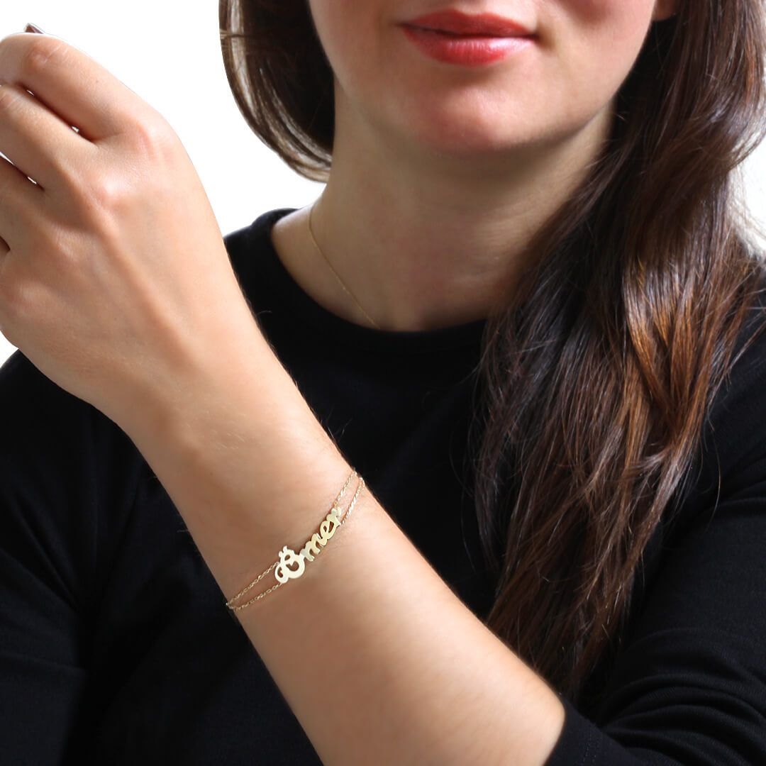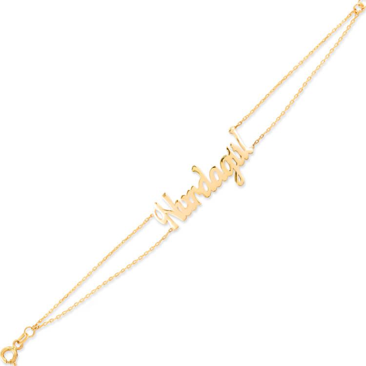 14 Ayar Altın İsim Bileklik İle Sevdiklerinize Muhteşem Bir Hediye Seçeneği Sunabilirsiniz. Sevdiklerinizin ismini de yazdırıp bileğinizde taşıyabileceğiniz model 18 cm boyunda 2 gram ağırlığındadır.