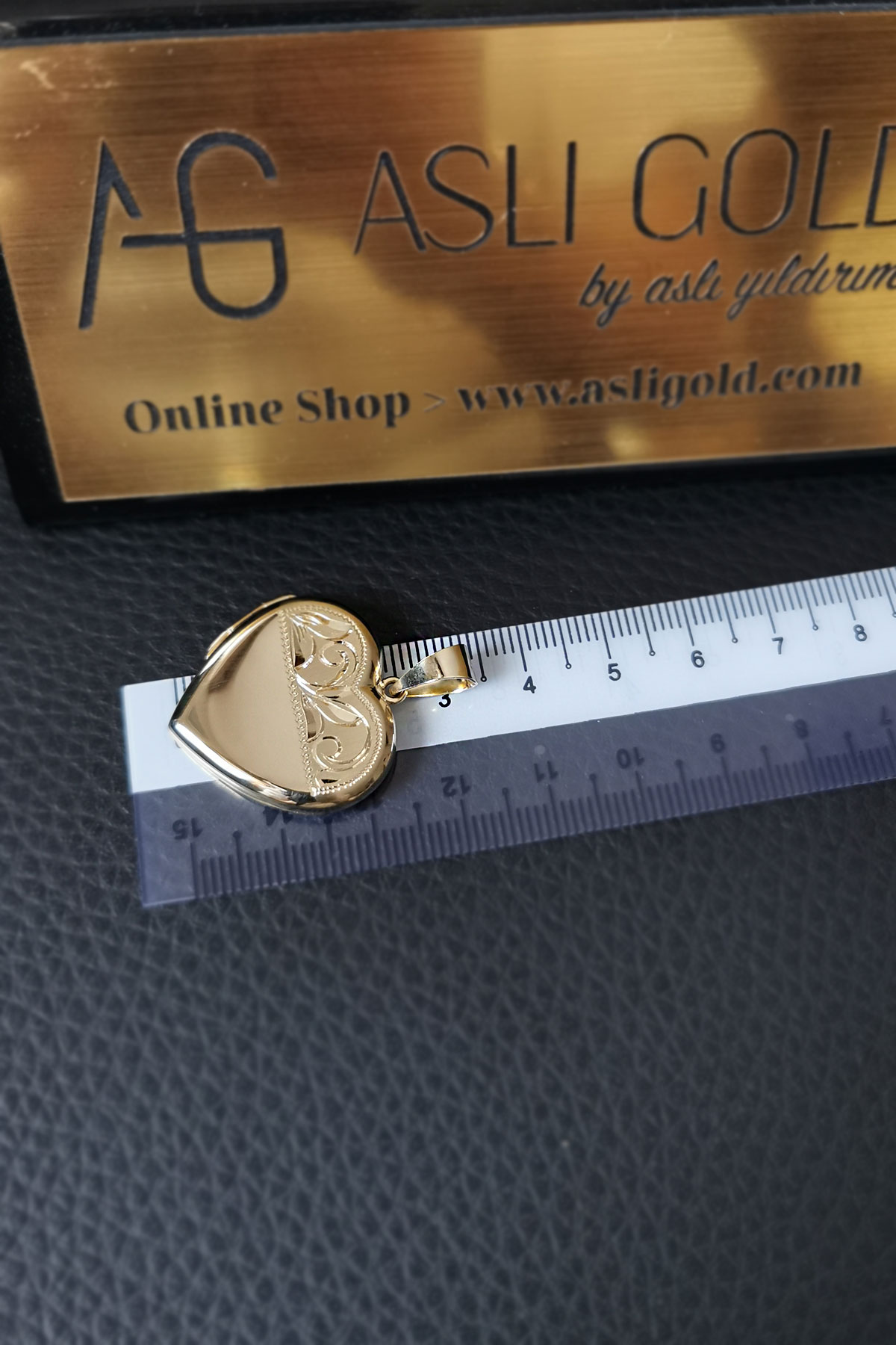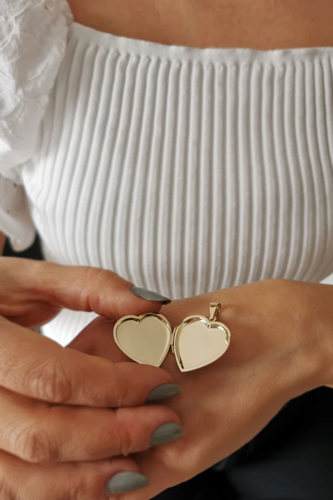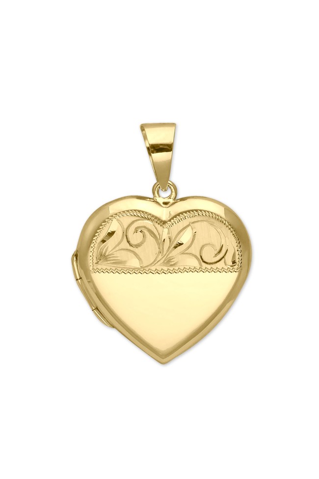 14 Ayar altın 5.70 gram ağırlığında şık ve gündelik kullanıma uygun 3.5 cm el kalemi ile işlenmiş kalp model kapaklı kalp madalyon kolye ucu.