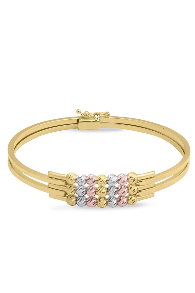 9.80 Gram Ağırlığında 14 Ayar 3 Renkli Dorika Toplu Kaburga Taşsız Altın Modern Kelepçe / Bilezik.