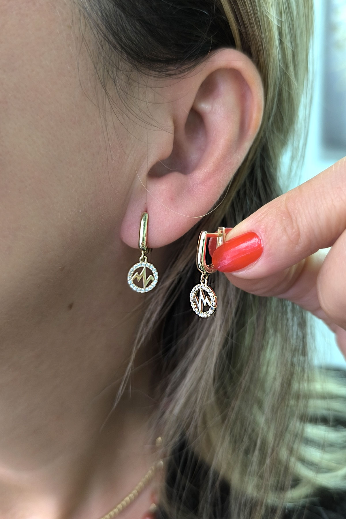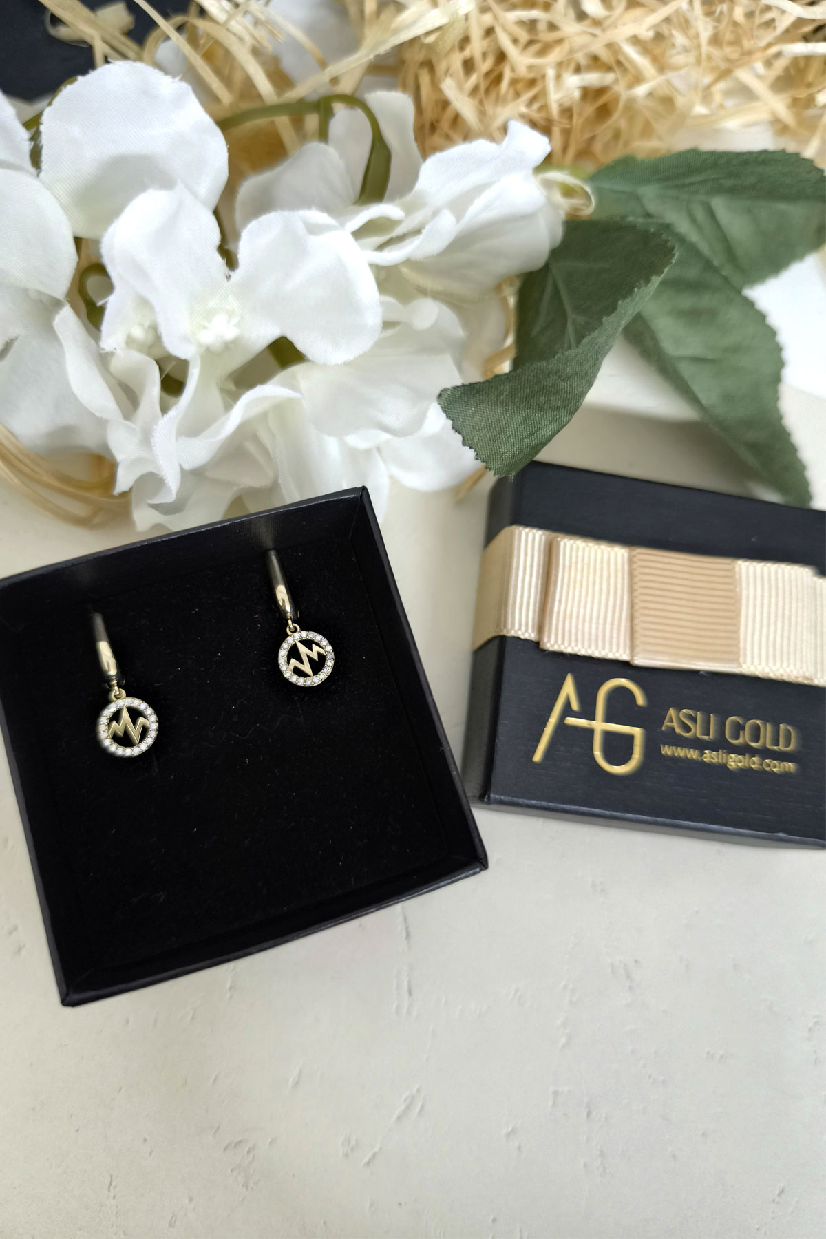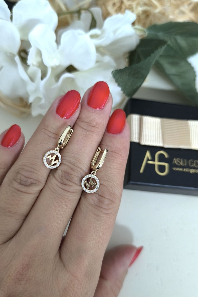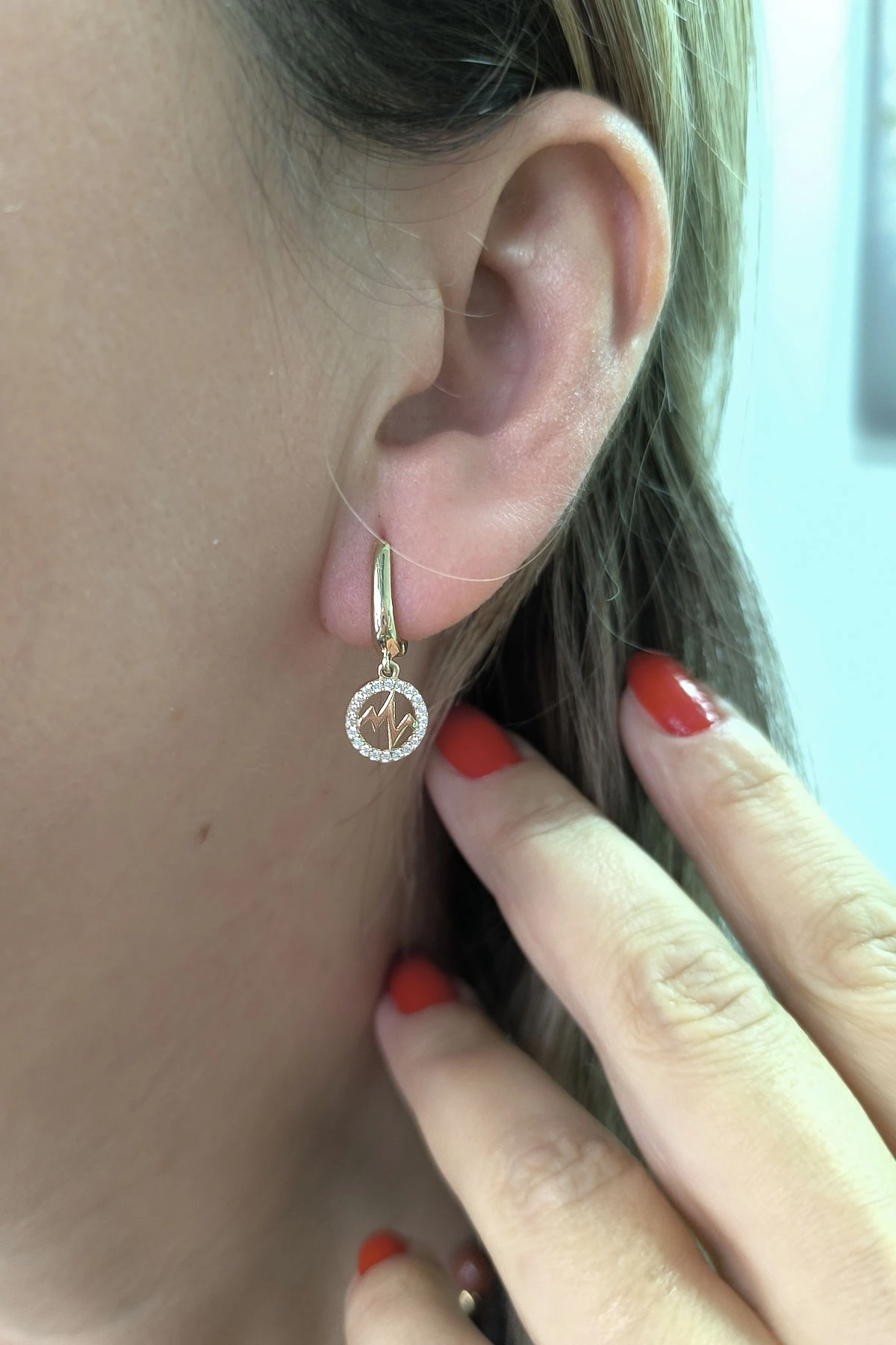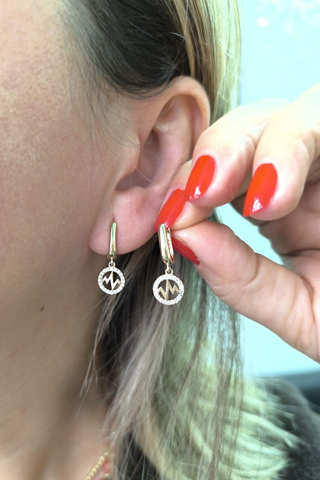 2.70 Gram Ağırlığında 2.2 Cm Minimal Model Sallantılı Model Zirkon Taşlı Günlük, Modern Ve Şık Bir Duruşa Sahip 14 Ayar Altın Kadın Kalp Atışı Yuvarlak Küpe.