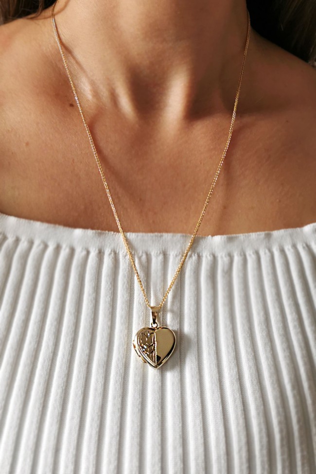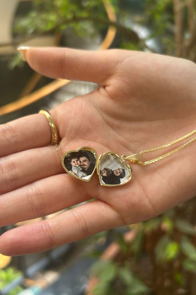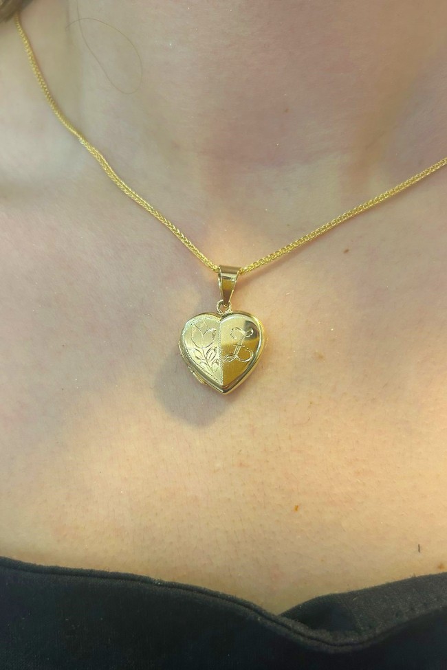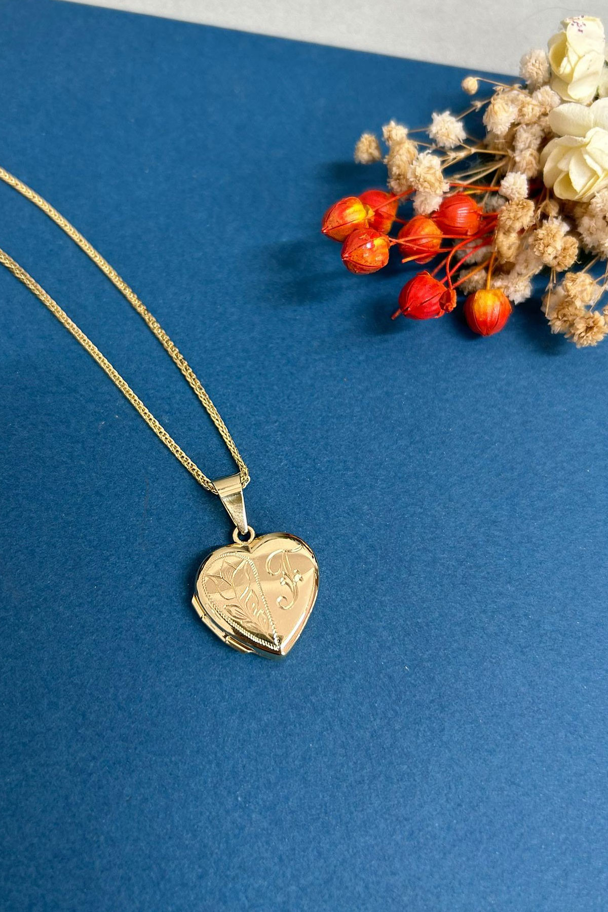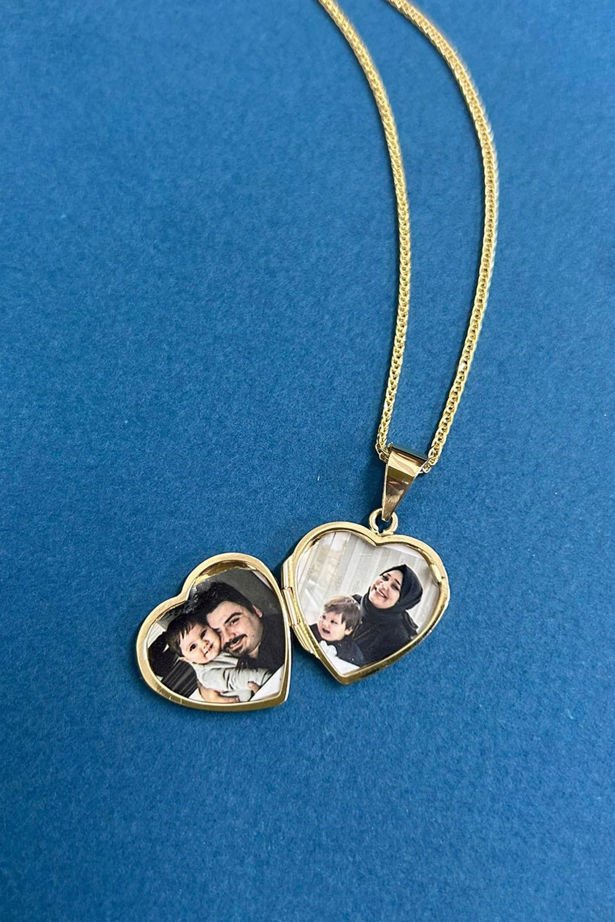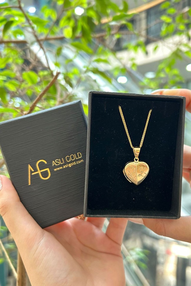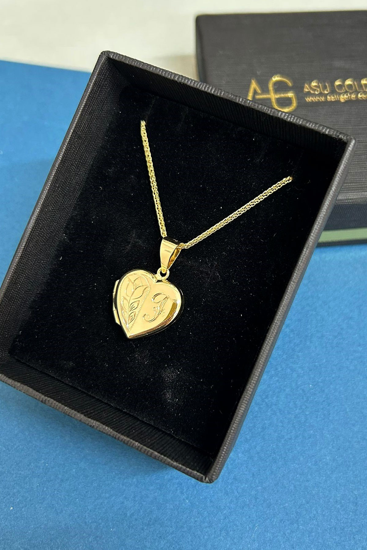 14 Ayar altın 6.00 gram ağırlığında şık ve gündelik kullanıma uygun 2.8 cm el kalemi ile işlenmiş nostalji kalp model kapaklı madalyon kolye.