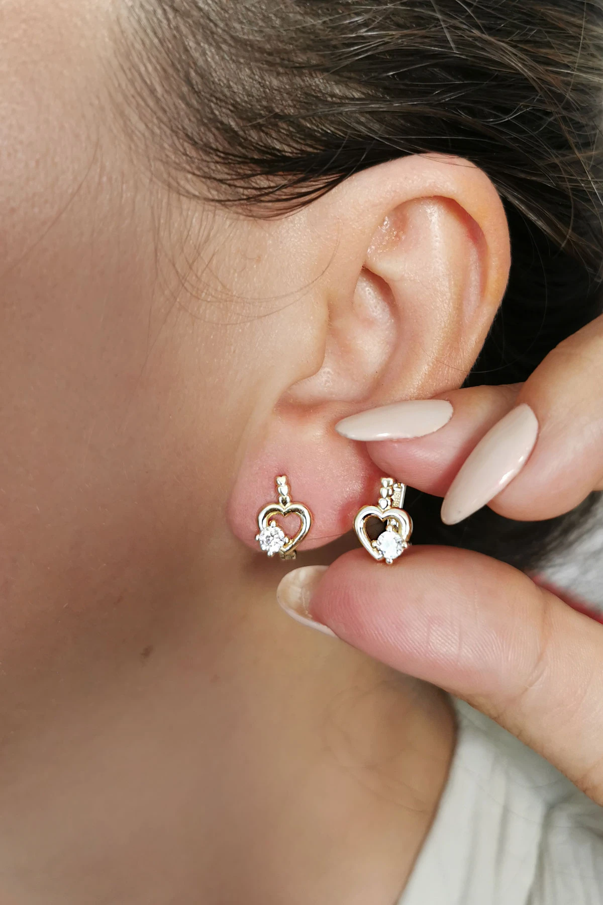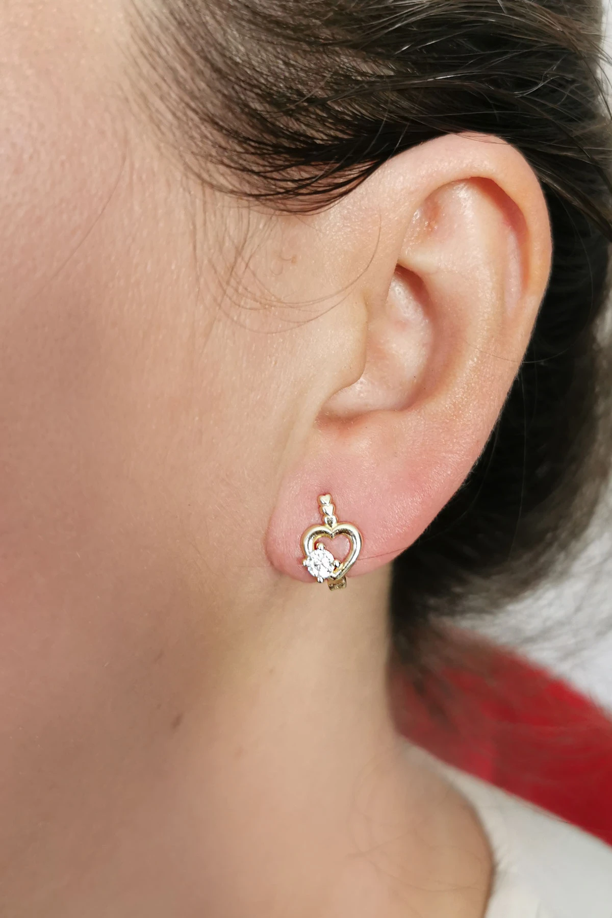 2.25 Gram Ağırlığında 1.2 Cm Boyunda Zirkon Taşlı Kalp Model 14 Ayar Altın Klipsli Spor Minimal Küpe.