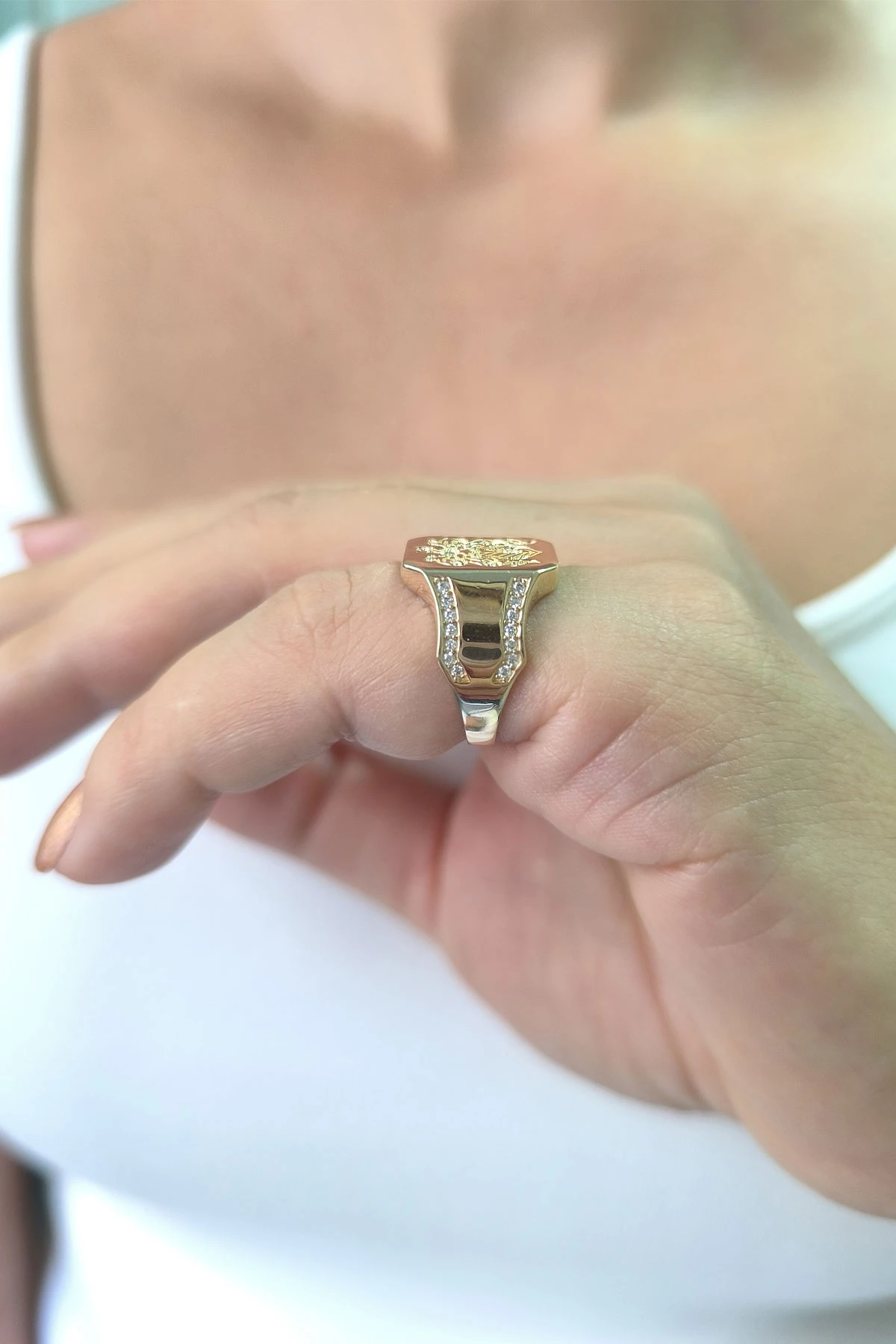 Kalp motifli model taşlı 14 ayar sarı altın tasarımıyla günlük kullanıma uygun 3.25 gram ağırlığında kadın yüzük.