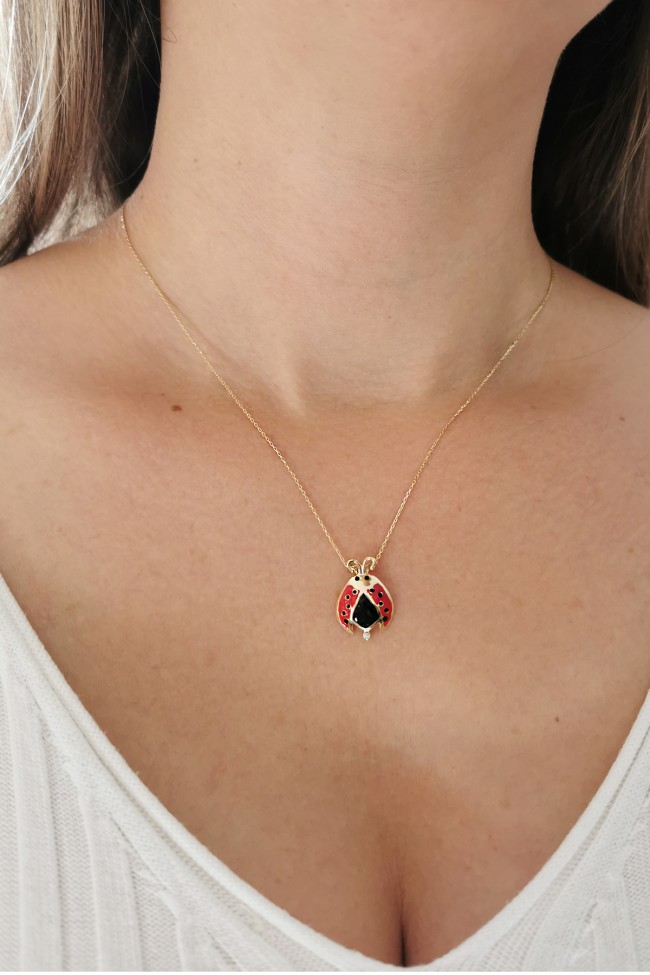 2.60 Gram Ağırlığında Kanadı Açık Uğur Böceği Tasarımlı Günlük Kullanıma Uygun, Severek Kullanabileceğiniz Sevimli Tasarım 14 Ayar Altın Kolye.