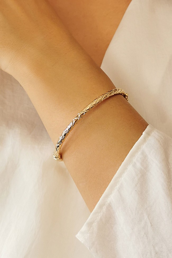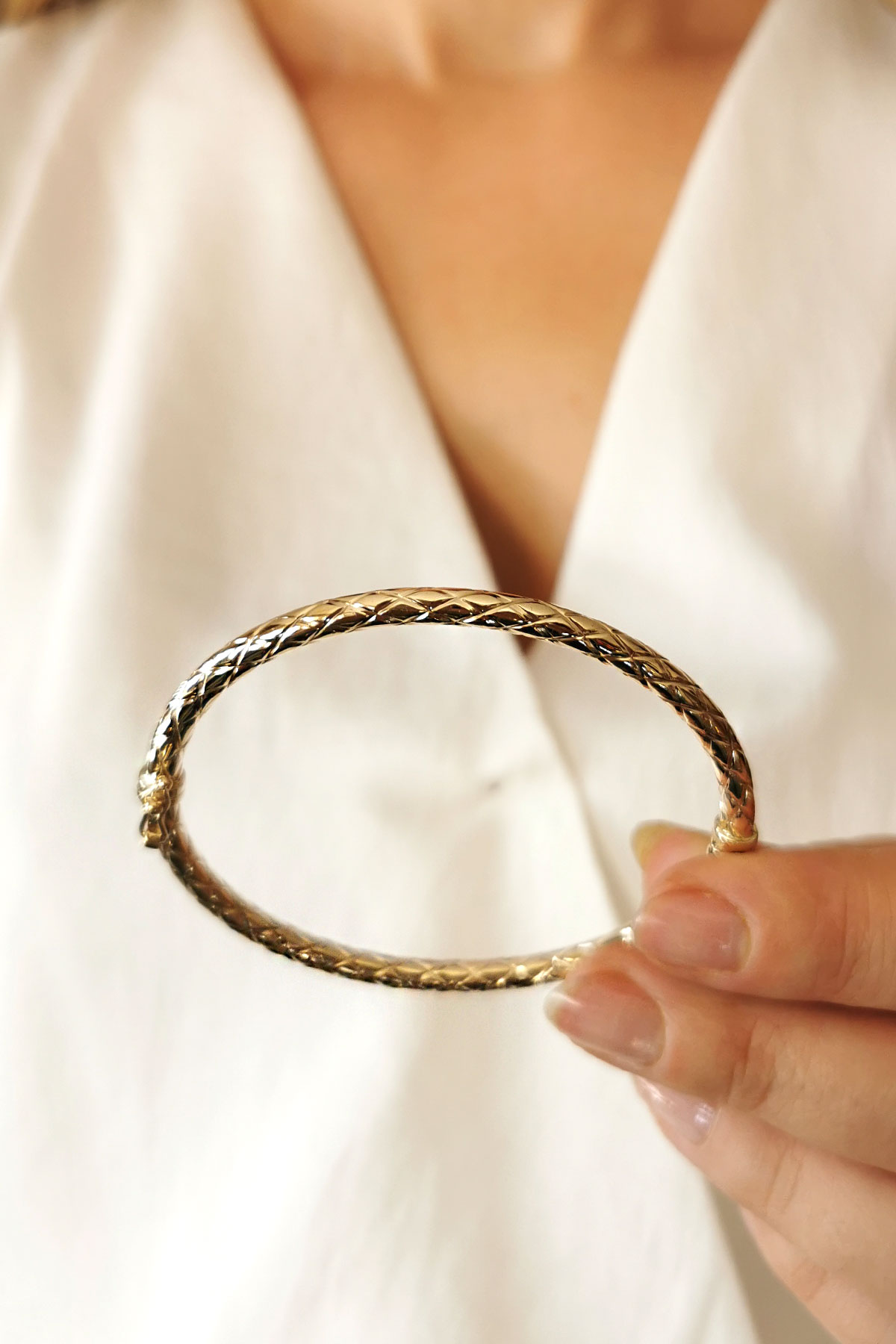 6.20 Gram Ağırlığında Modern Spor Bir Tarzı Olan Günlük Kullanıma Uygun 14 Ayar Altın 4 Mm Genişliğinde Altın Kapitone Bilezik.