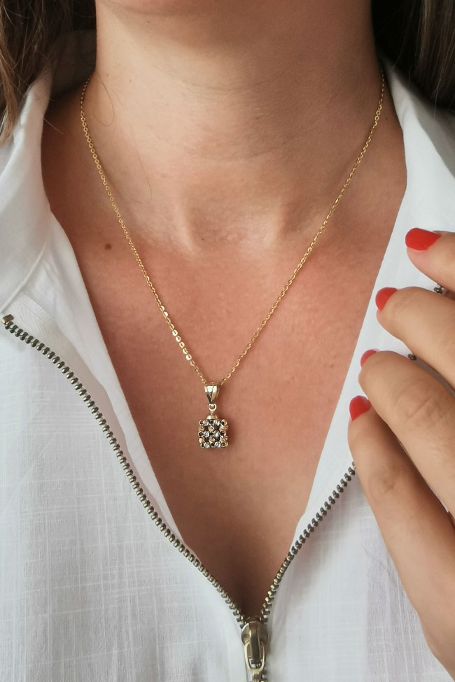 3.50 Gram Ağırlığında Kare Model Zarif Tasarımıyla Oldukça Spor Bir Havaya Sahip 14 Ayar Altın Dorika Kolye.