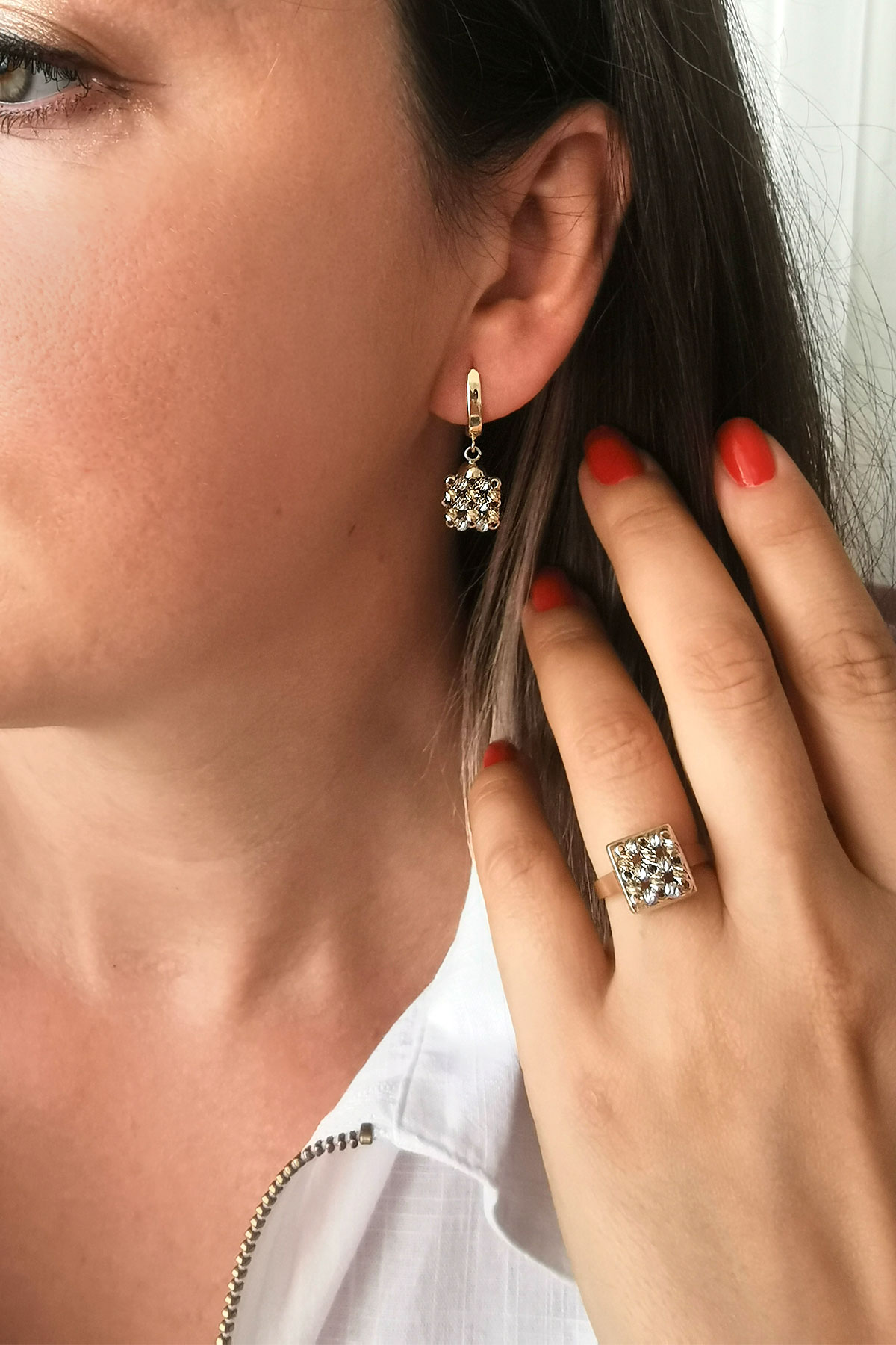 7.30 Gram Ağırlığında Kare Model Zarif Tasarımıyla Oldukça Spor Bir Havaya Sahip 14 Ayar Altın Dorika Yüzük Küpe İkili Takım.
