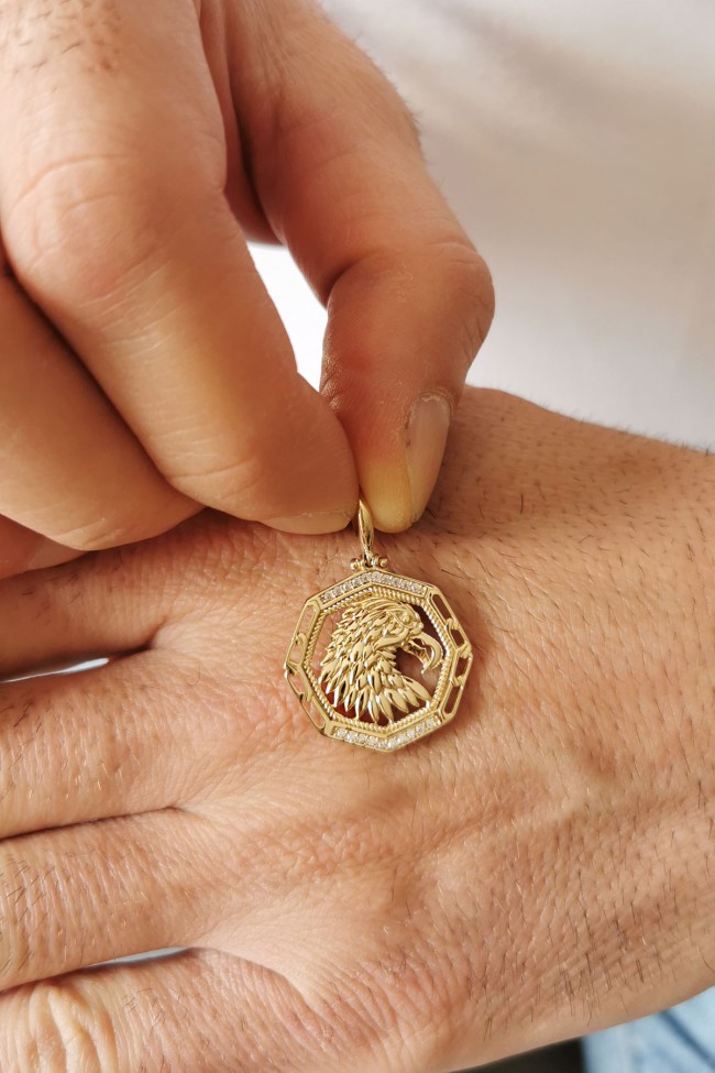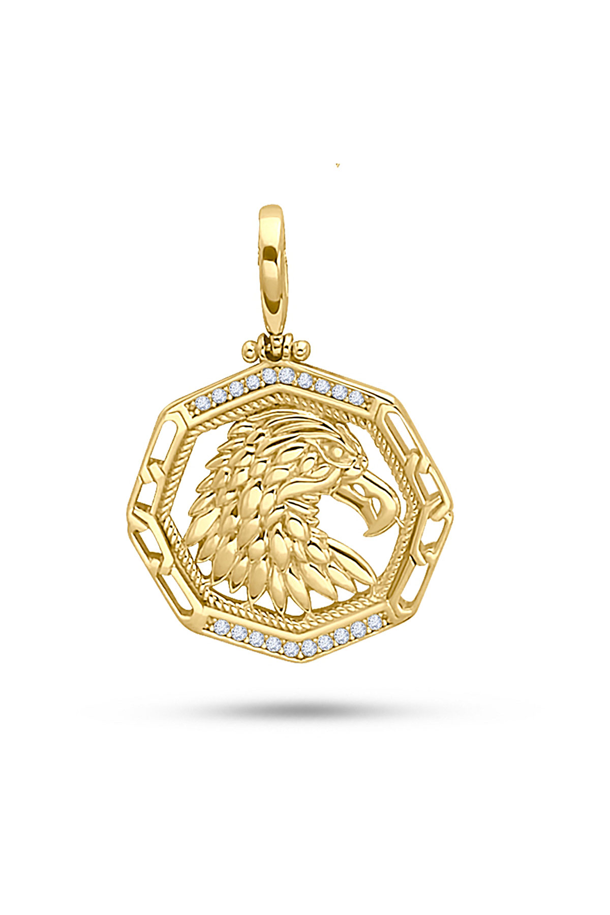 Modern Şehirli Tarz 3.2 Cm Boyunda Oldukça Şık Bir Modele Sahip 4.50 Gr. Ağırlığında 14 Ayar Altın Zirkon Taşlı Kartal Erkek Kolye Ucu