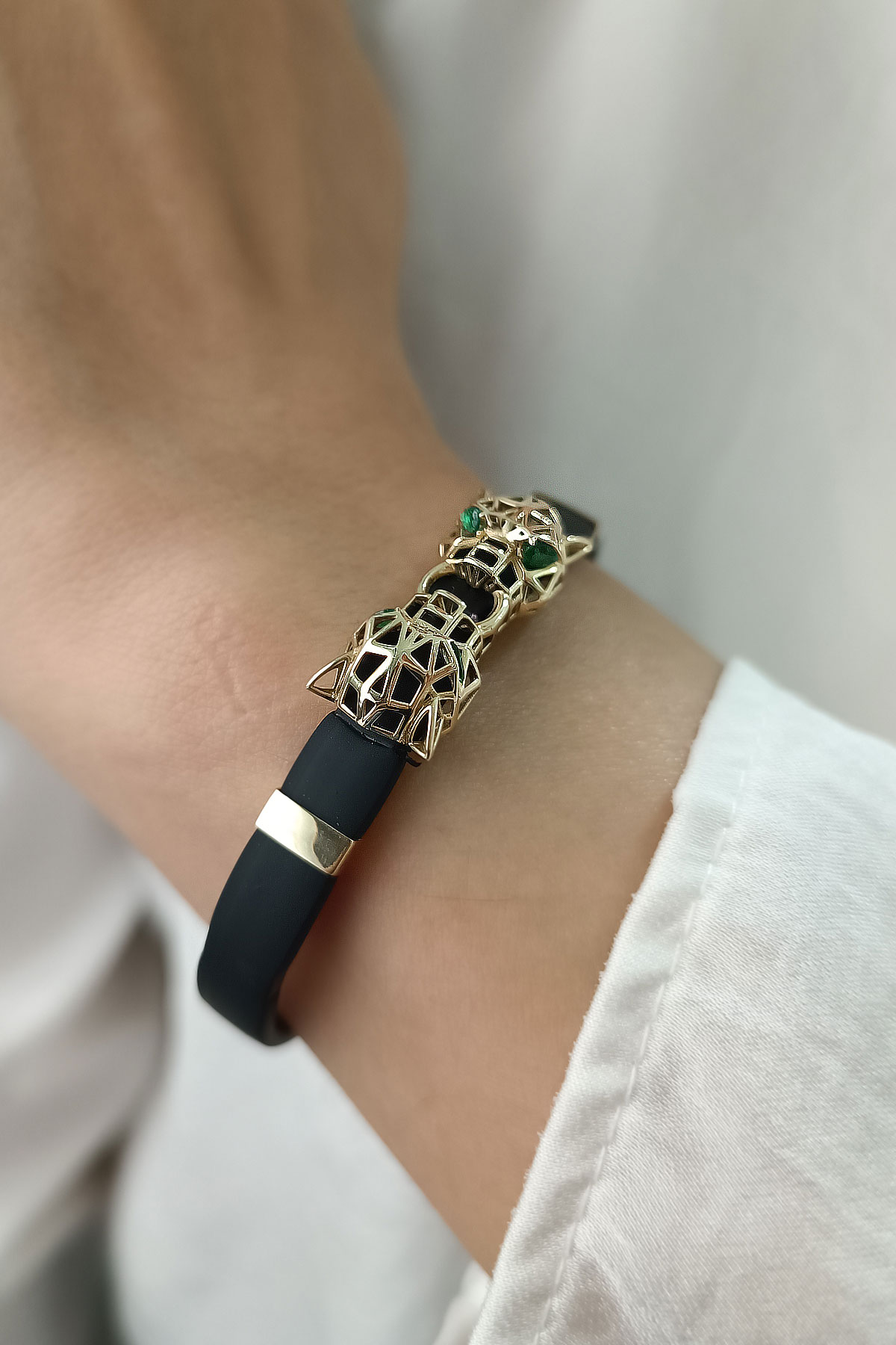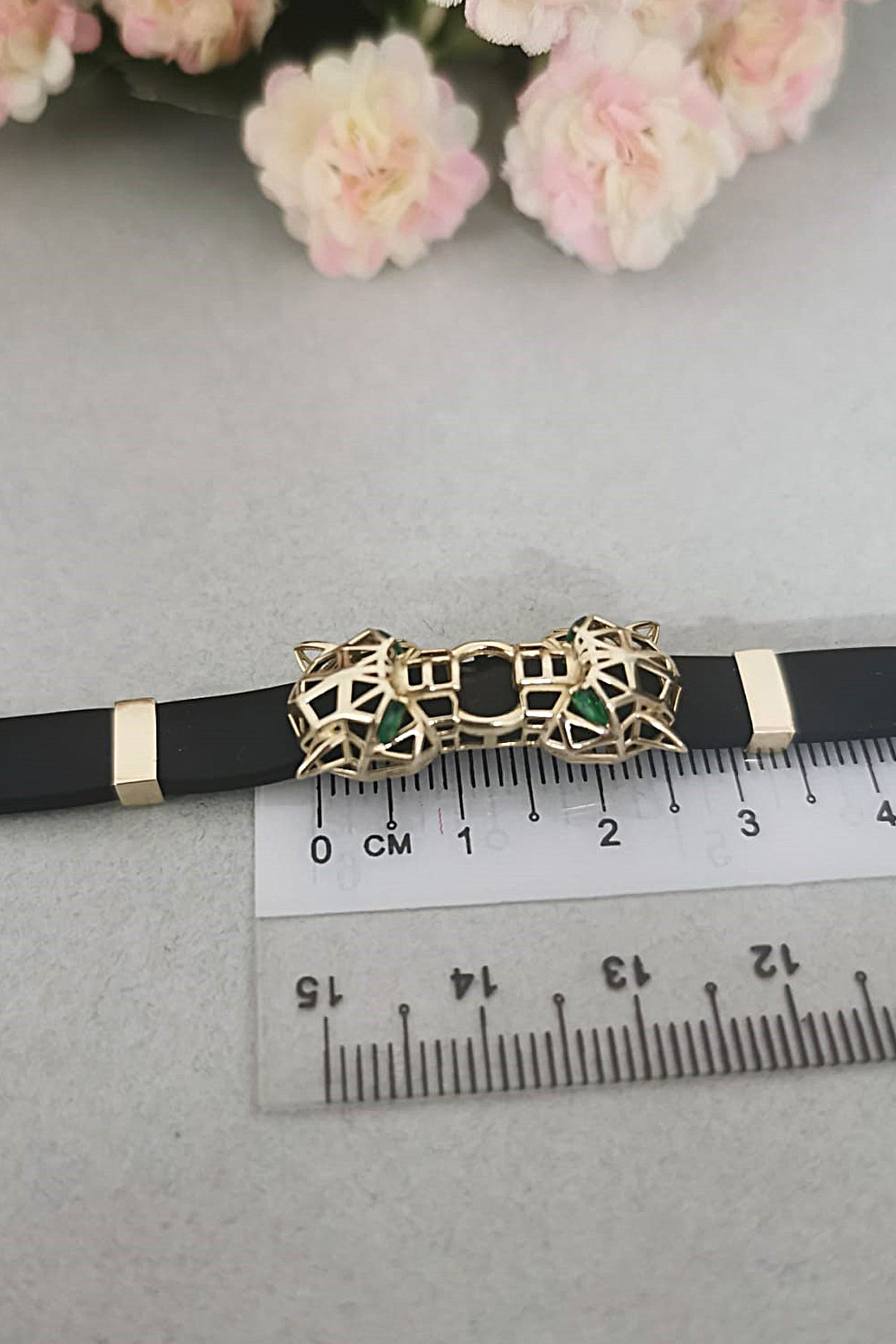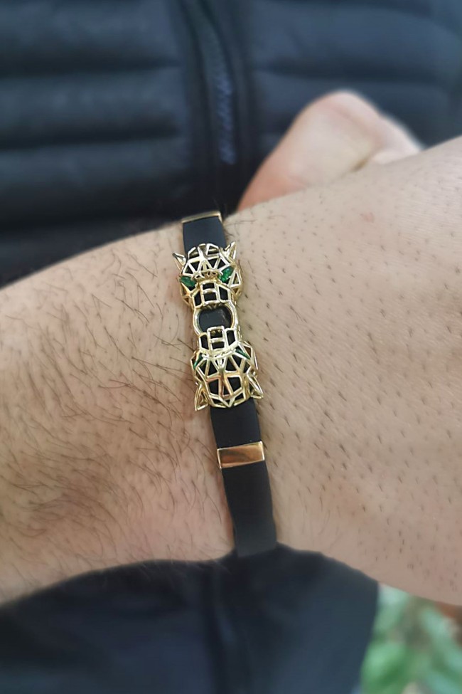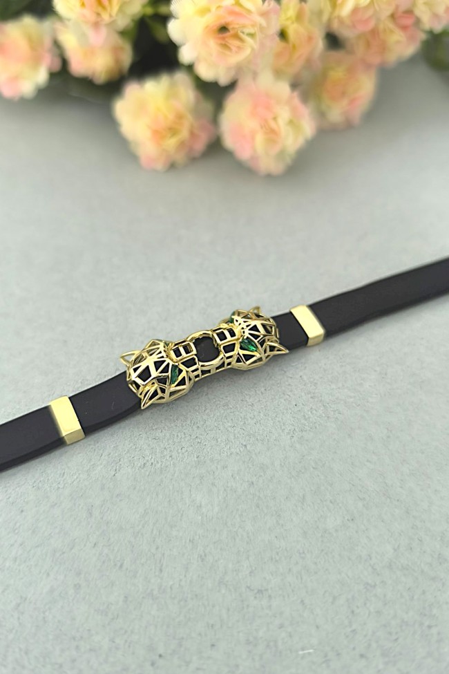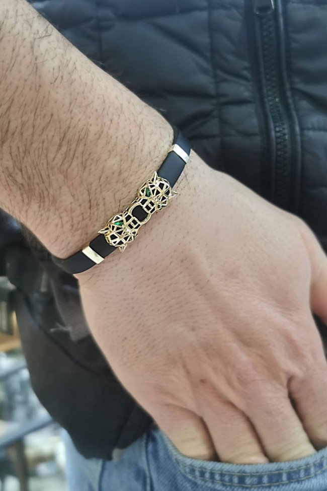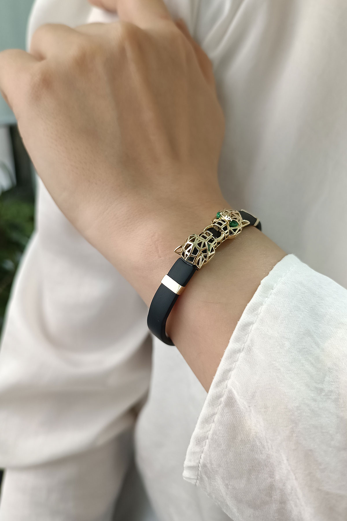 14 Ayar Panter Detaylı Altın Spor ve Günlük Kullanıma Uygun Model Kauçuk Unisex Spor Bileklik.