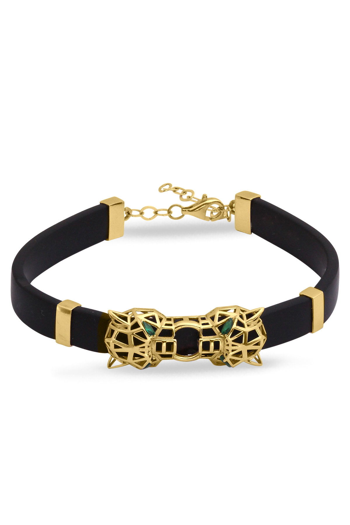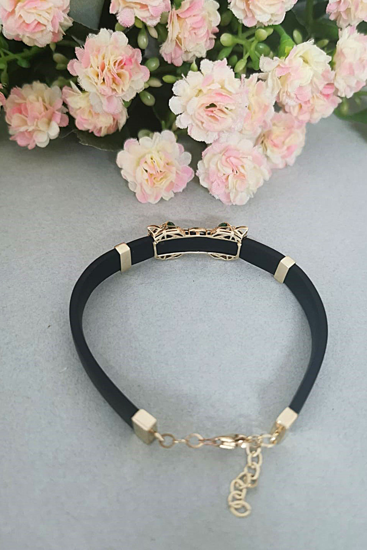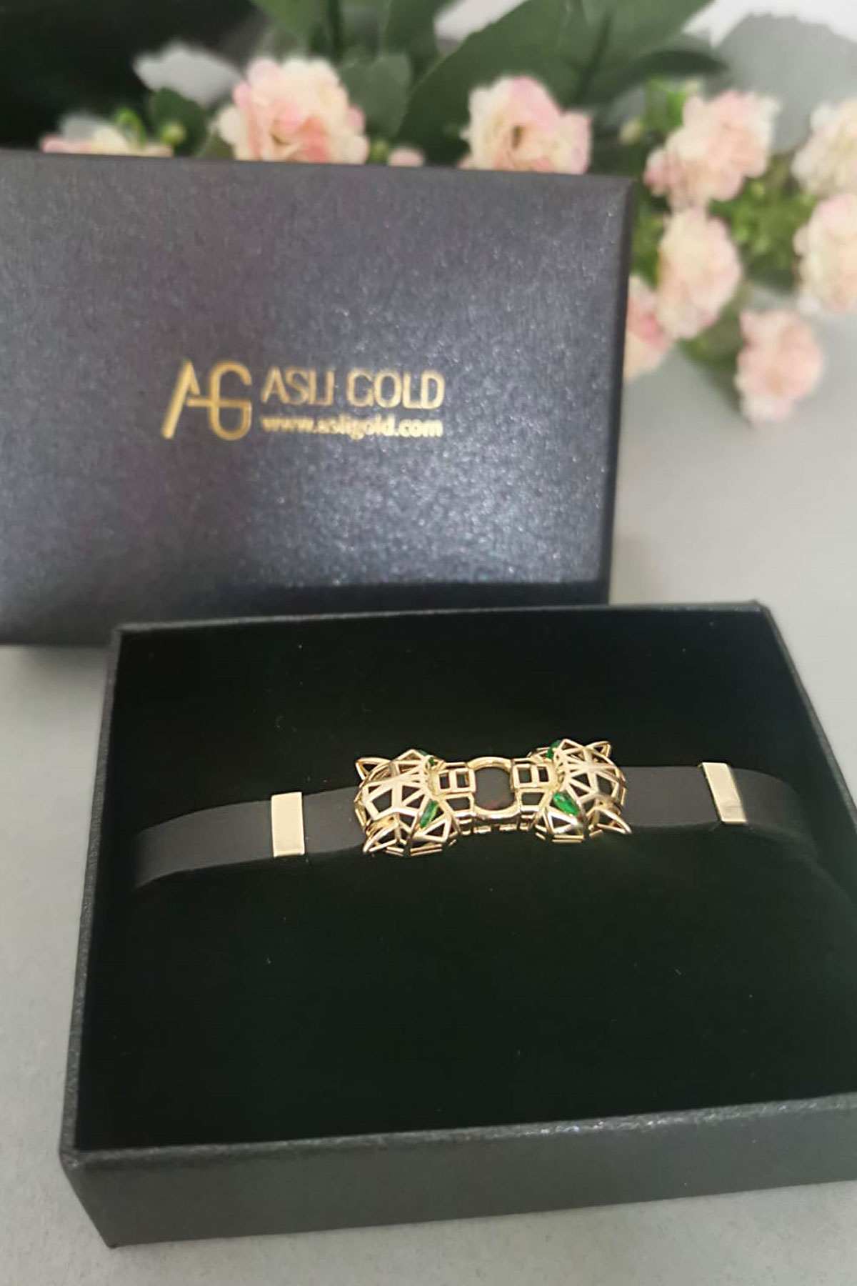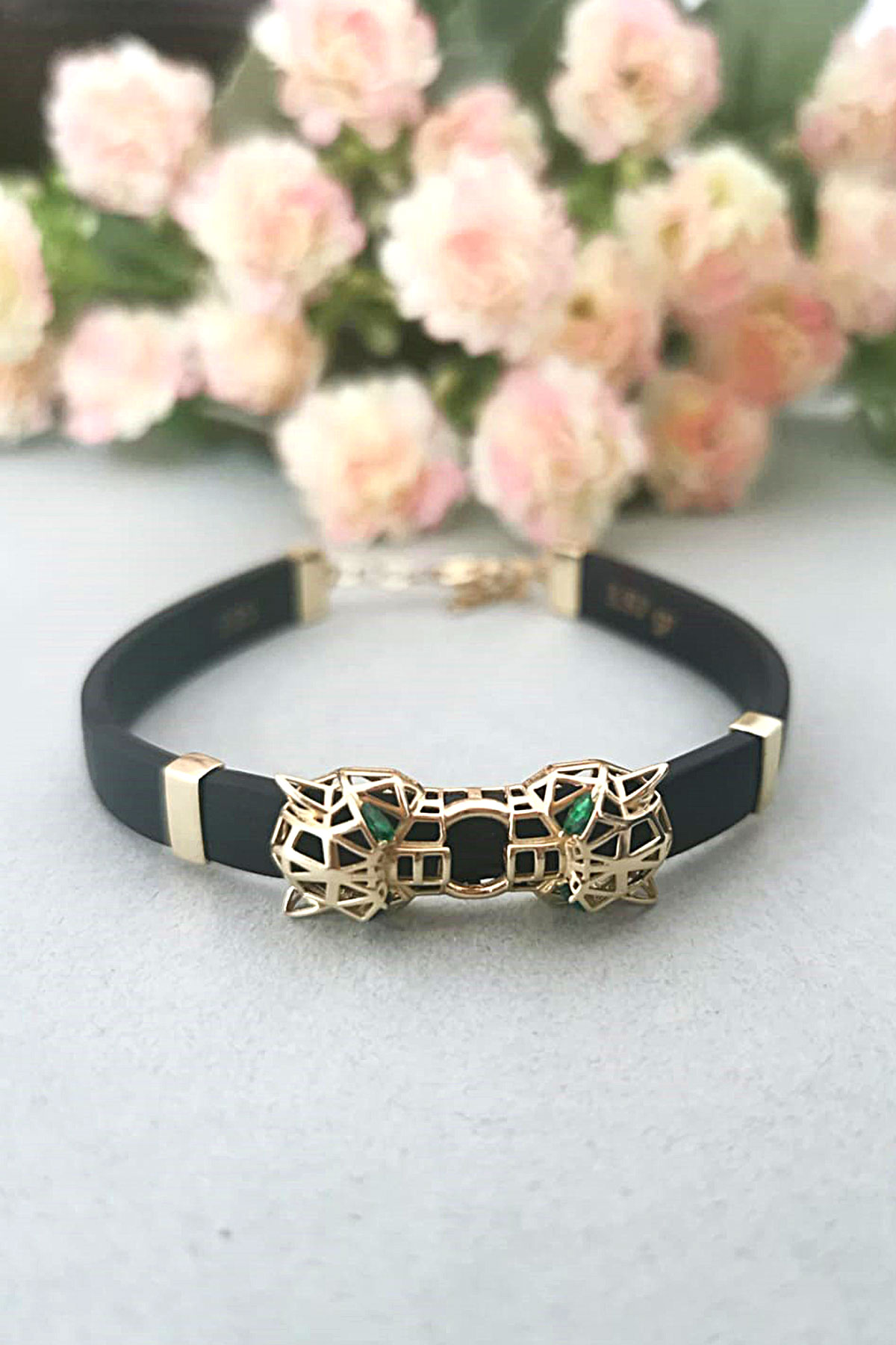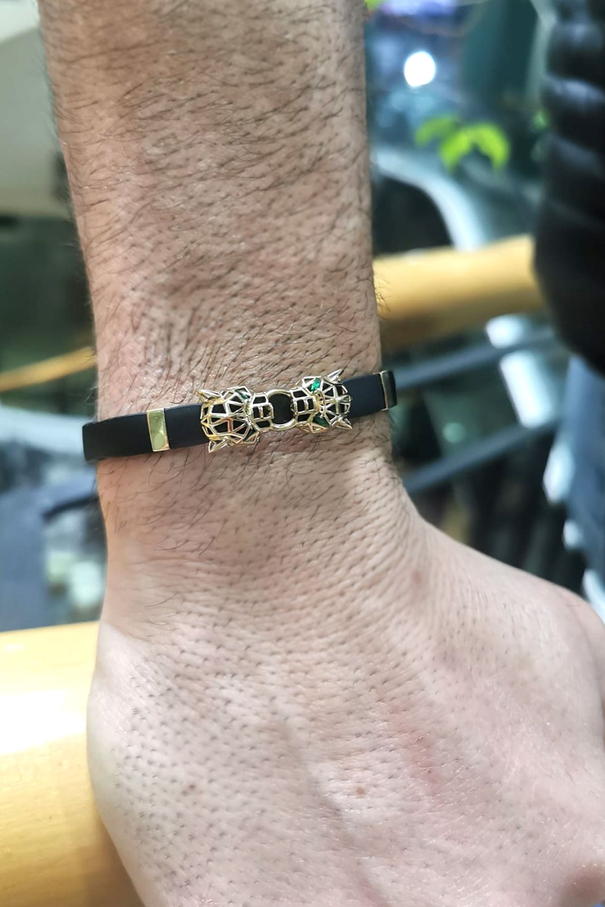 14 Ayar Panter Detaylı Altın Spor ve Günlük Kullanıma Uygun Model Kauçuk Unisex Spor Bileklik.