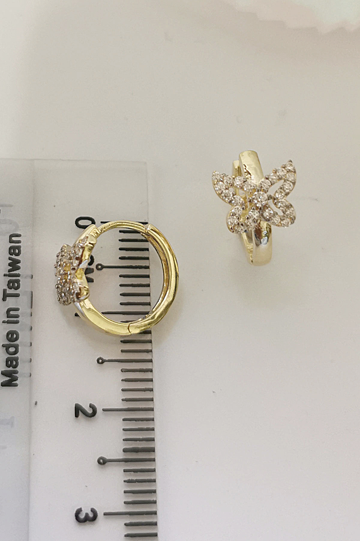 1 Cm boyunda kelebek detaylı zirkon taşlı günlük kullanıma uygun ışıl ışıl 14 ayar 1.80 gr ağırlığında altın çocuk küpesi.
