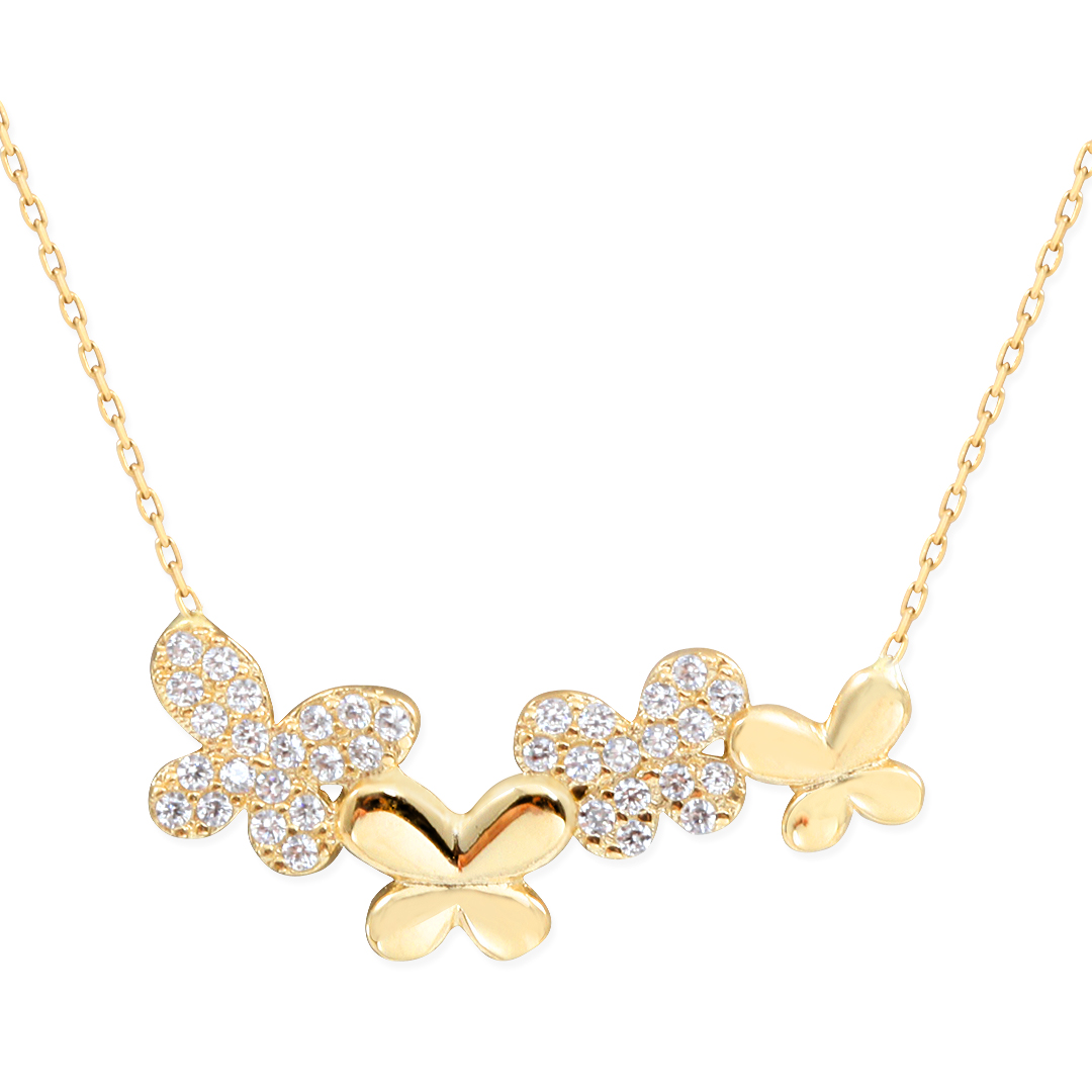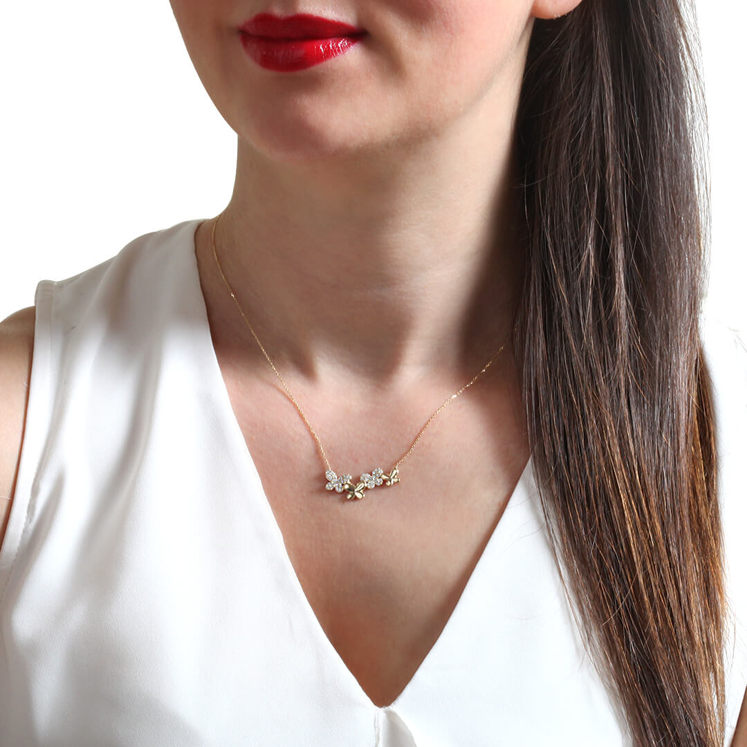 14 Ayar 4 lü kelebek kombinasyonu ile ışıl ışıl ve minimal tasarımlı günlük kullanıma uygun spor model altın kolye. *Ürünlerimiz faturalıdır güvenle satın alabilirsiniz, özel hediye kutusunda ücretsiz kargo ile gönderilecektir.