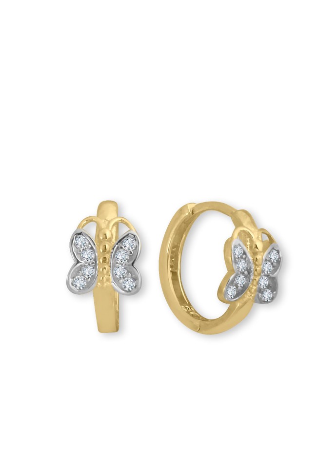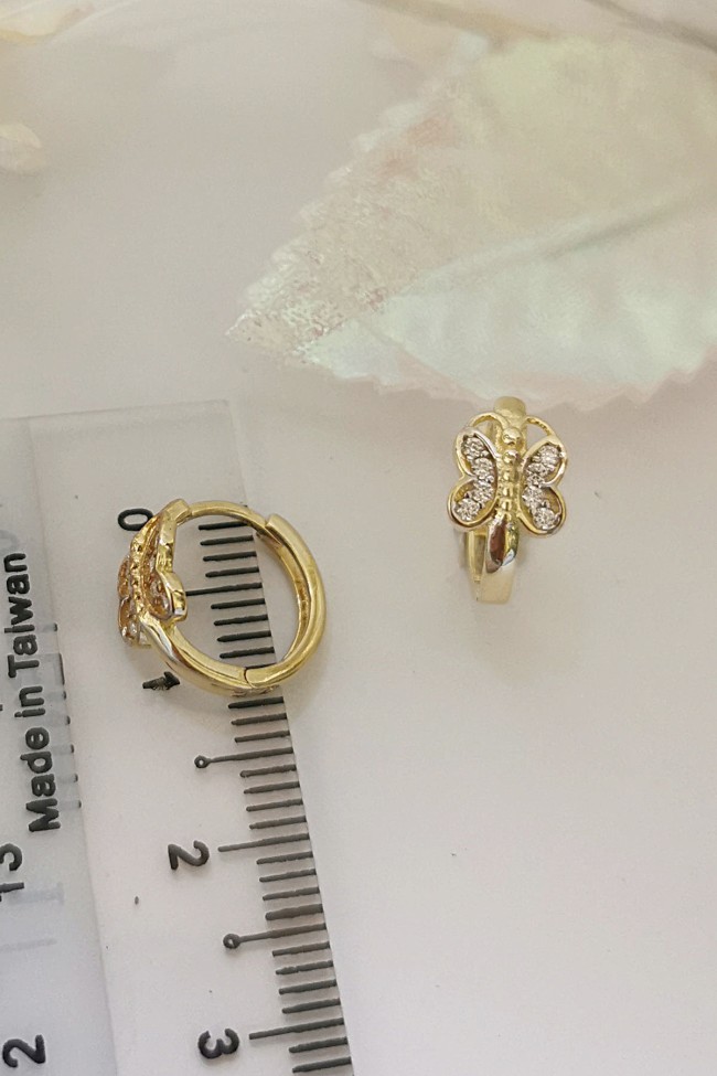 1 Cm boyunda zirkon taşlı günlük kullanıma uygun ışıl ışıl 14 ayar 1.60 gr ağırlığında altın kelebek figürlü çocuk küpesi.