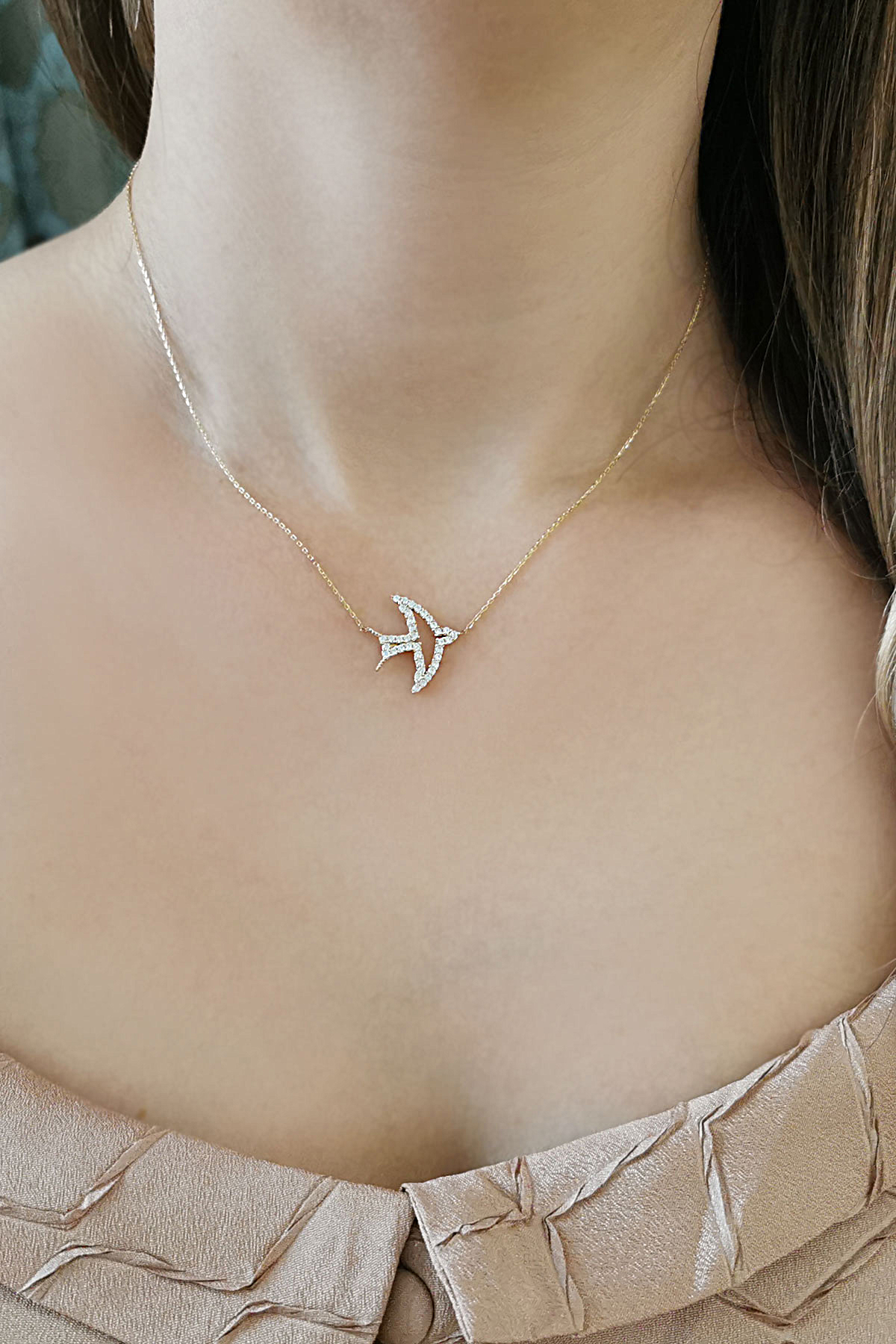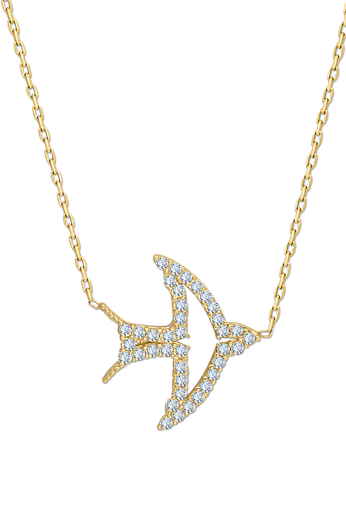 Kendinen 45 Cm Zincirli 14 Ayar Kırlangıç Kuşu Detaylı Işıl Işıl Zirkon Taşlı 1.85 Gr. Ağırlığında Altın Tasarım Kolye.