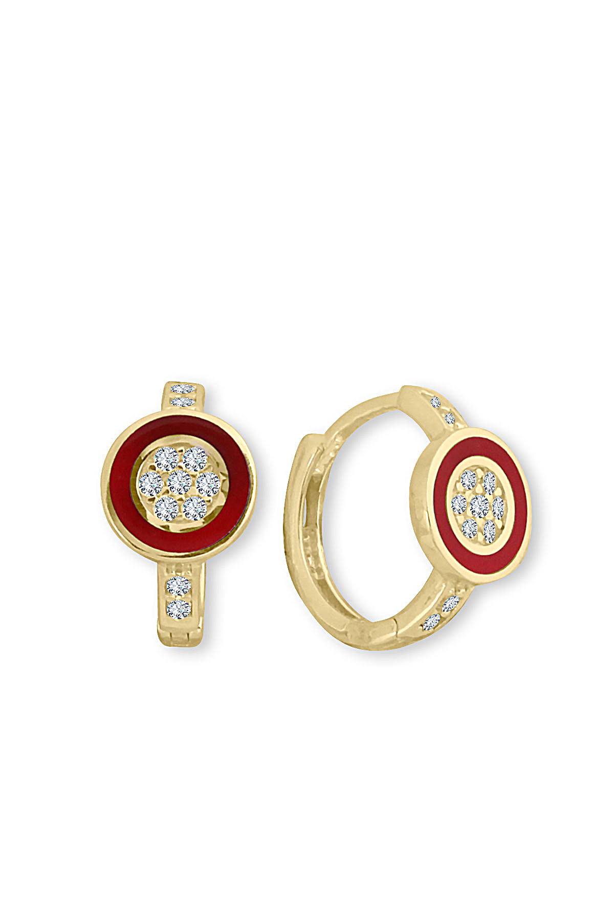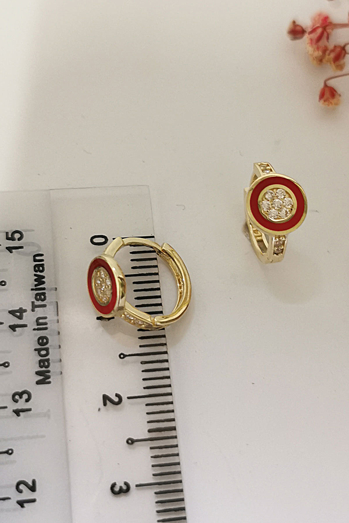 1 Cm boyunda kırmızı mineli günlük kullanıma uygun ışıl ışıl 14 ayar 1.90 gr ağırlığında altın çocuk küpesi.