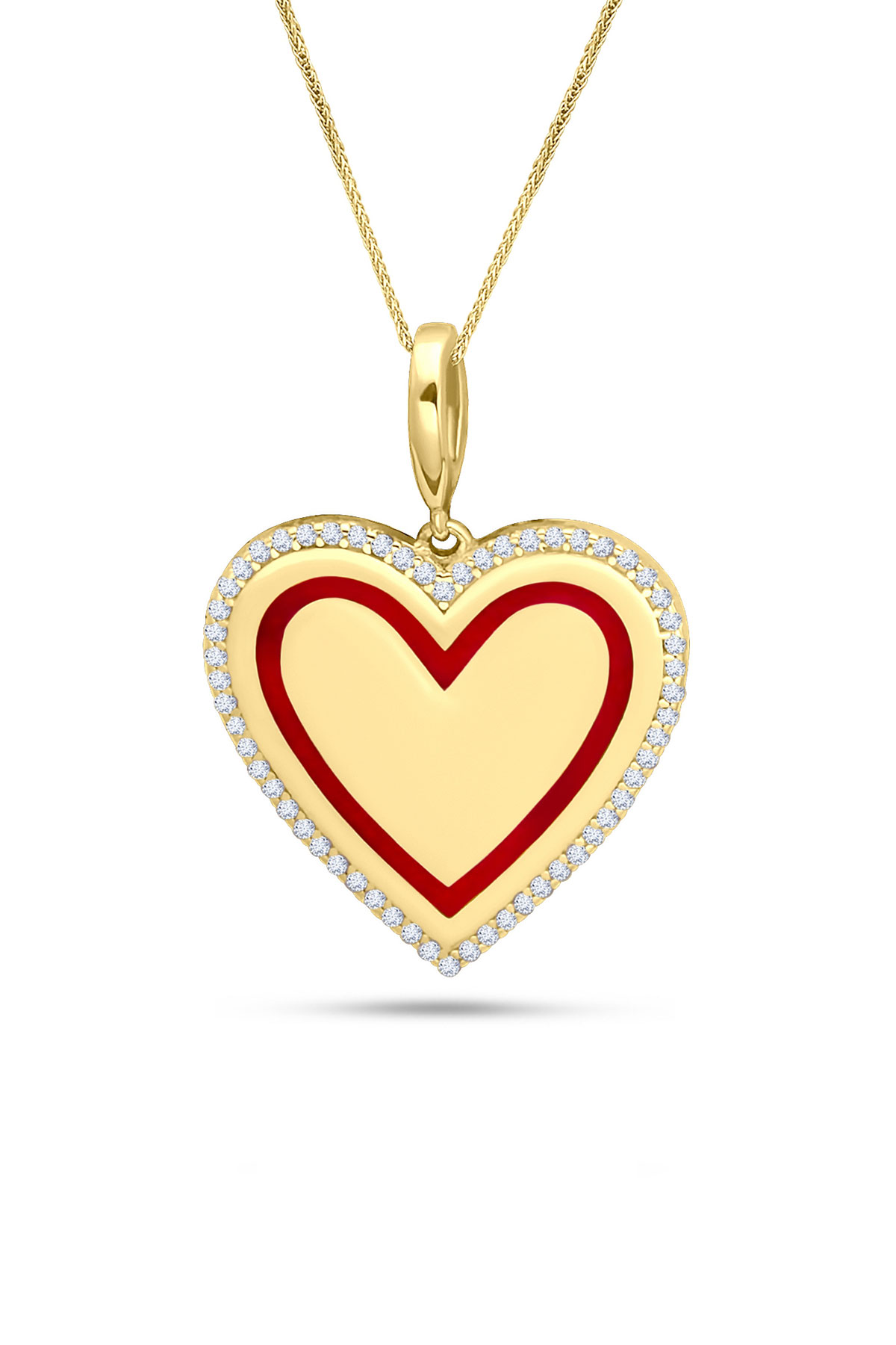 6.30 Gr. 45 Cm Spiga Zincirli Çerçevesi Taşlı Altın Kırmızı Mine Detaylı Kalp Kolye.