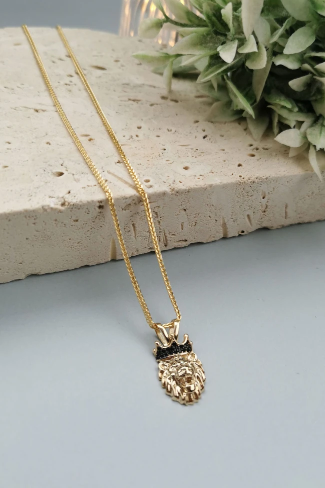 Modern Şehirli Tarz 60 Cm Boyunda Spiga Zinciri İle Oldukça Şık Bir Modele Sahip 5.30 Gr. Ağırlığında 14 Ayar Altın Aslan Erkek Kolye.