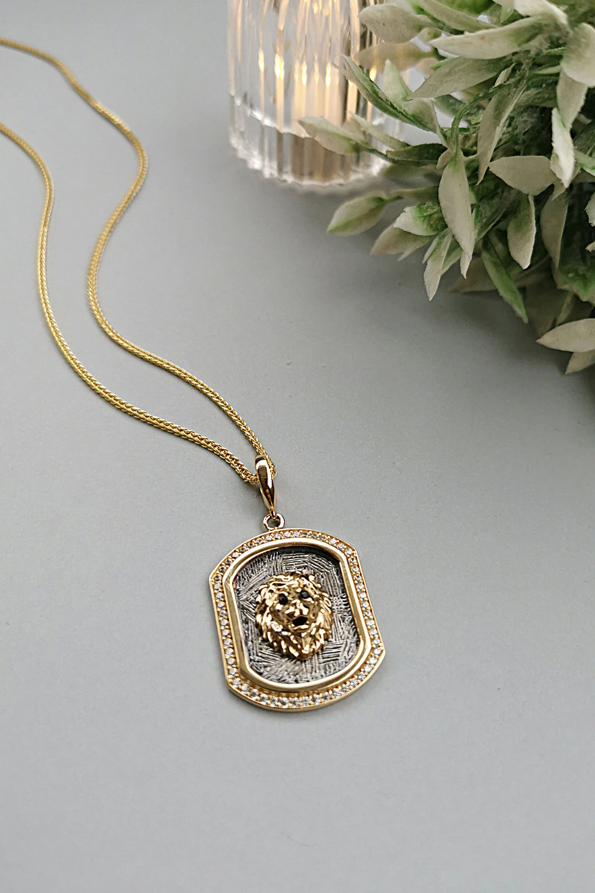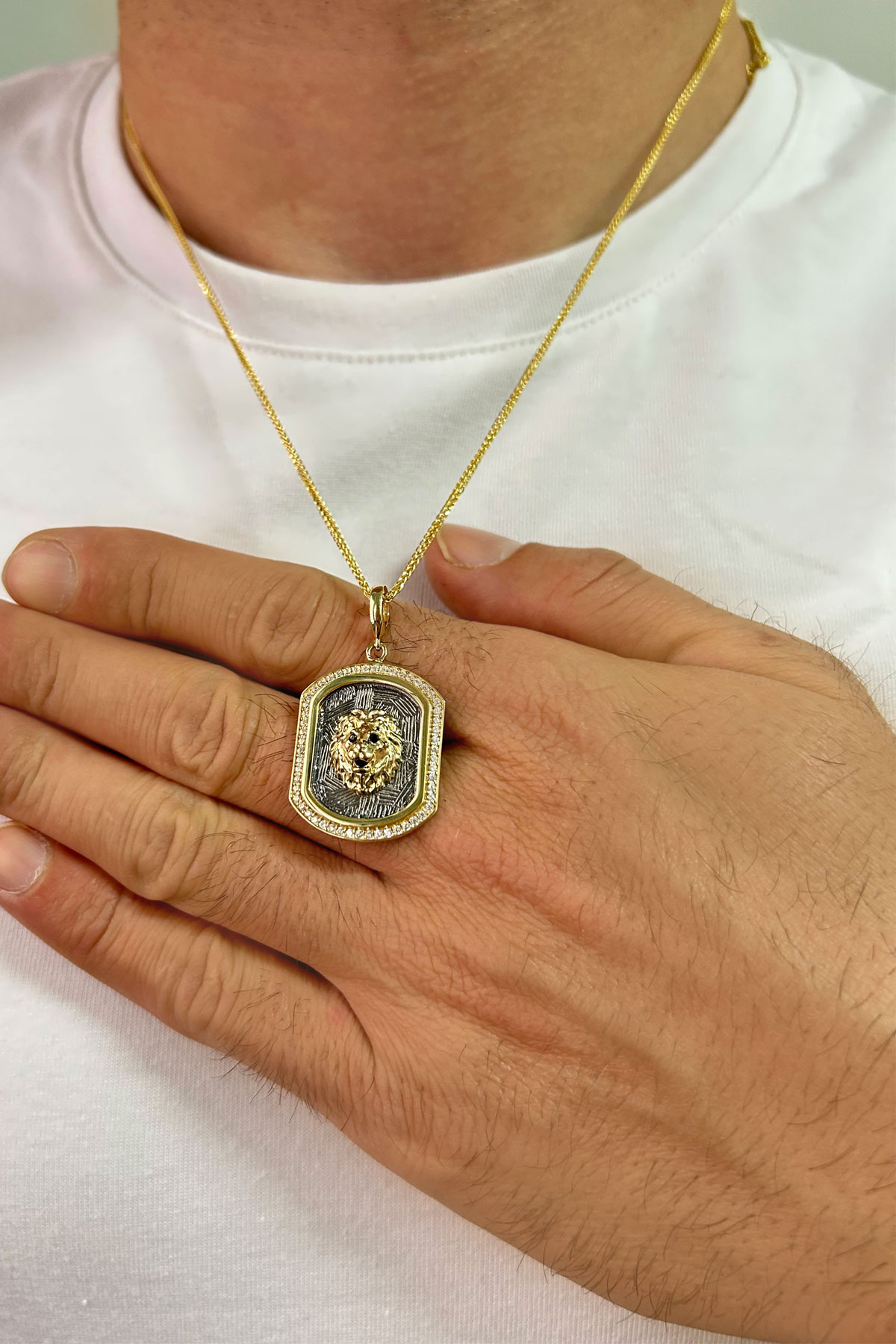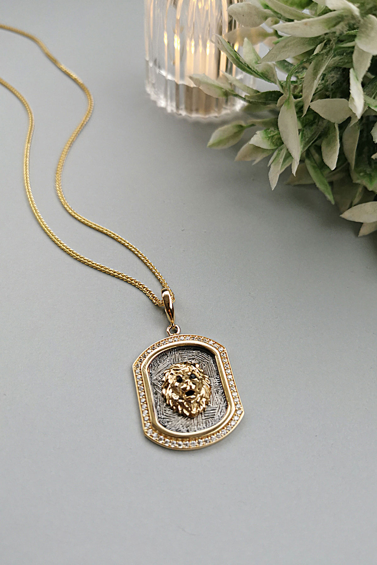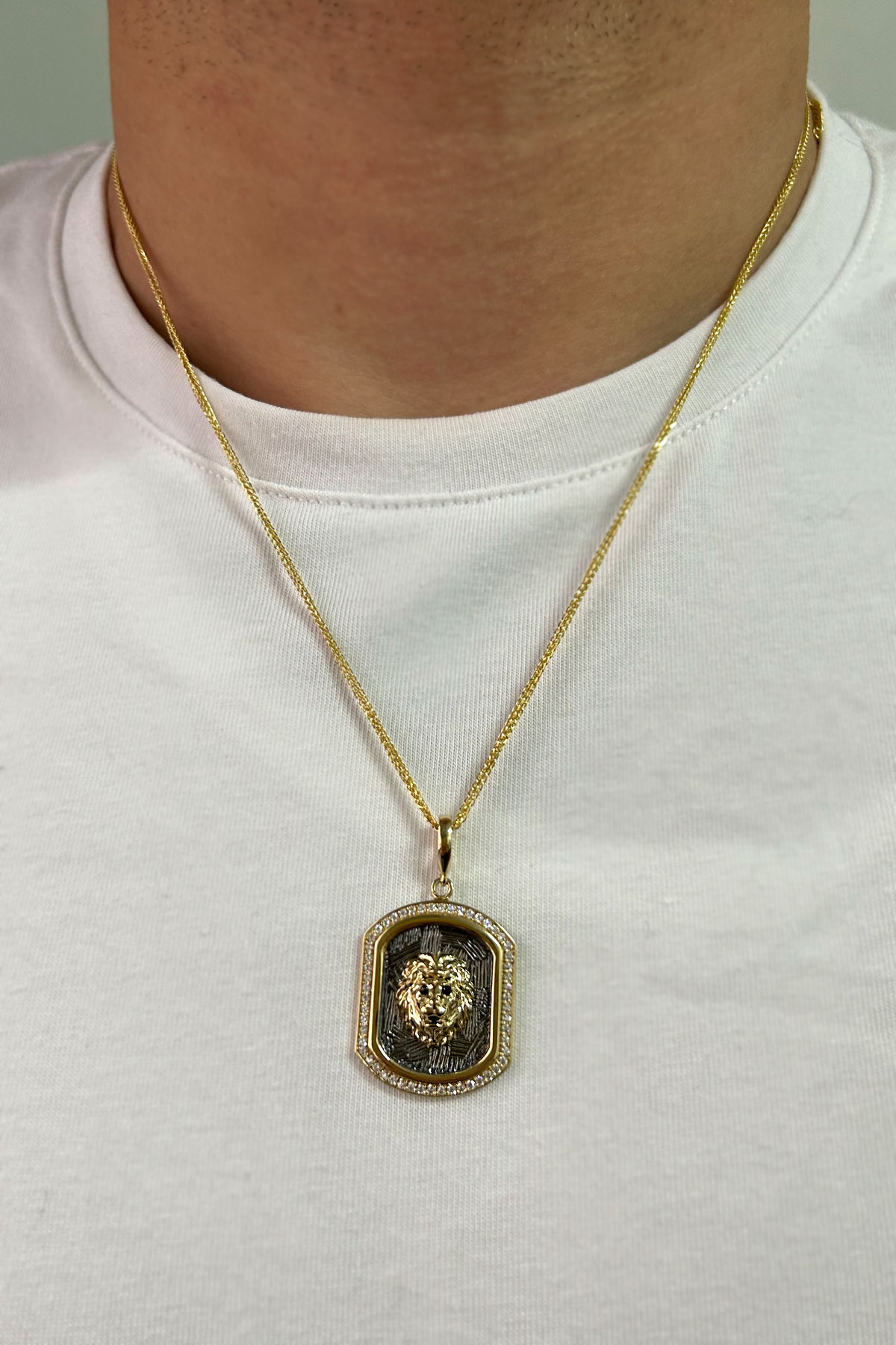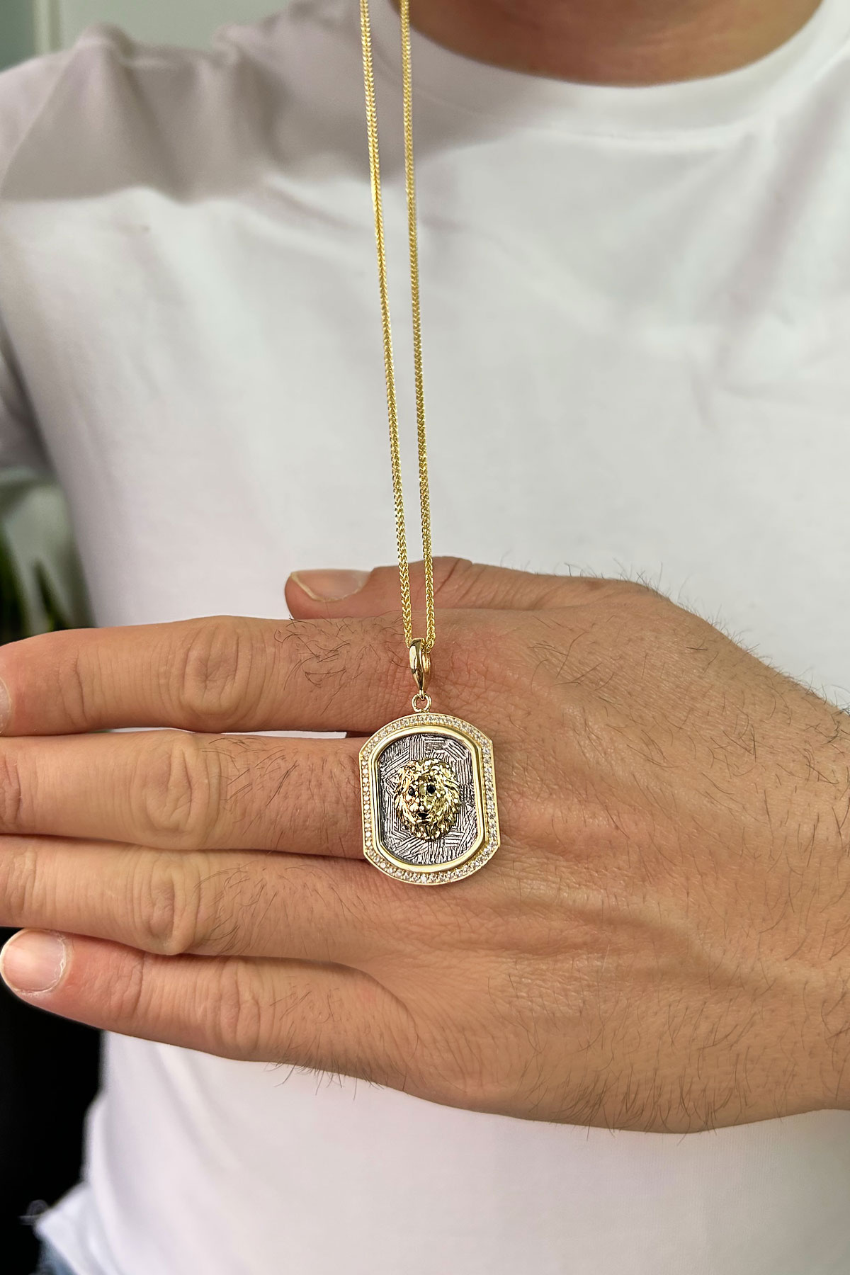 10.00 gr. 4 cm boyutunda 45 cm spiga zincirli 14 ayar altın künye model aslan detaylı erkek kolye .
