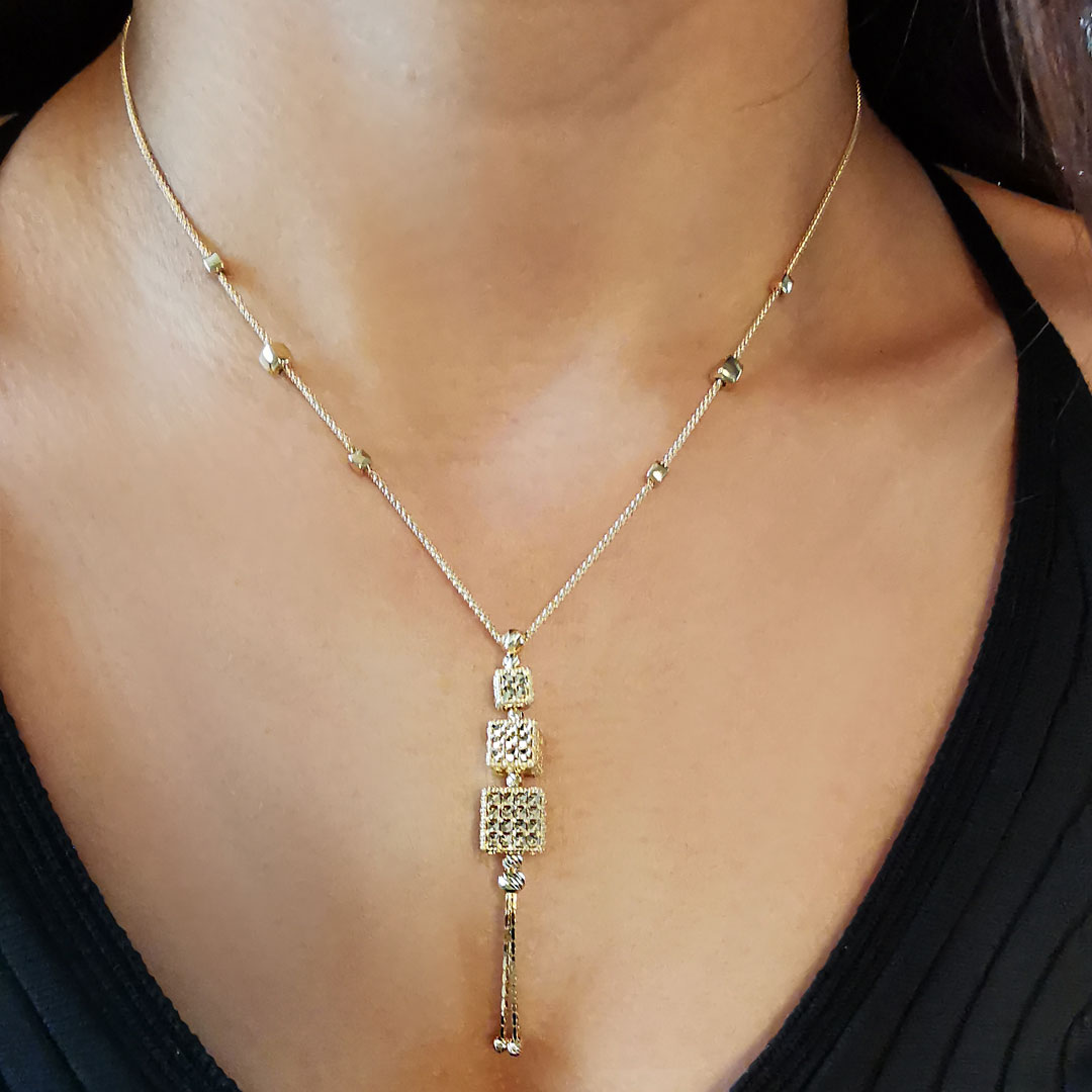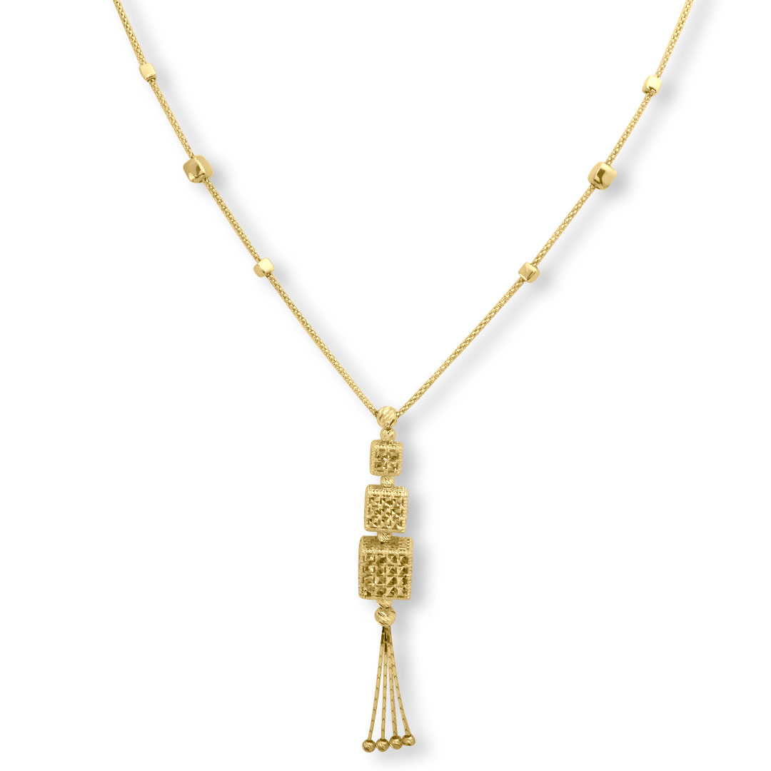 Kendinen 45 Cm Zincirli 14 Ayar Küp ve Dorika Top Detaylı Işıl Işıl Modern Tasarım 8.10 Gr. Ağırlığında Altın Modern Püsküllü Kolye.