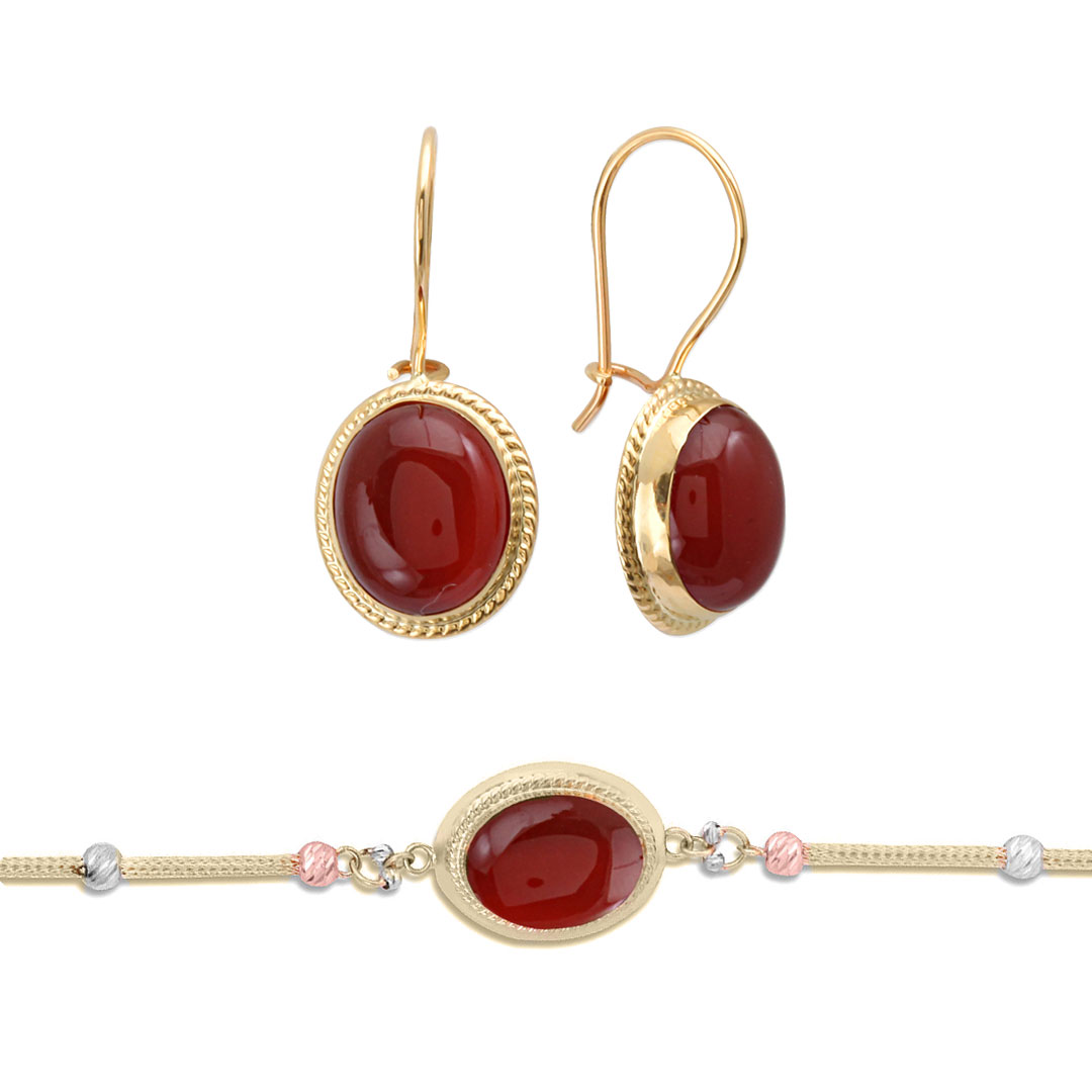 8.75 Gram ağırlığında akik taş detaylı günlük kullanıma uygun tüm gün tarzınıza eşlik edecek 14 ayar altın bileklik ve küpe takım.