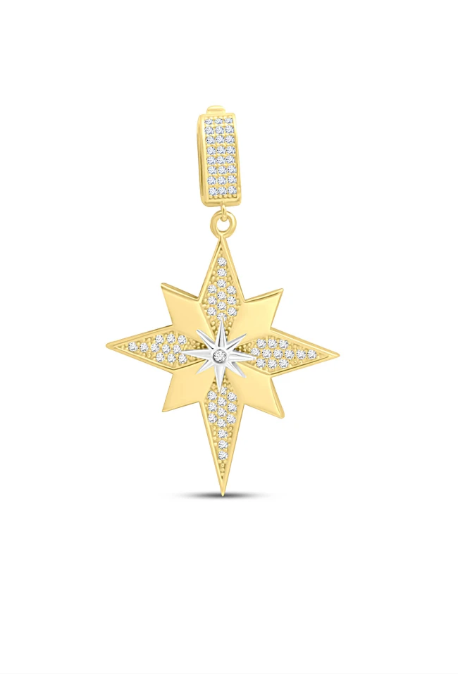 Spor Ve Modern Tarz  Oldukça Şık Bir Modele Sahip 5.35 Gr. Ağırlığında 14 Ayar Altın Taşlı Kuzey Yıldızı Model Unisex Kolye Ucu.