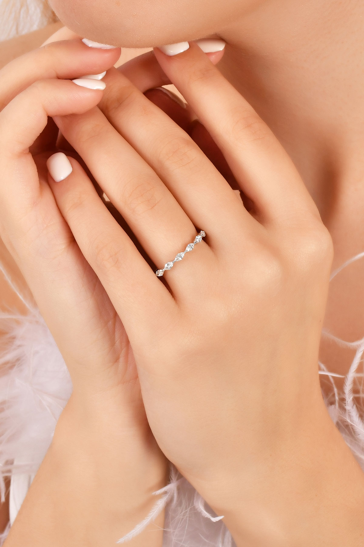 F/VS 0.35 Ct. taşlı 14 ayar beyaz altın markiz taşlı yedi taş pırlanta yüzük. Şahane duruşuyla parmaklarınızda ahenk yakalayacağınız anlara şahit olun.