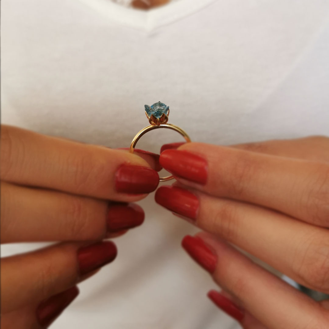 2 Gram Ağırlığında El İşçiliğiyle Takılan Mavi (Aqua Marine) Markiz Taş Detaylı Minimal Tasarımıyla Oldukça Şık Ve Sade Bir Duruşa Sahip 14 Ayar Altın Lotus Çiçeği Yüzük. -Ruhsal uyanışın ve temizliğin sembolü olan, eşi benzeri doğada bulunmayan mavi renkli lotus çiçeği bilgi ve bilgeliği temsil eder. Aynı zamanda saf tutku, yeniden doğuş, bereket ve bolluğu simgeler. *Ürünlerimiz faturalıdır güvenle satın alabilirsiniz, özel hediye kutusunda ücretsiz kargo ile gönderilecektir.