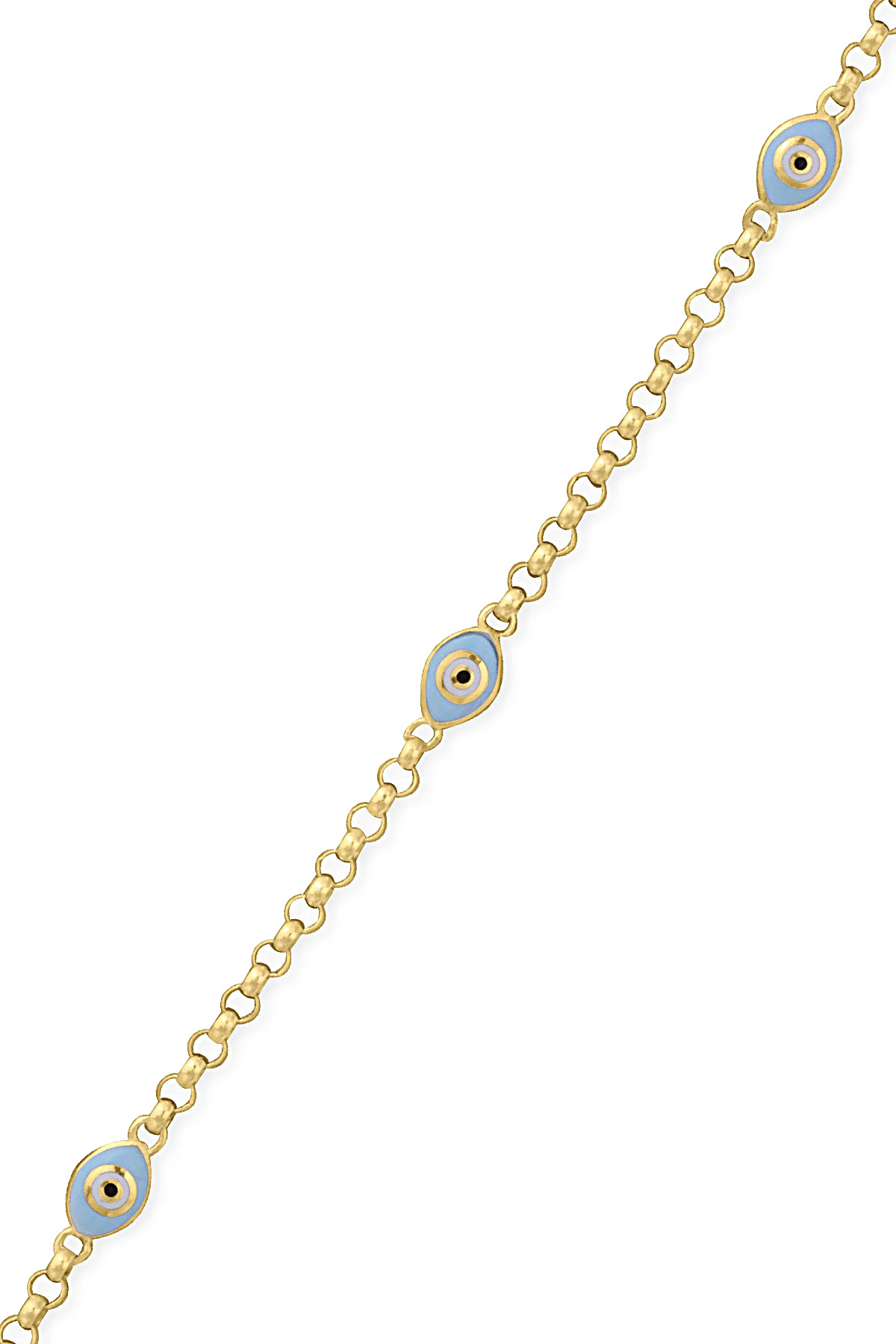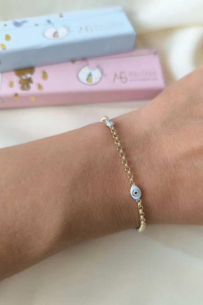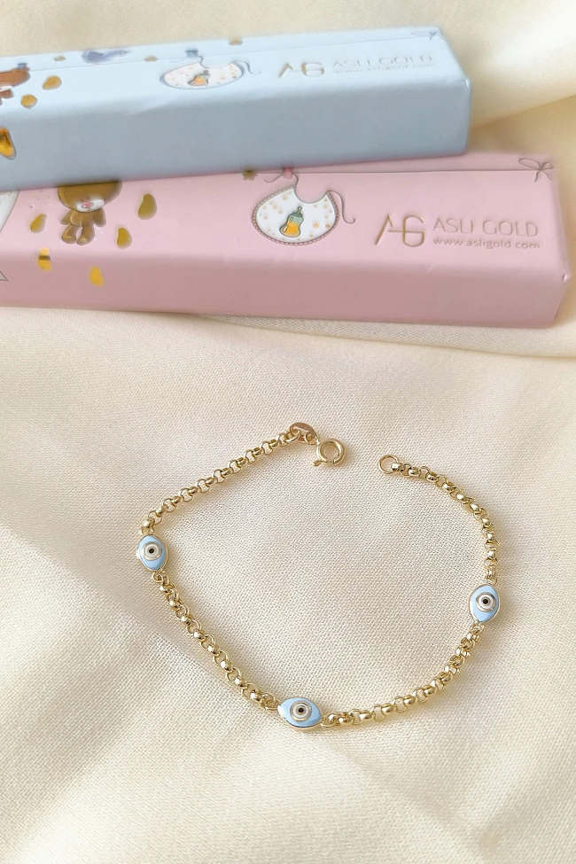 15 Cm boyunda günlük olarak da kullanıma uygun halka doc zincirli 14 ayar 1.60 gr ağırlığında altın nazar boncuğu detaylı çocuk bileklik. Hem kız hem erkek bebek için kullanıma uygundur.