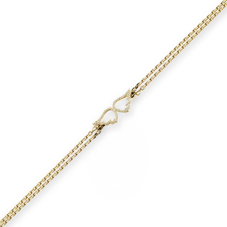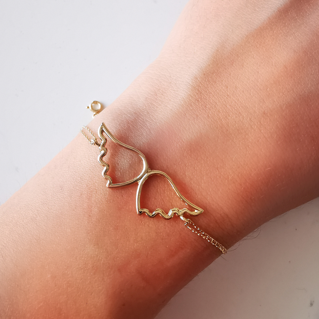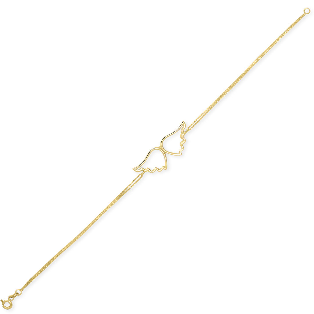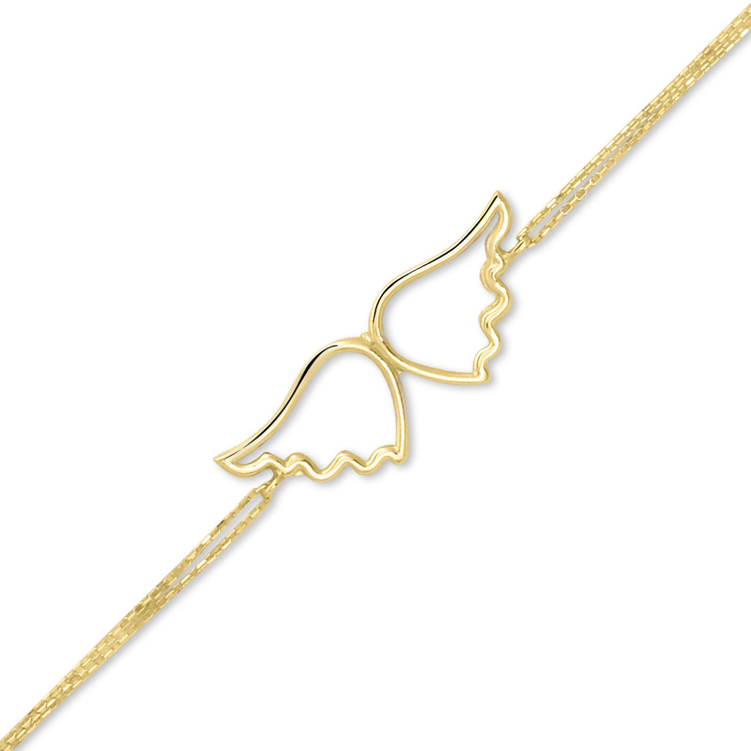 17.5 Cm boyunda günlük kullanıma uygun melek kanadı tasarımı ile günlük olarak da kullanabileceğiniz 14 ayar 1.80 gr ağırlığında altın taşsız bileklik.