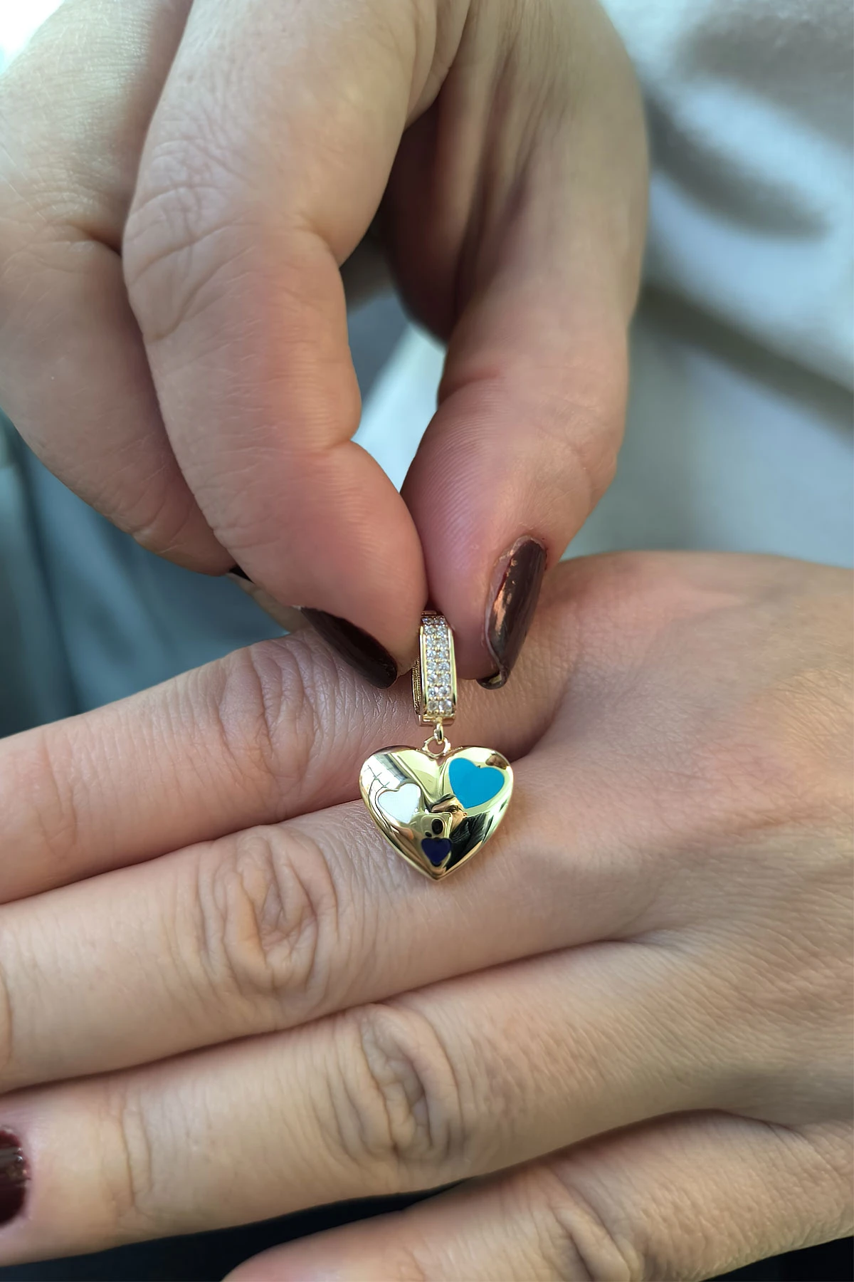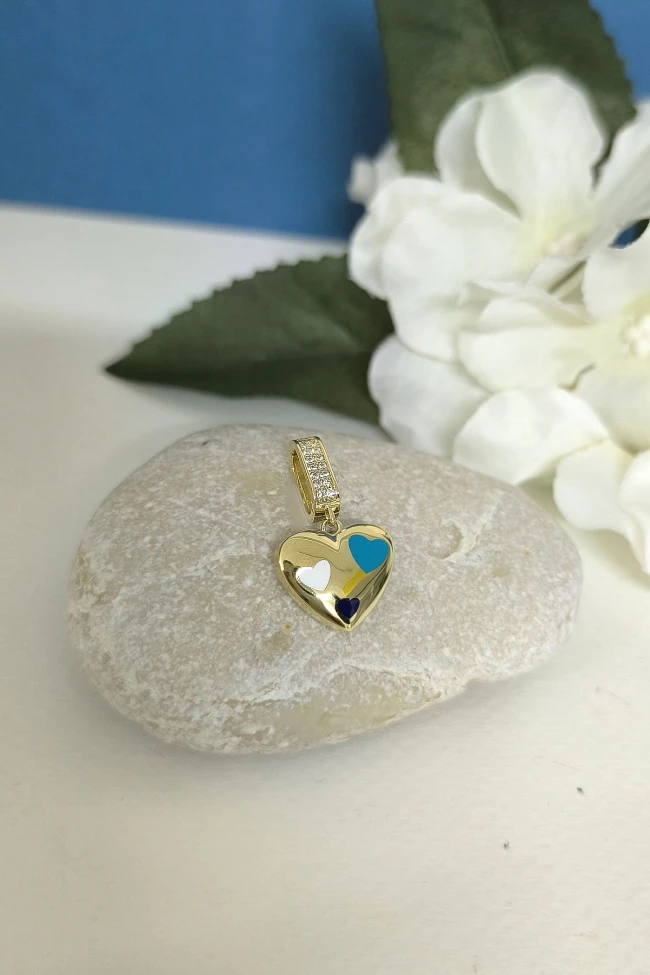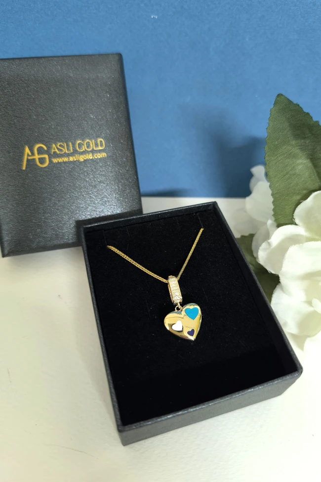 2.5 Cm Boyunda 14 Ayar Renkli Mineli Spor Yoncalı Tasarıma Sahip Işıl Işıl Günlük Kullanıma Uygun 2.15 Gr. Ağırlığında Altın Kalp Kolye Ucu.