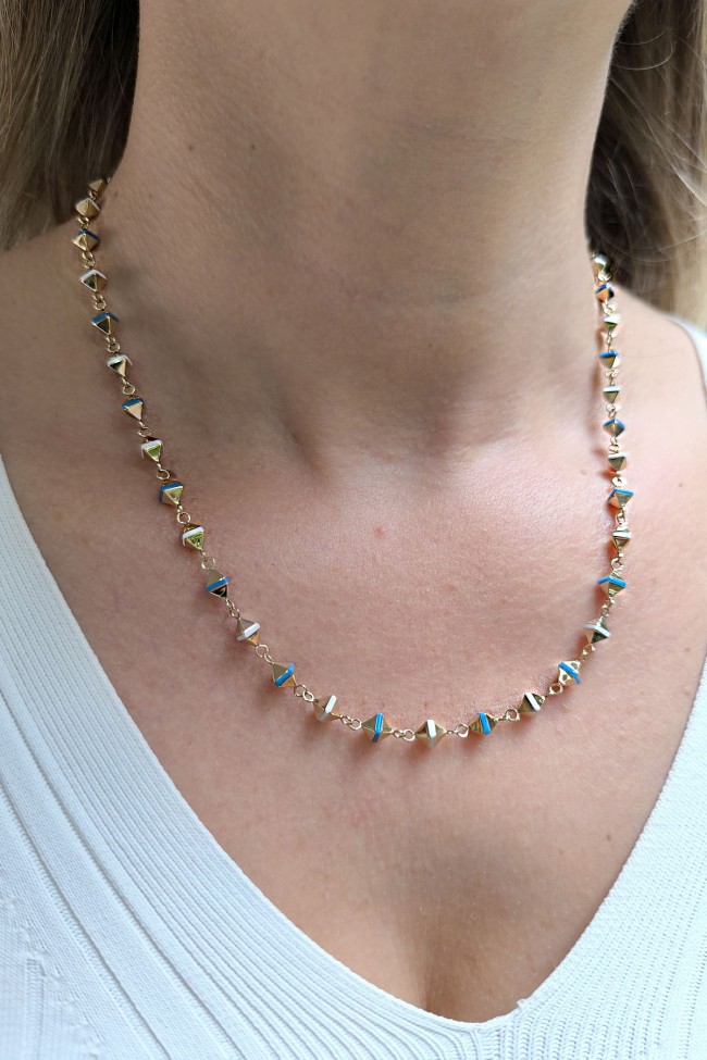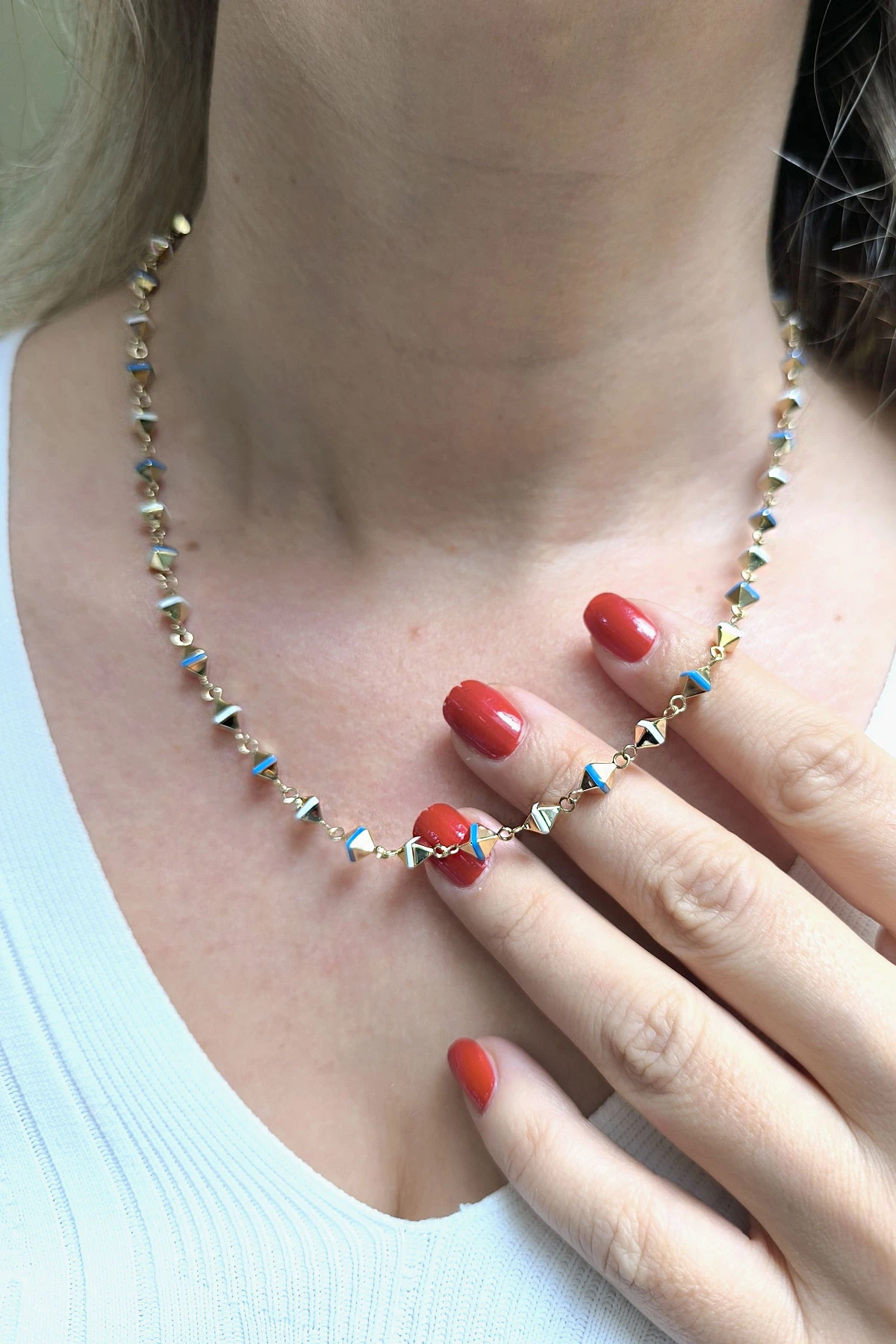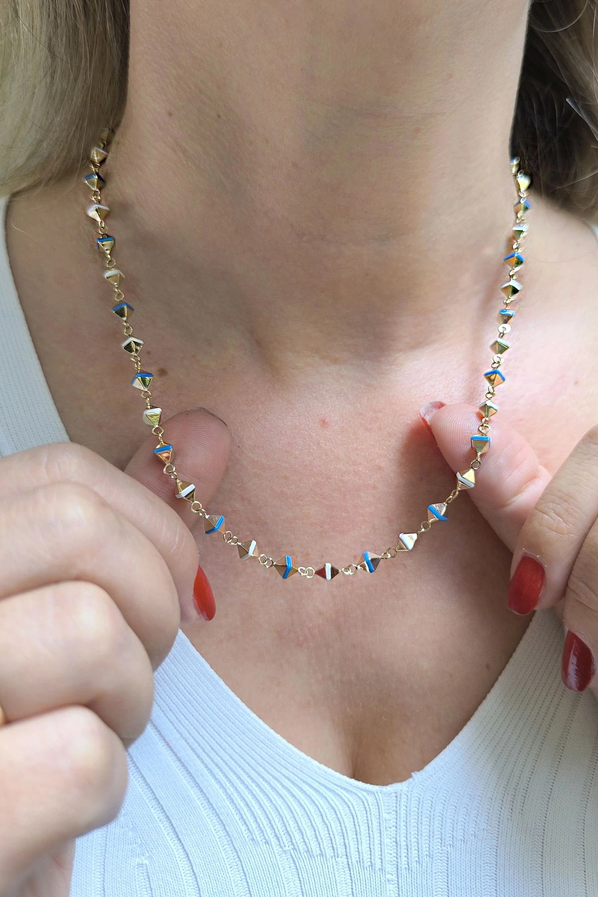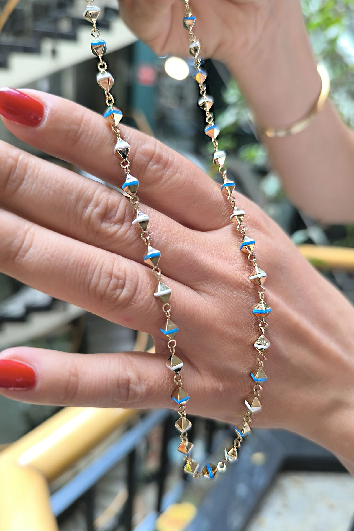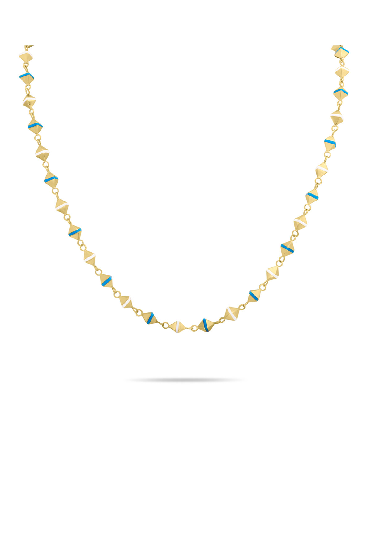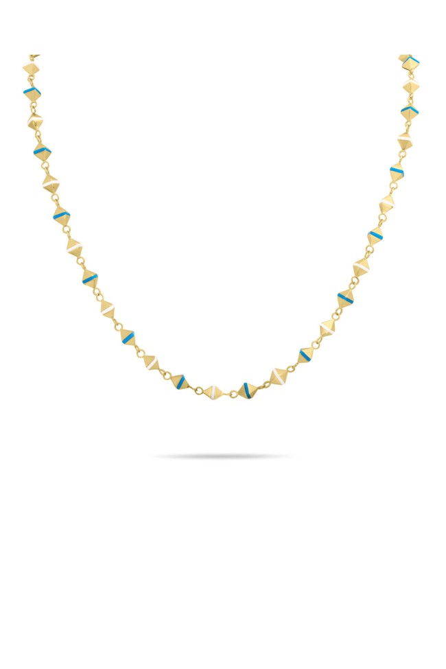 14 Ayar 50+2 cm unisex model şık ve modern tasarım günlük kullanıma uygun, mavi ve beyaz mine detaylı, taşsız ışıl ışıl özel trend tasarım 12.30 gram ağırlığında altın kolye.