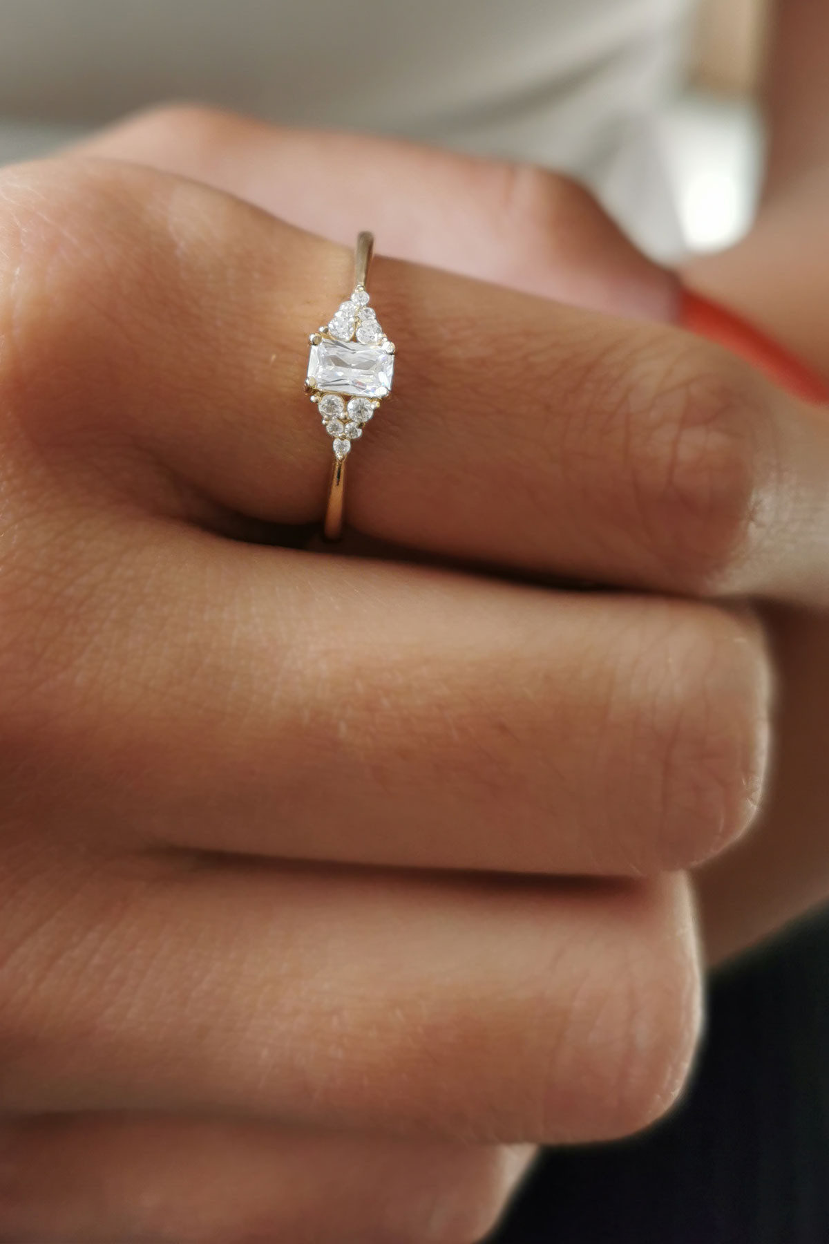 14 Ayar minimal tasarımlı zarif duruşa sahip ikili baget taş detayı ile sevdiklerinize yada kendinize armağan olarak tercih edebileceğiniz modern model günlük kullanıma uygun 1.30 gram ağırlığında farklı model yüzüklerinizle bir arada da kullanabileceğiniz altın kombin yüzük.