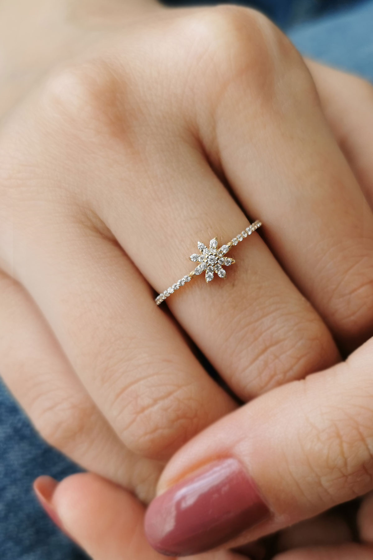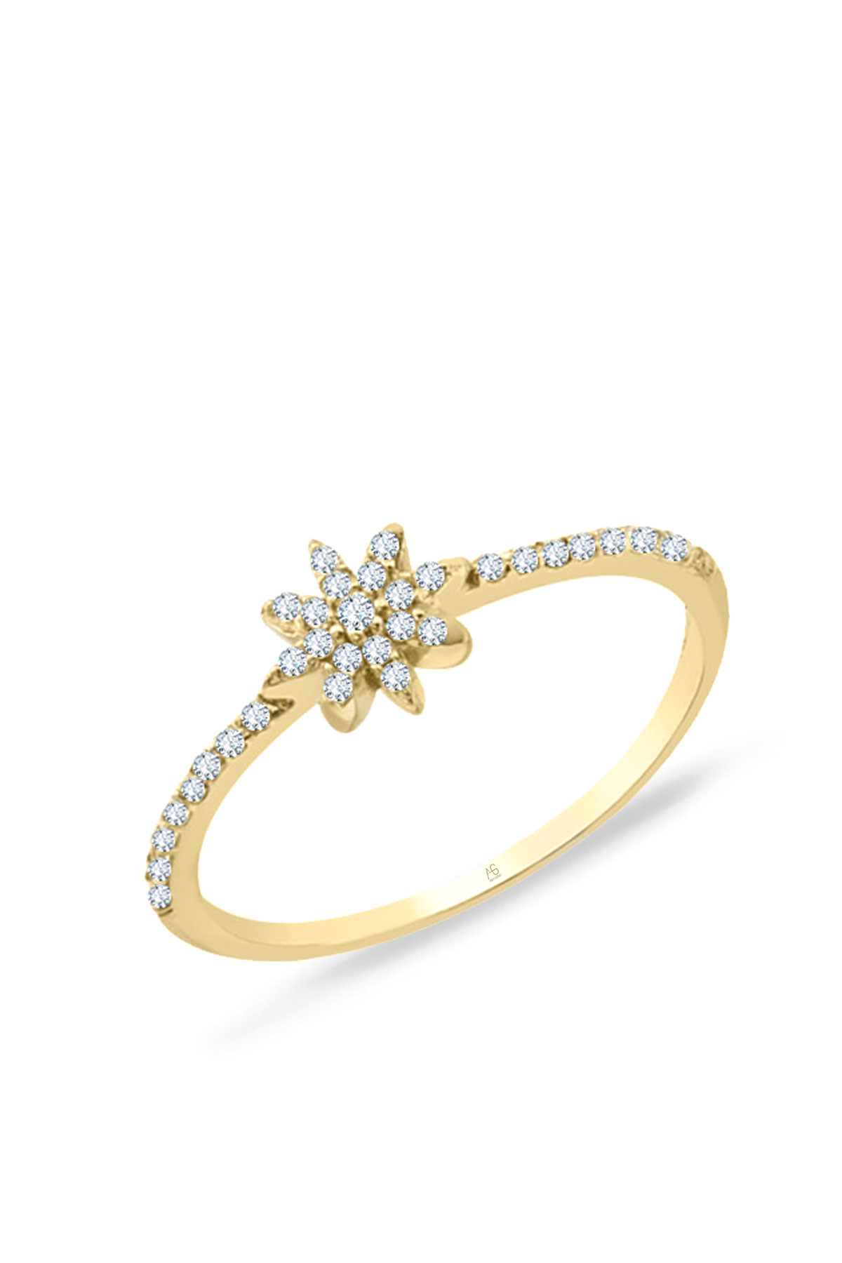 14 ayar sarı altın çiçek tasarımıyla günlük kullanıma uygun parmağınızda stilinize hava katacak 1.25 gram ağırlığında zirkon taşlı mini ince yüzük.