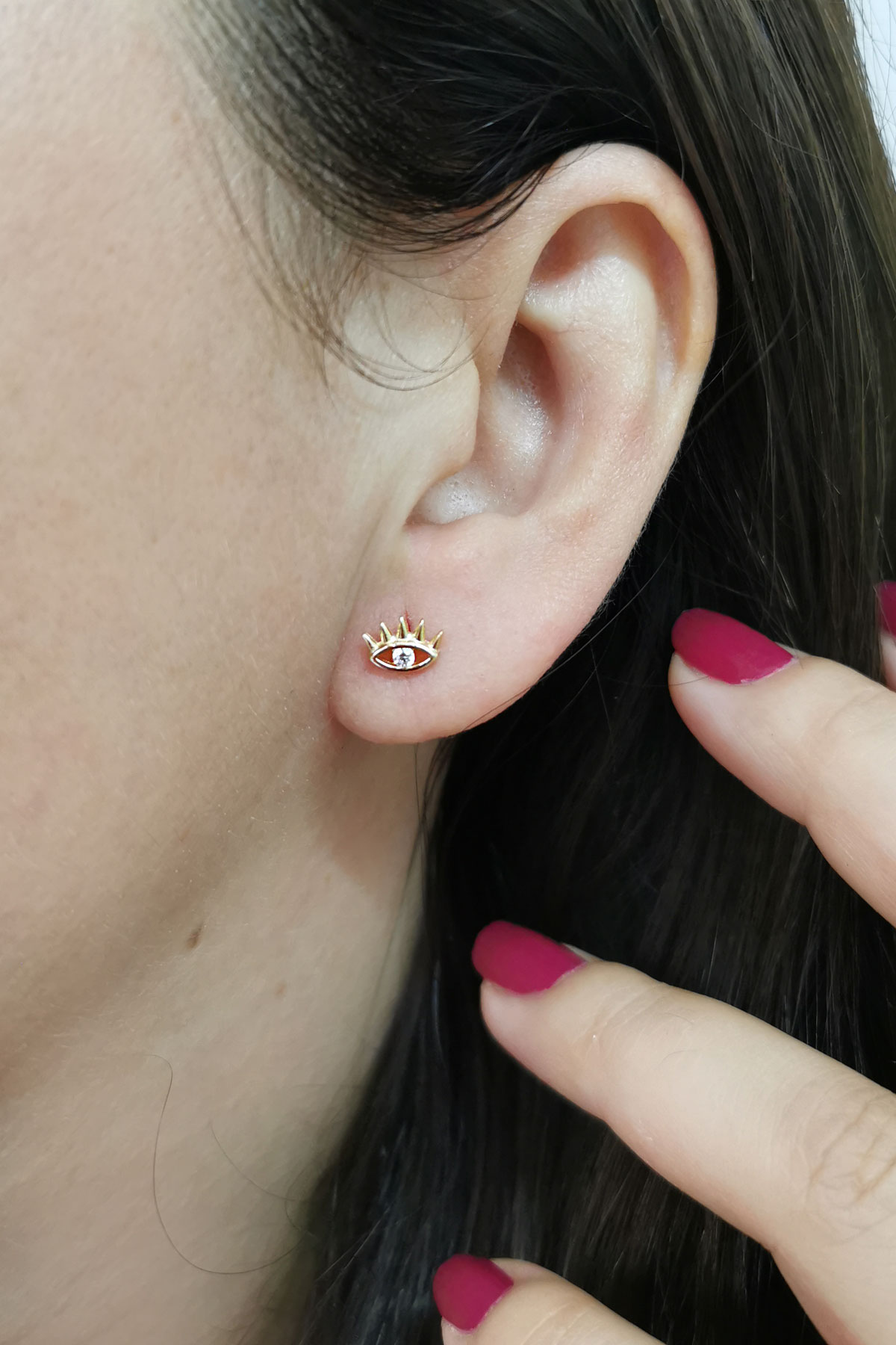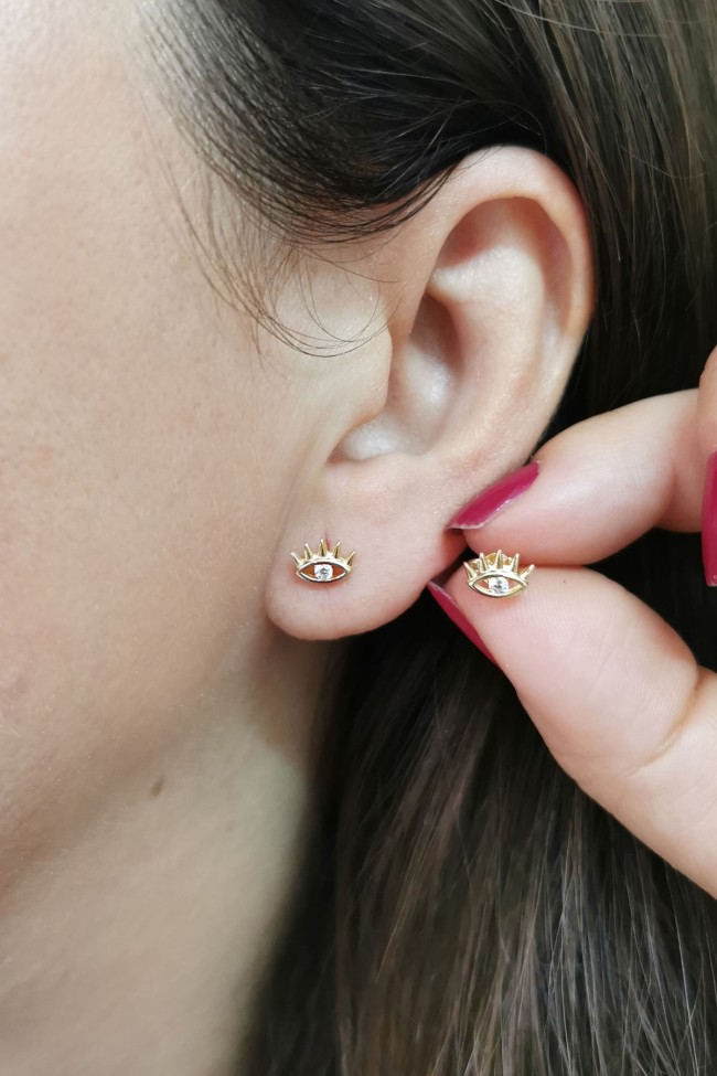 0.5 Cm boyunda zirkon taşlı minimal ışıl ışıl 14 ayar 1.05 gr ağırlığında altın göz model vidalı küpe. Yetişkinler için 2. 3. kulak deliği küpesi olarak da kullanımda çok zarif durur.