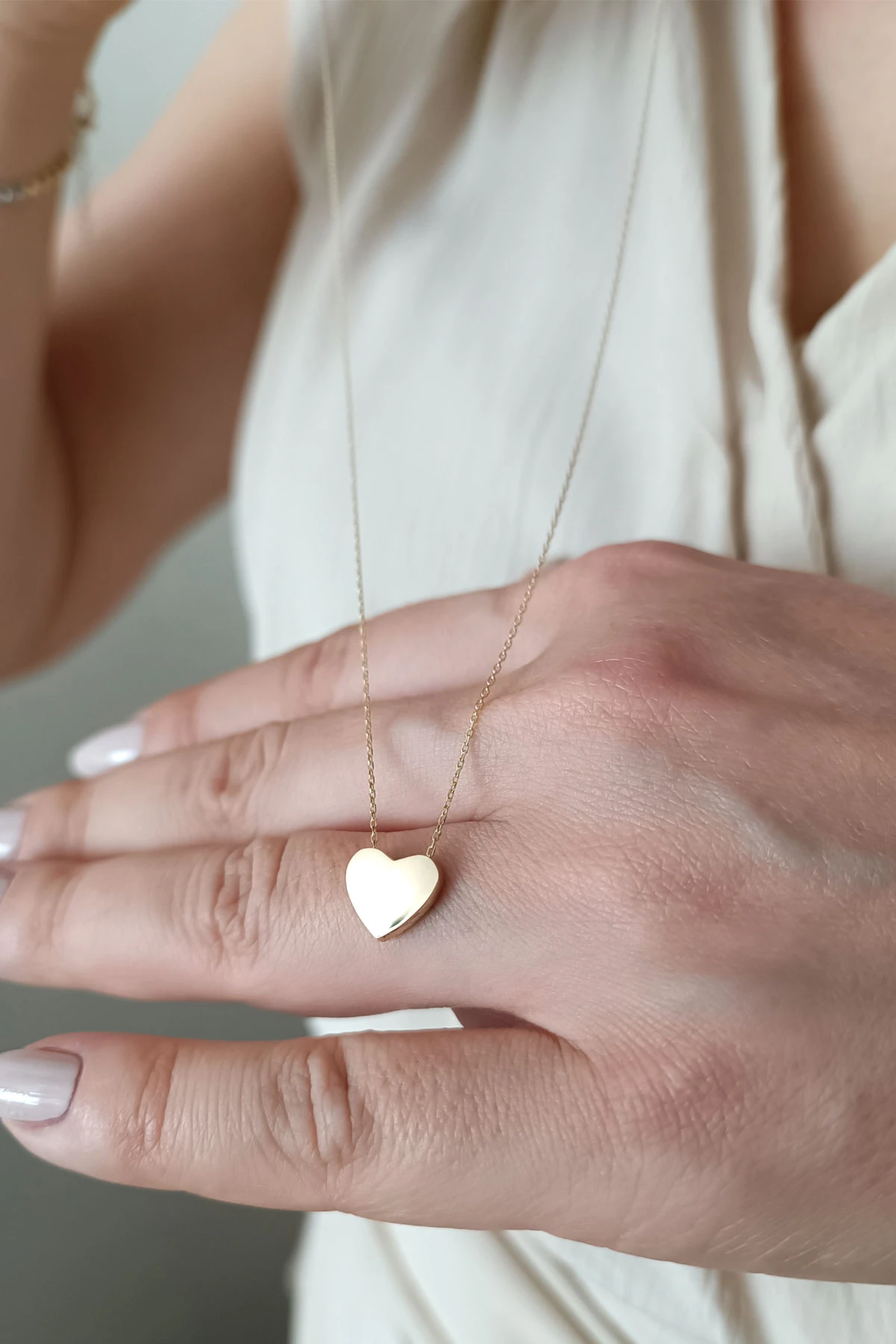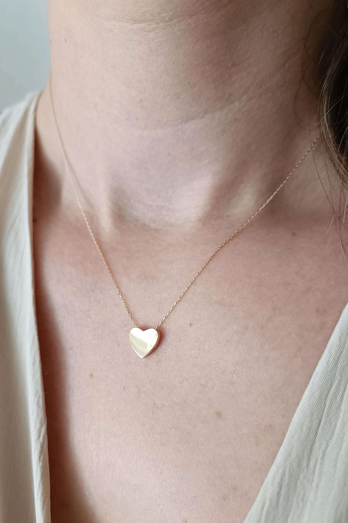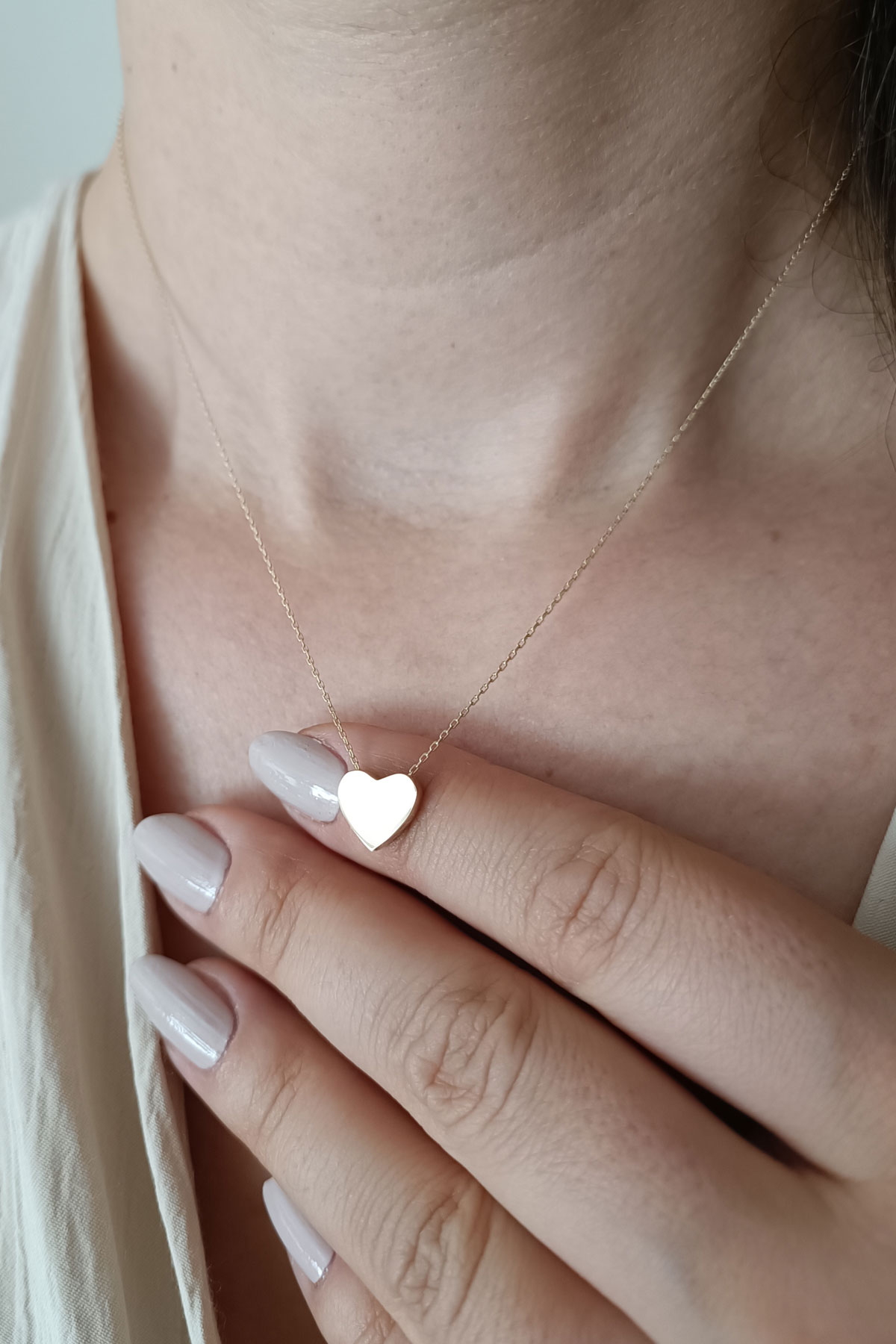 Minimal kalp model altın spor günlük kullanıma uygun altın 14 ayar kolye. Model boyutu 1 cm olup zincirli olarak 1.60 gram ağırlığındadır.