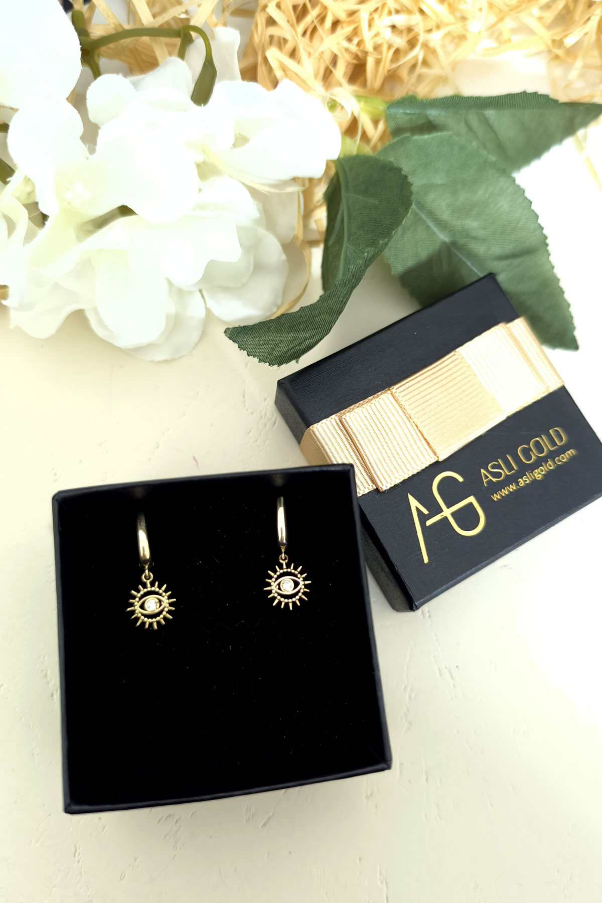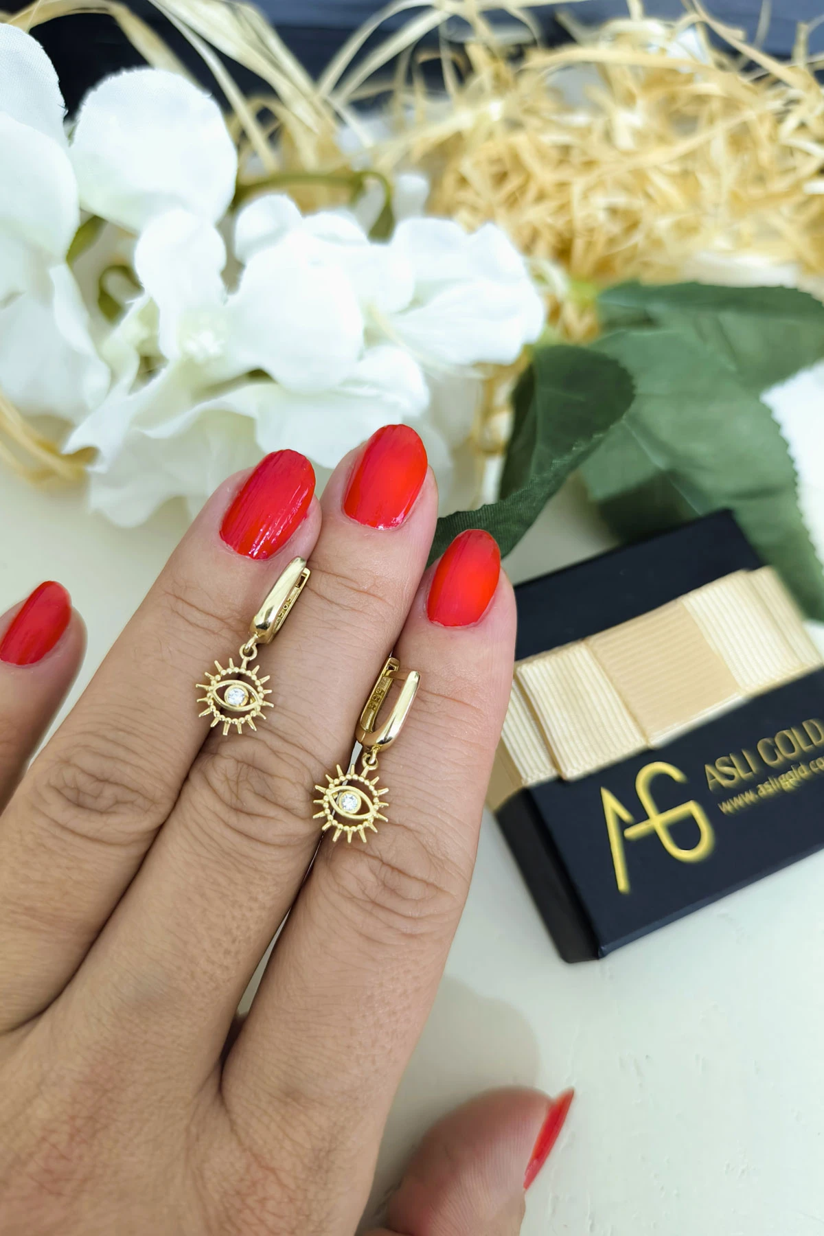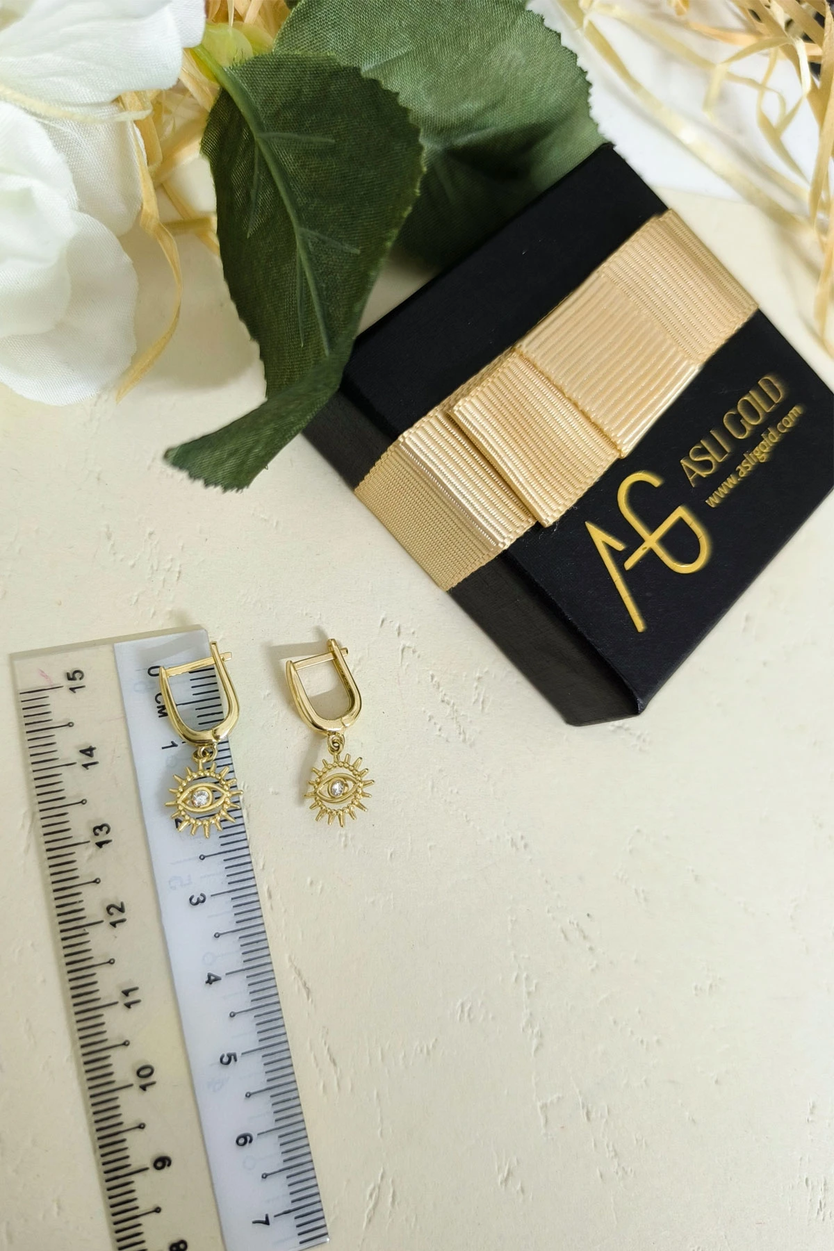 2.80 Gram Ağırlığında 2.3 Cm Göz Model Sallantılı Model Zirkon Taşlı Günlük, Modern Ve Şık Bir Duruşa Sahip 14 Ayar Altın Tasarım Küpe.
