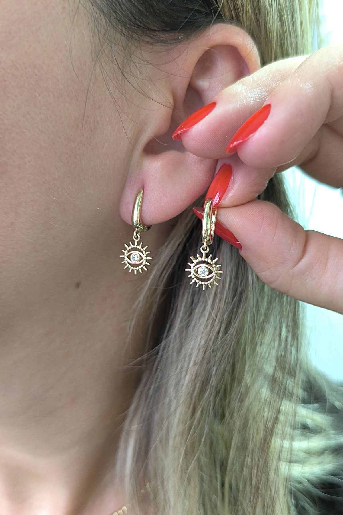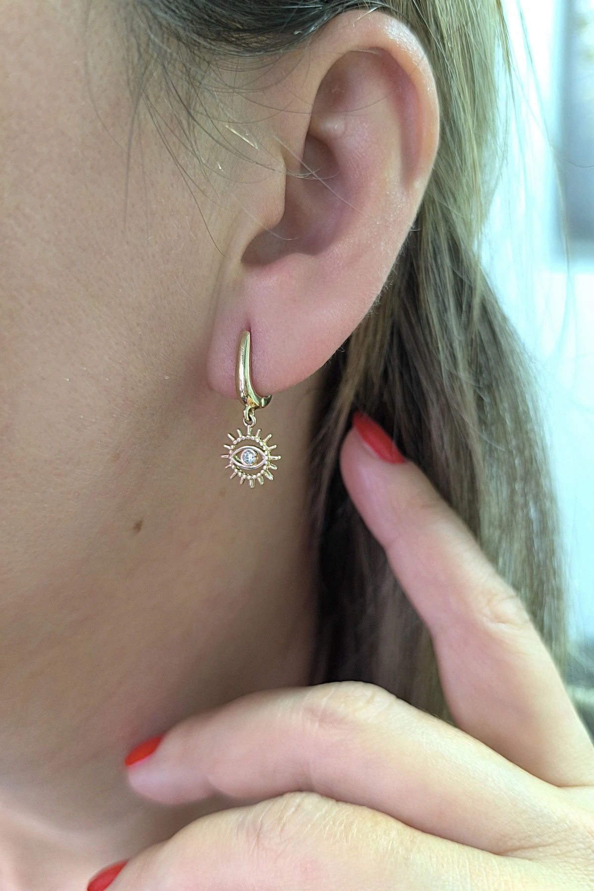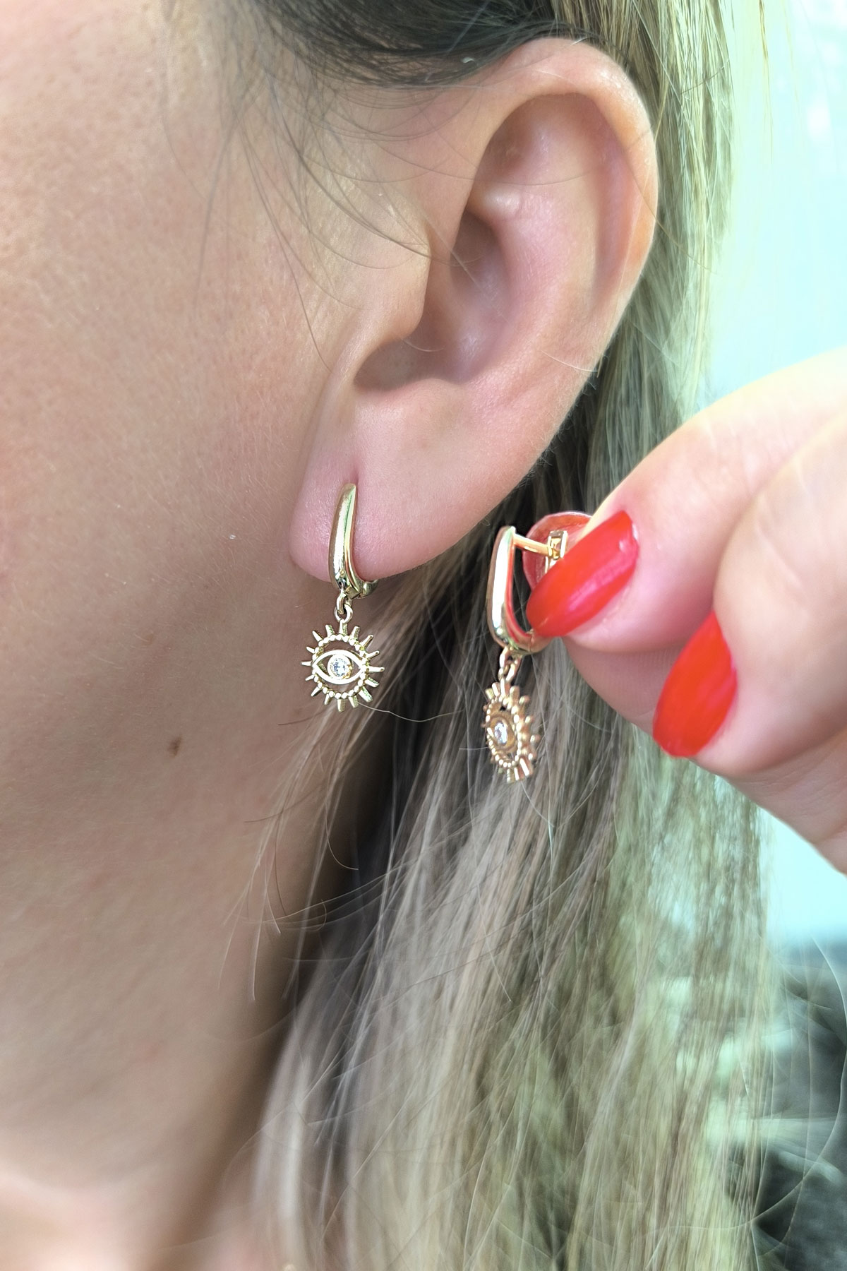 2.80 Gram Ağırlığında 2.3 Cm Göz Model Sallantılı Model Zirkon Taşlı Günlük, Modern Ve Şık Bir Duruşa Sahip 14 Ayar Altın Tasarım Küpe.