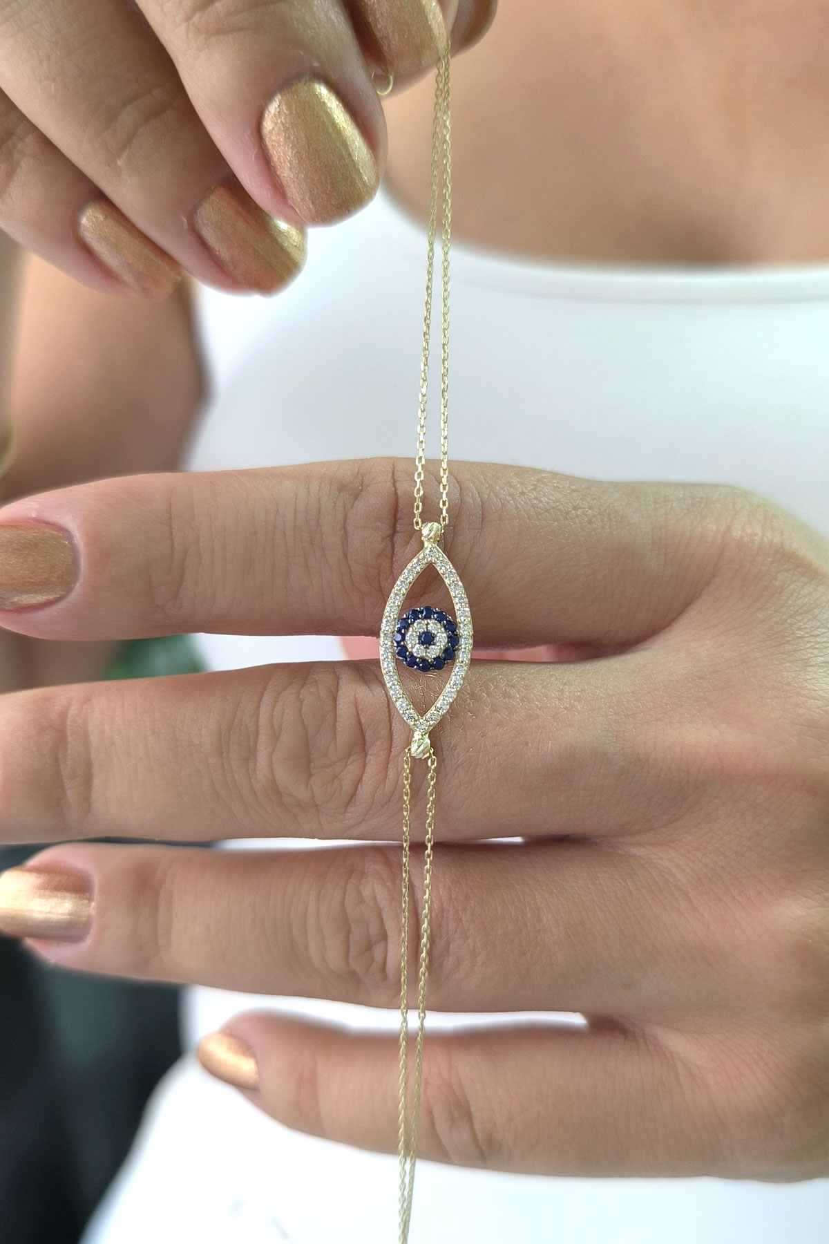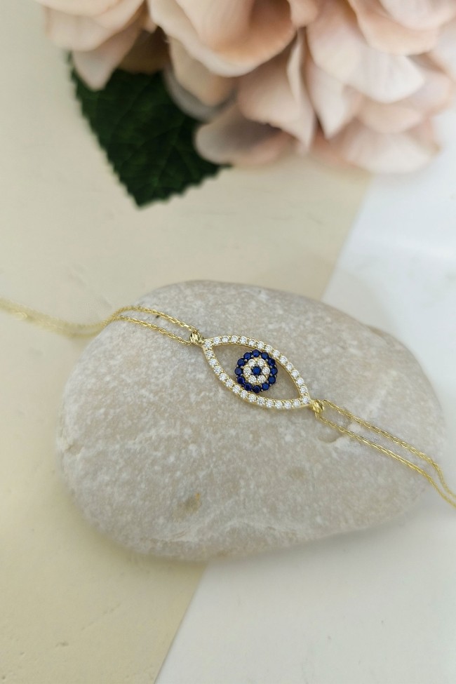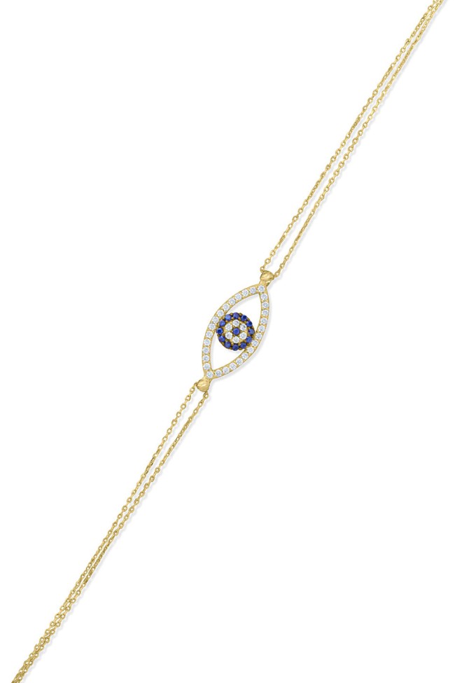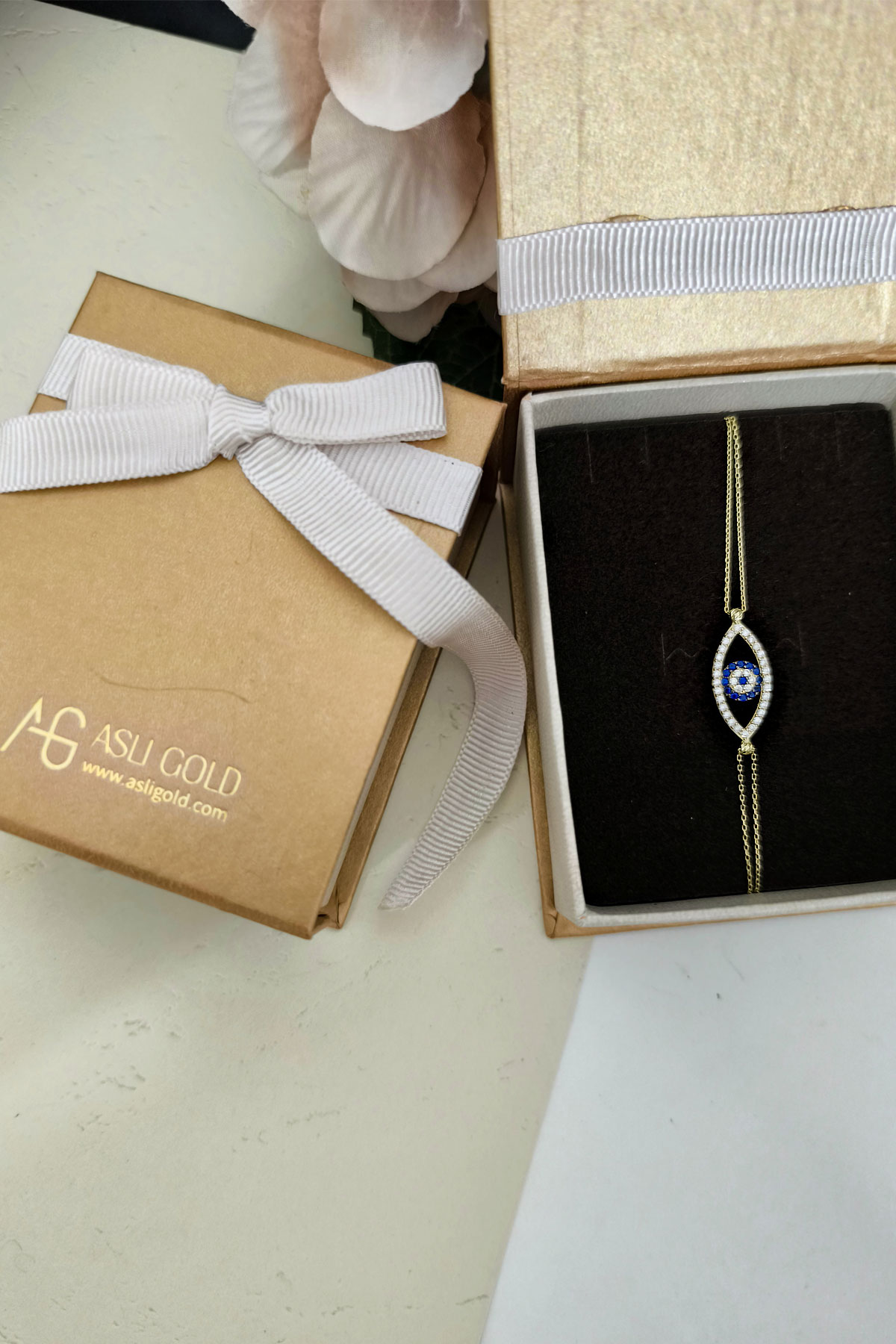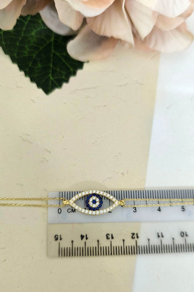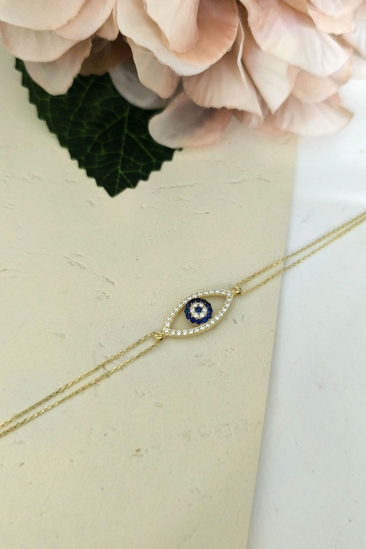 Minimal Şık Modeliyle 2.5 Cm Boyunda 2.00 Gr. Ağırlığında 14 Ayar Altın Nazar Boncuğu Bileklik.