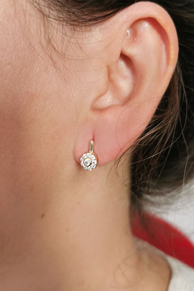 2.00 Gram Ağırlığında 1.2 Cm Boyunda Zirkon Taşlı Minimal 14 Ayar Altın Tektaş Küpe.