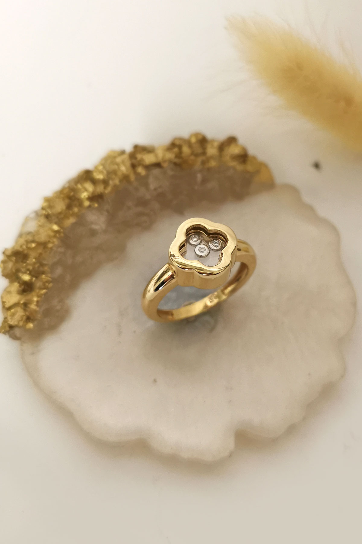 14 Ayar minimal ve şık tasarımı ile içi üç taşlı ışıl ışıl günlük kullanıma uygun 4.50 gram ağırlığında spor model altın yüzük.